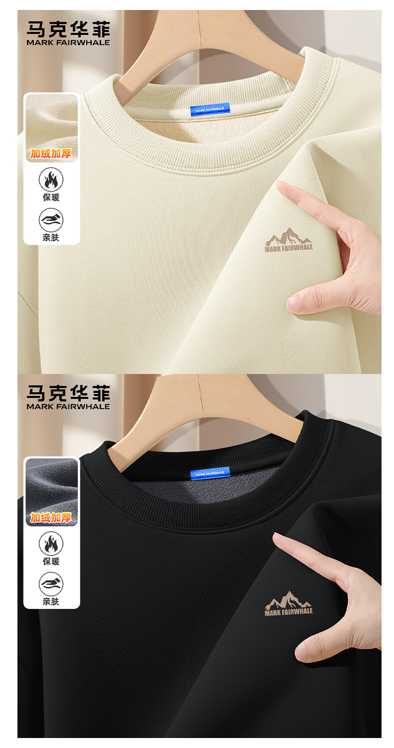 马克华菲卫衣男款秋冬2025新款加绒加厚男士上衣高级感宽松大码保暖外套男