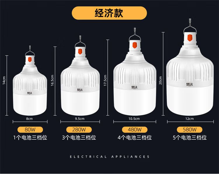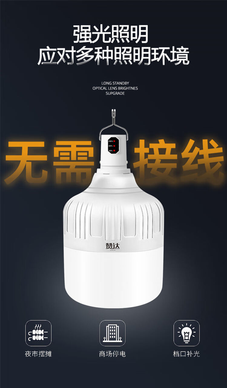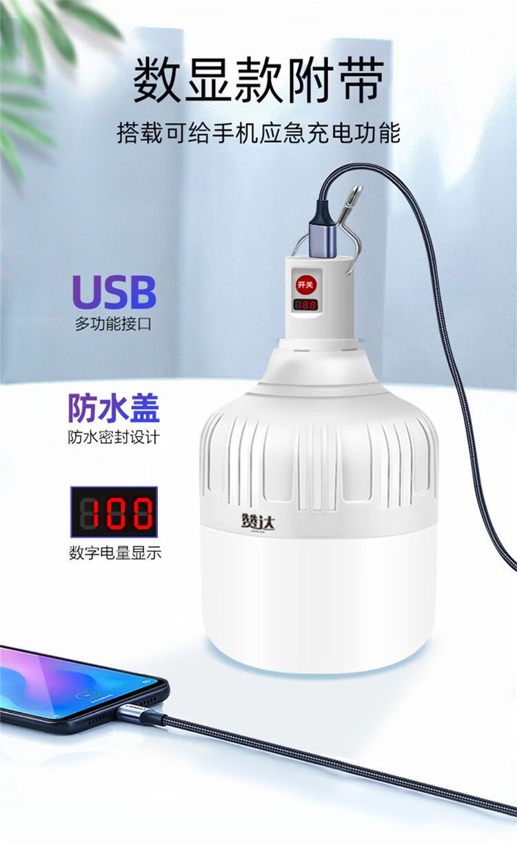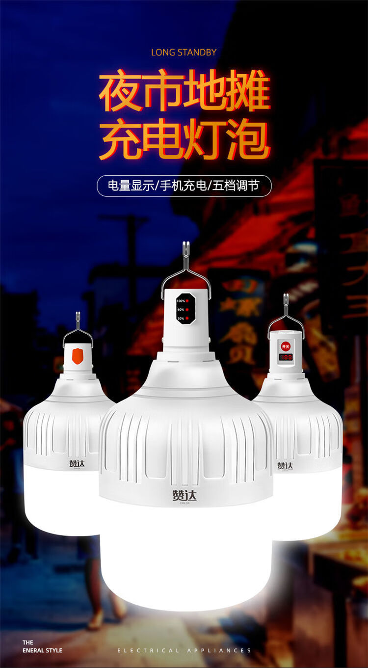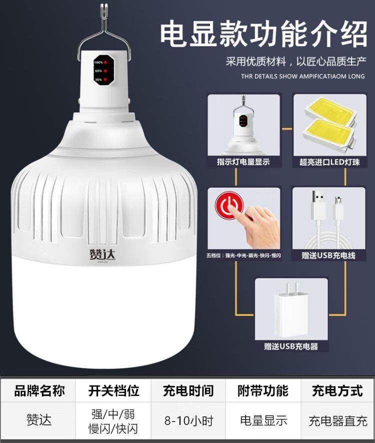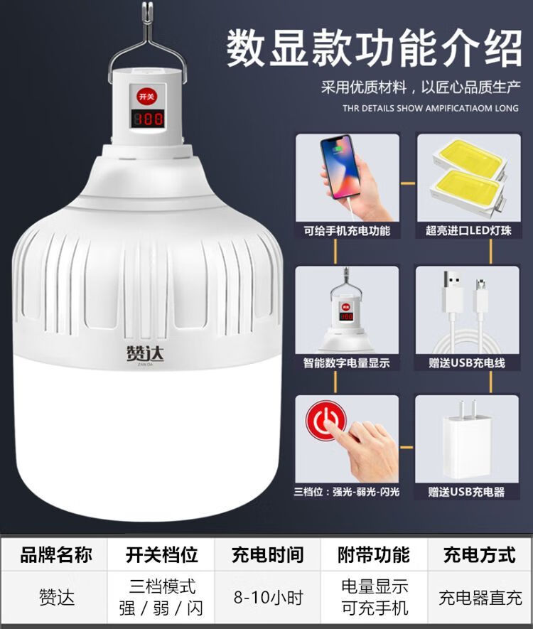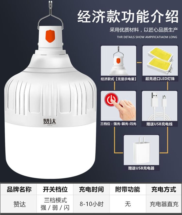 DEATKN充电led灯泡夜市灯超亮家用停电应急照明灯户外无线可移动摆摊灯 赞达l特光亮80W经济款+三个档可调光. 【赞达官方正品】品质先锋+资质认证+进口灯芯