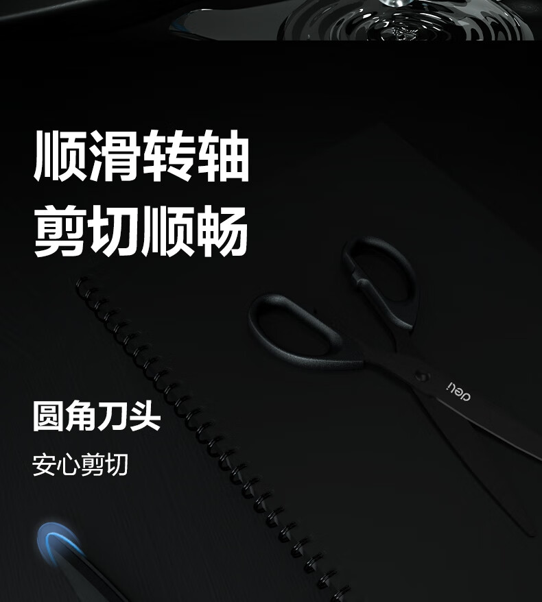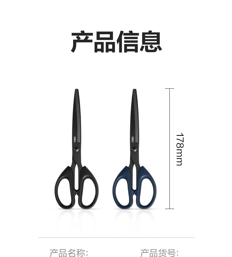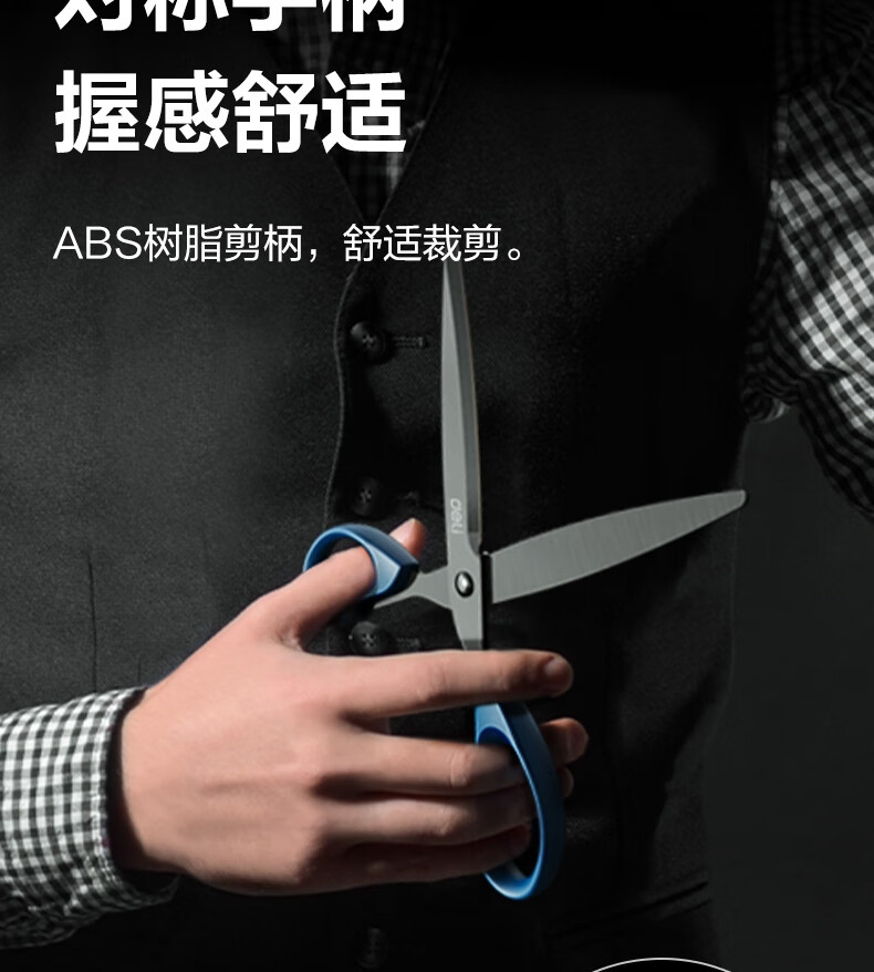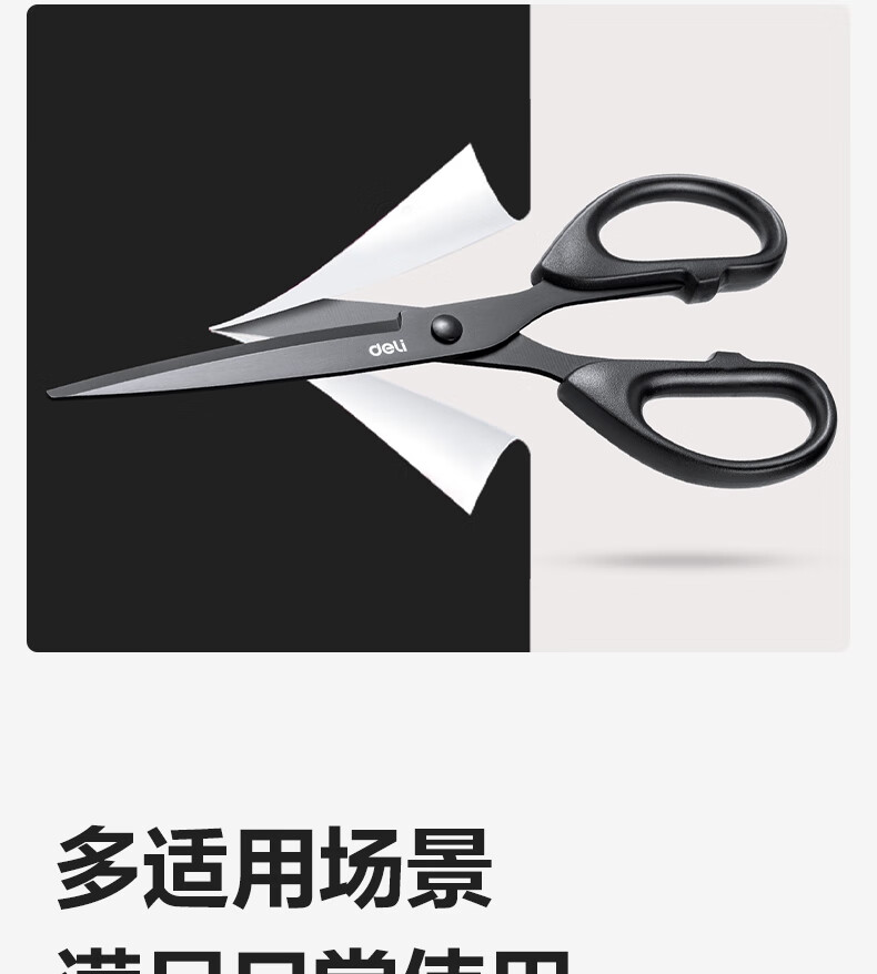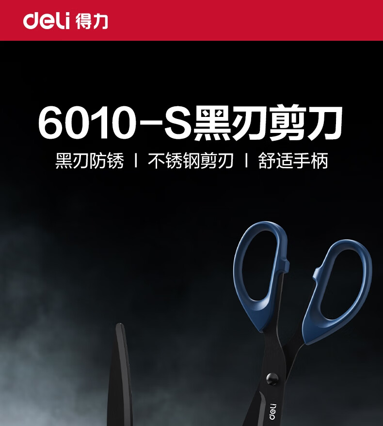 得力(deli)210mm黑刃防锈剪刀 办公家用生活手工剪纸刀 办公用品 黑色6010-S