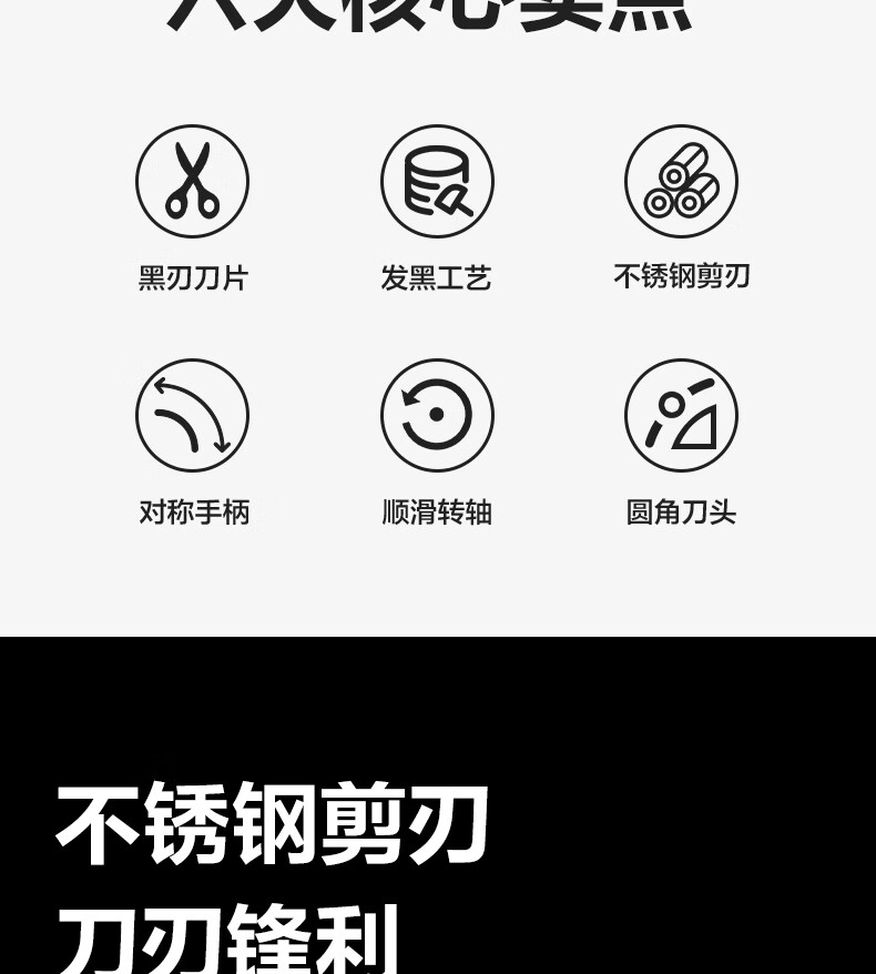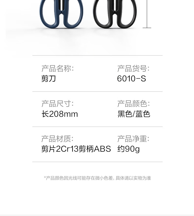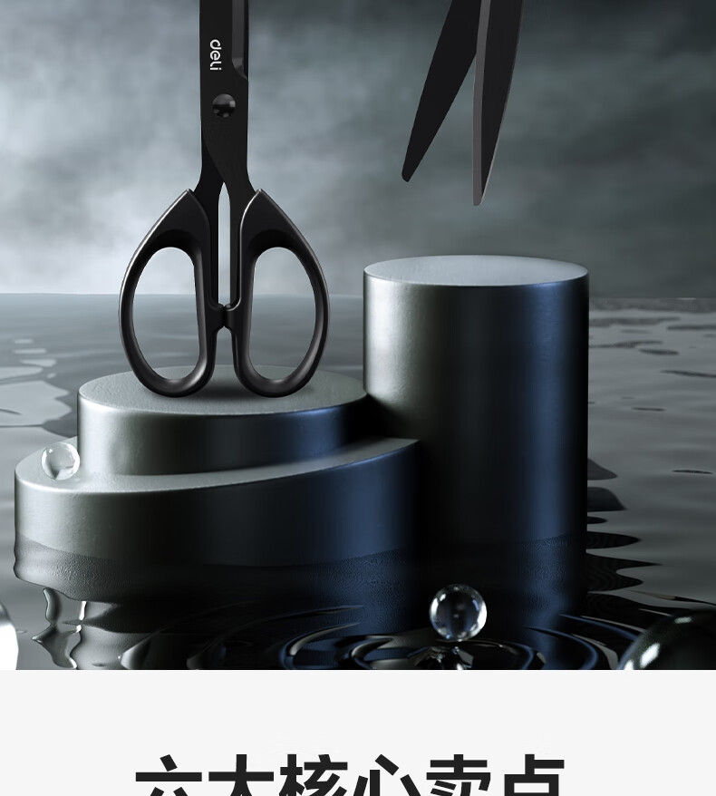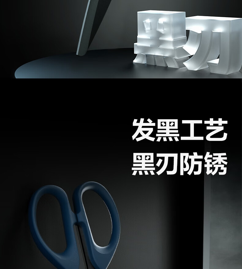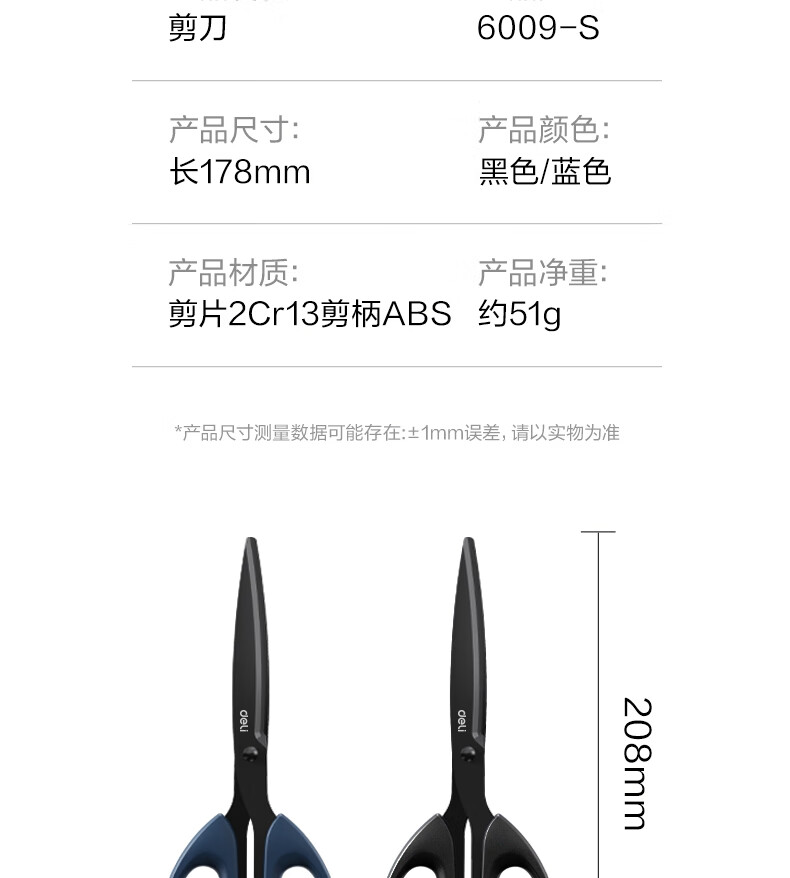 得力(deli)210mm黑刃防锈剪刀 办公家用生活手工剪纸刀 办公用品 黑色6010-S