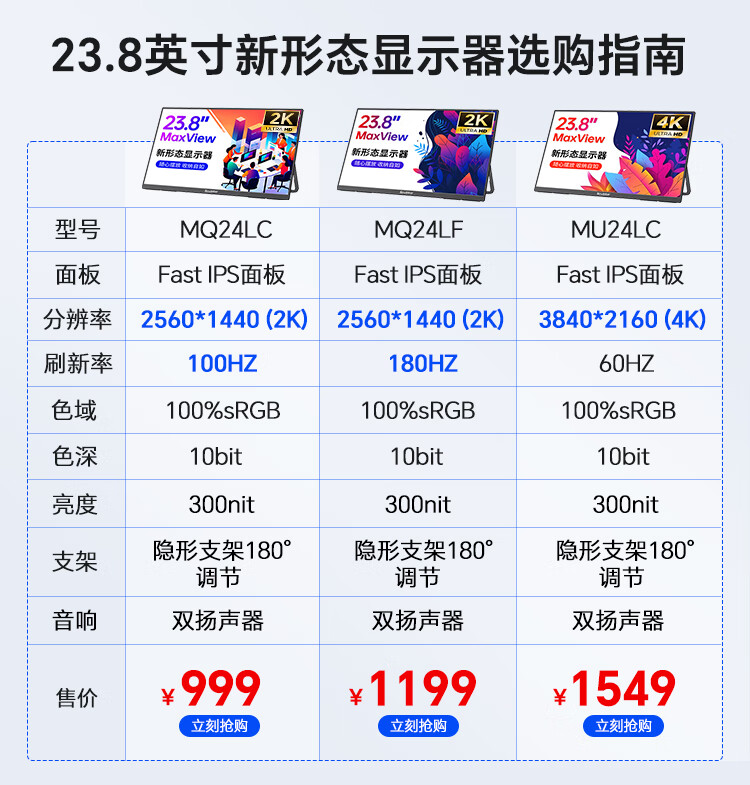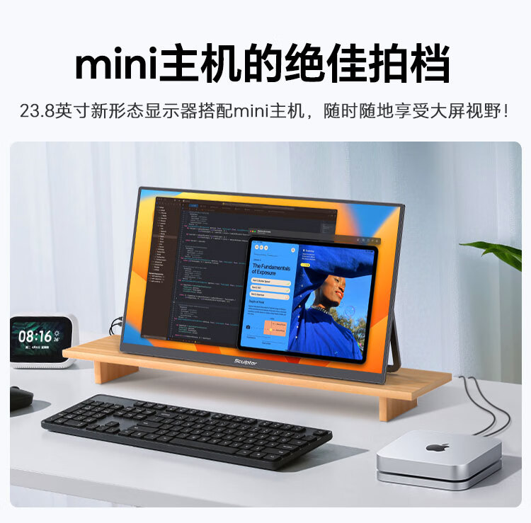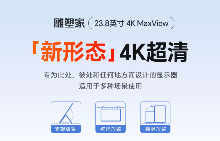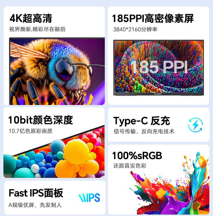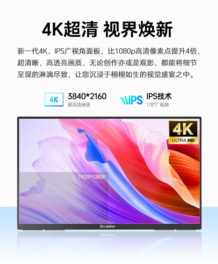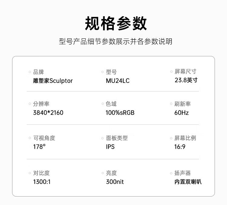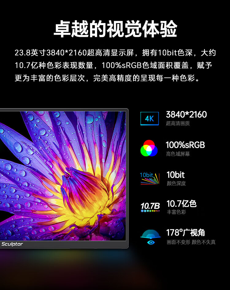 雕塑家23.8英寸4K超清显示器100%sRGB色域10Bit FastIPS屏低蓝光不闪屏 笔记本电脑副屏type-c接口MU24LC