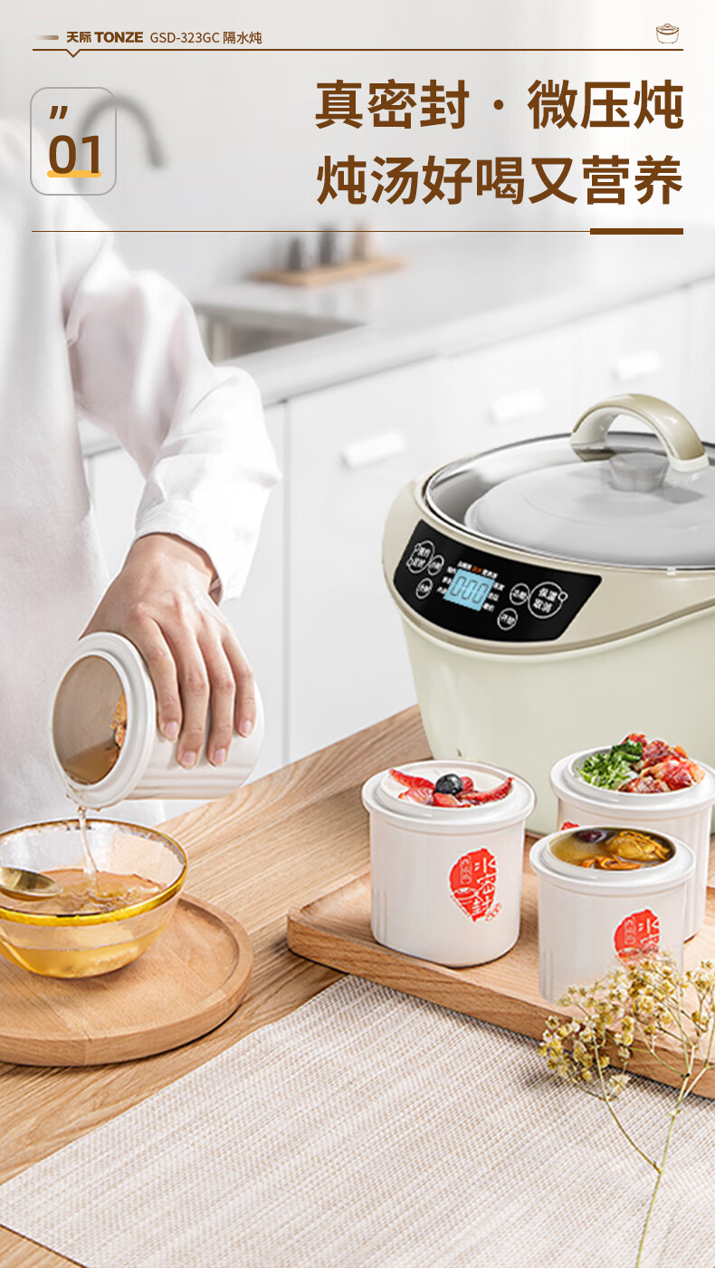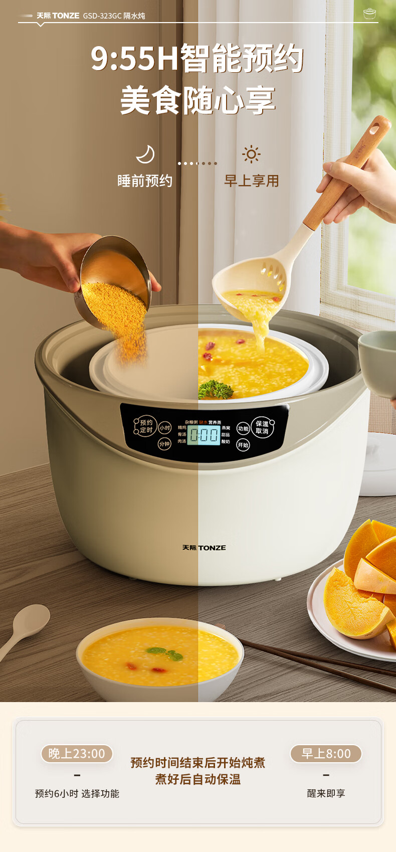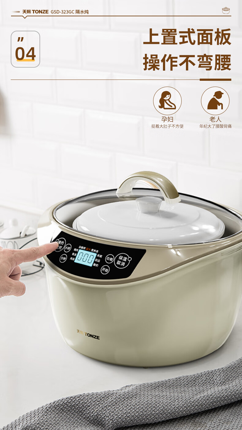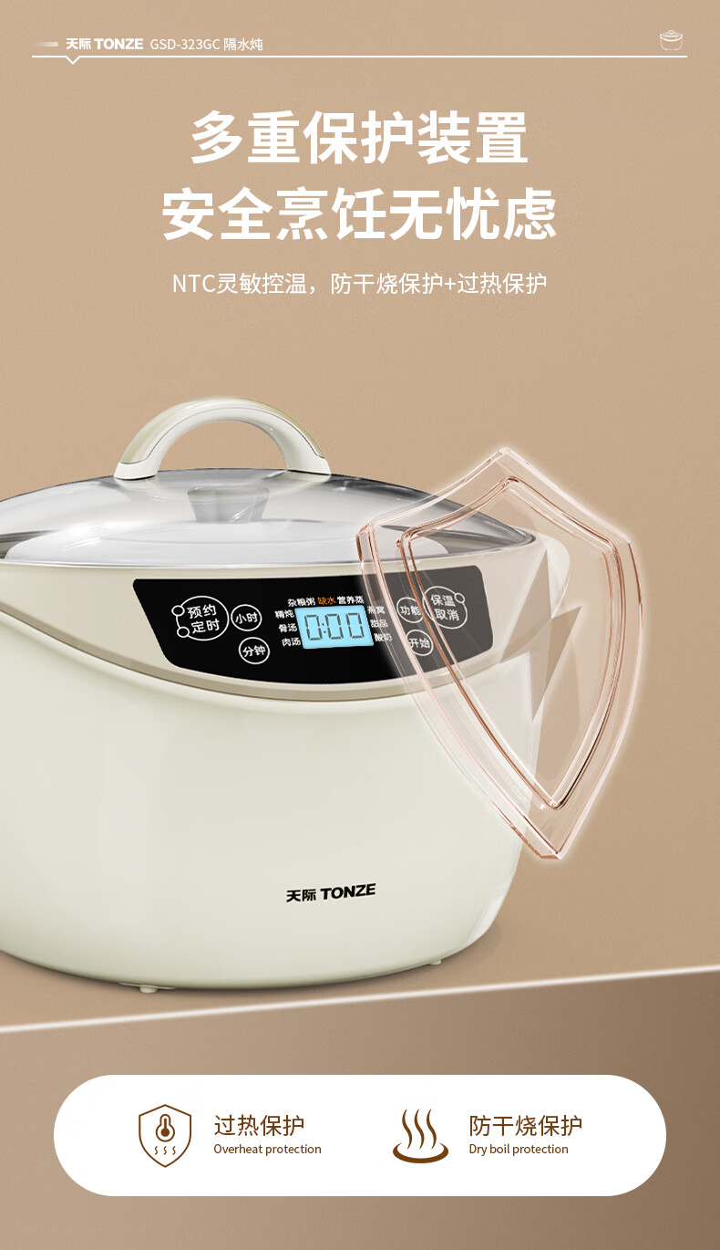 天际(TONZE)电炖锅 隔水炖锅 电炖盅 煲汤锅煮粥炖汤锅 熬粥燕窝养生锅 智能预约 白瓷一锅5胆 GSD-323GC 3.2L