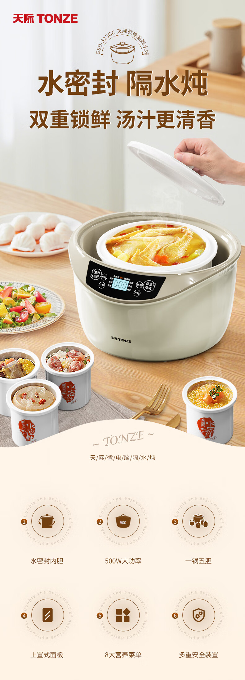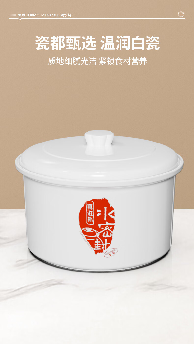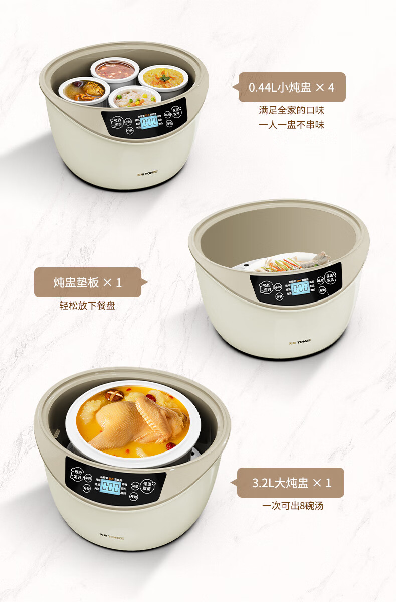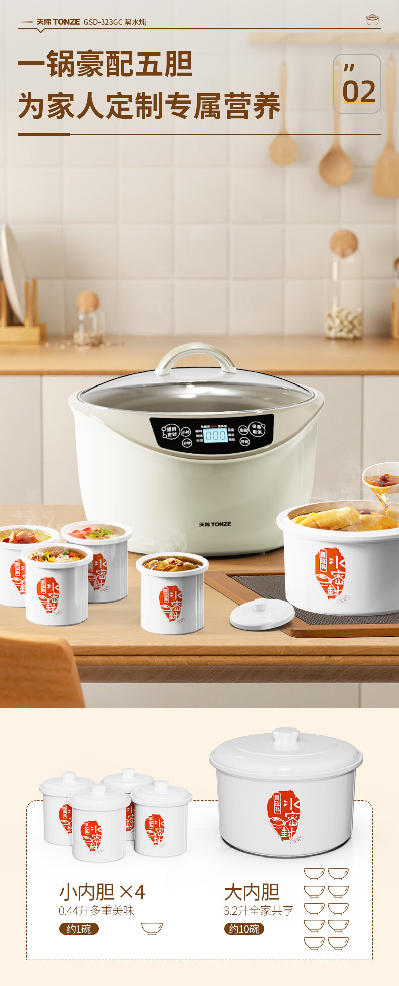 天际(TONZE)电炖锅 隔水炖锅 电炖盅 煲汤锅煮粥炖汤锅 熬粥燕窝养生锅 智能预约 白瓷一锅5胆 GSD-323GC 3.2L