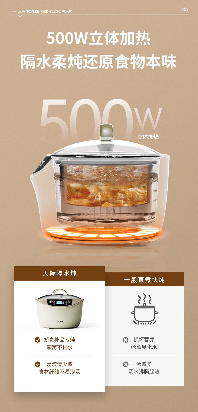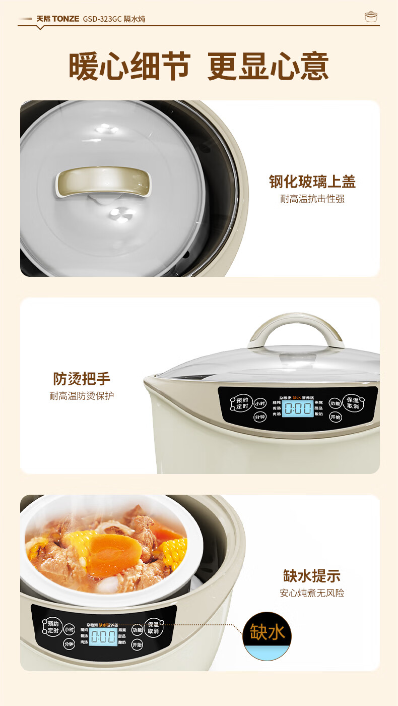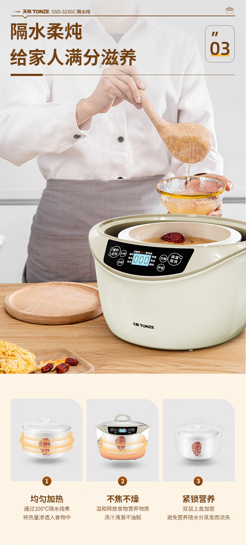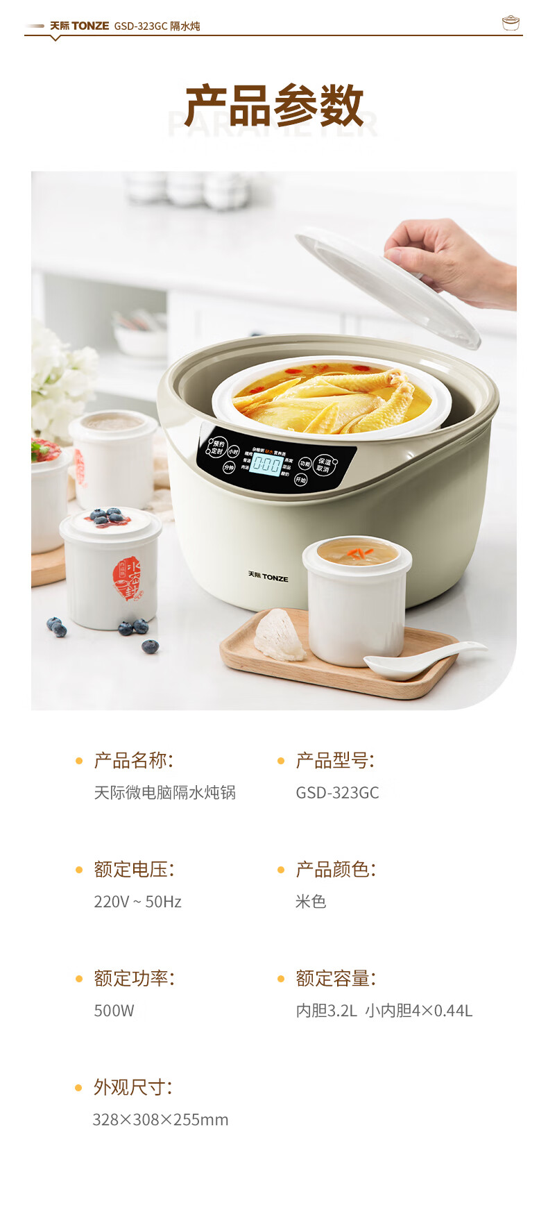天际(TONZE)电炖锅 隔水炖锅 电炖盅 煲汤锅煮粥炖汤锅 熬粥燕窝养生锅 智能预约 白瓷一锅5胆 GSD-323GC 3.2L