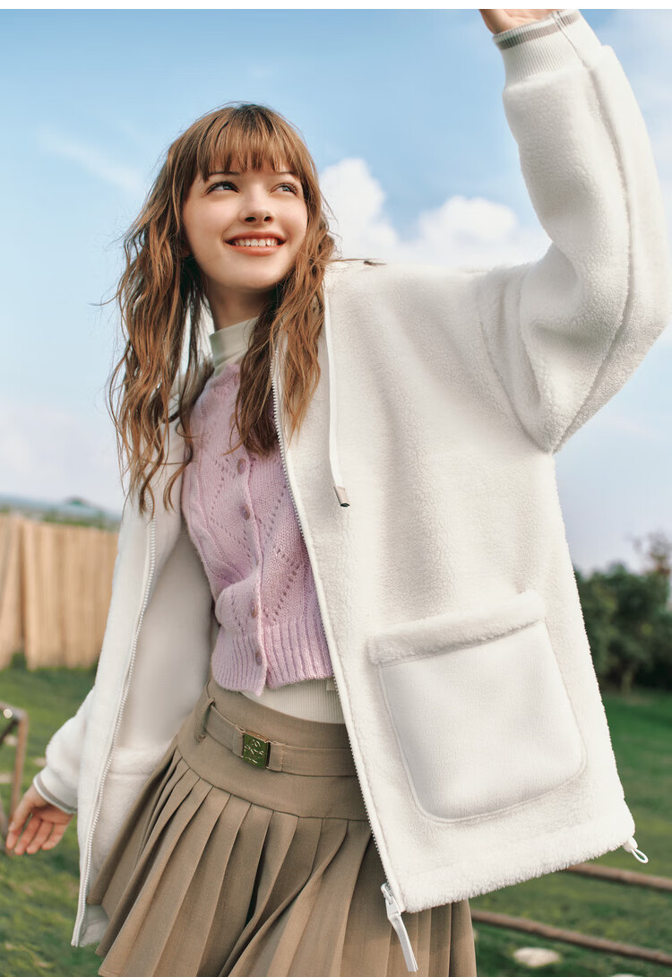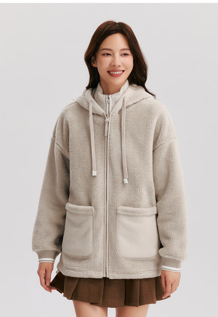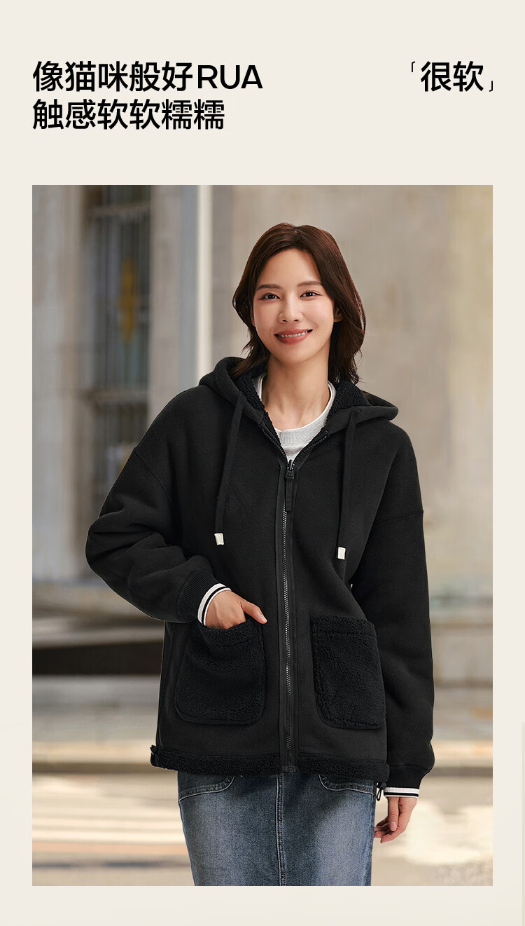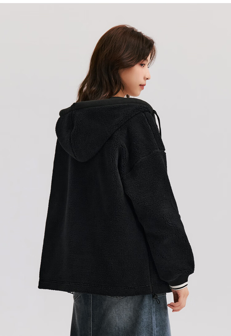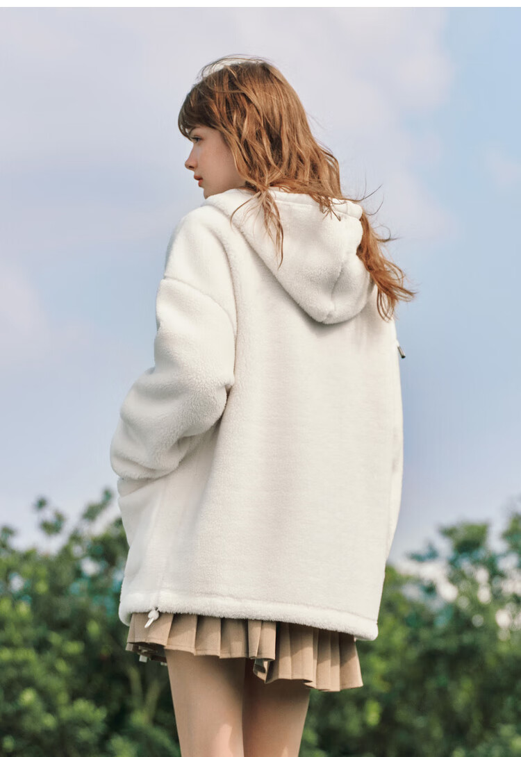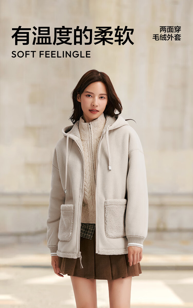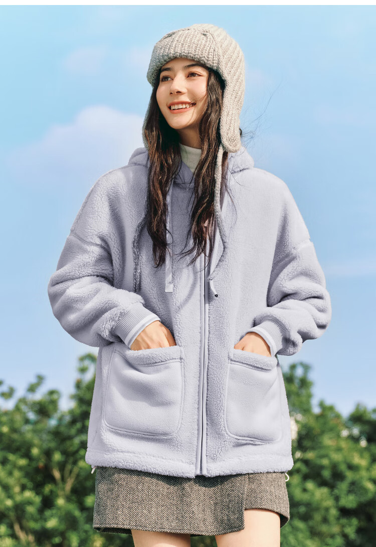 森马(Semir)森马外套女仿羊羔毛摇粒绒双面穿连帽重磅夹克24新款109724108002