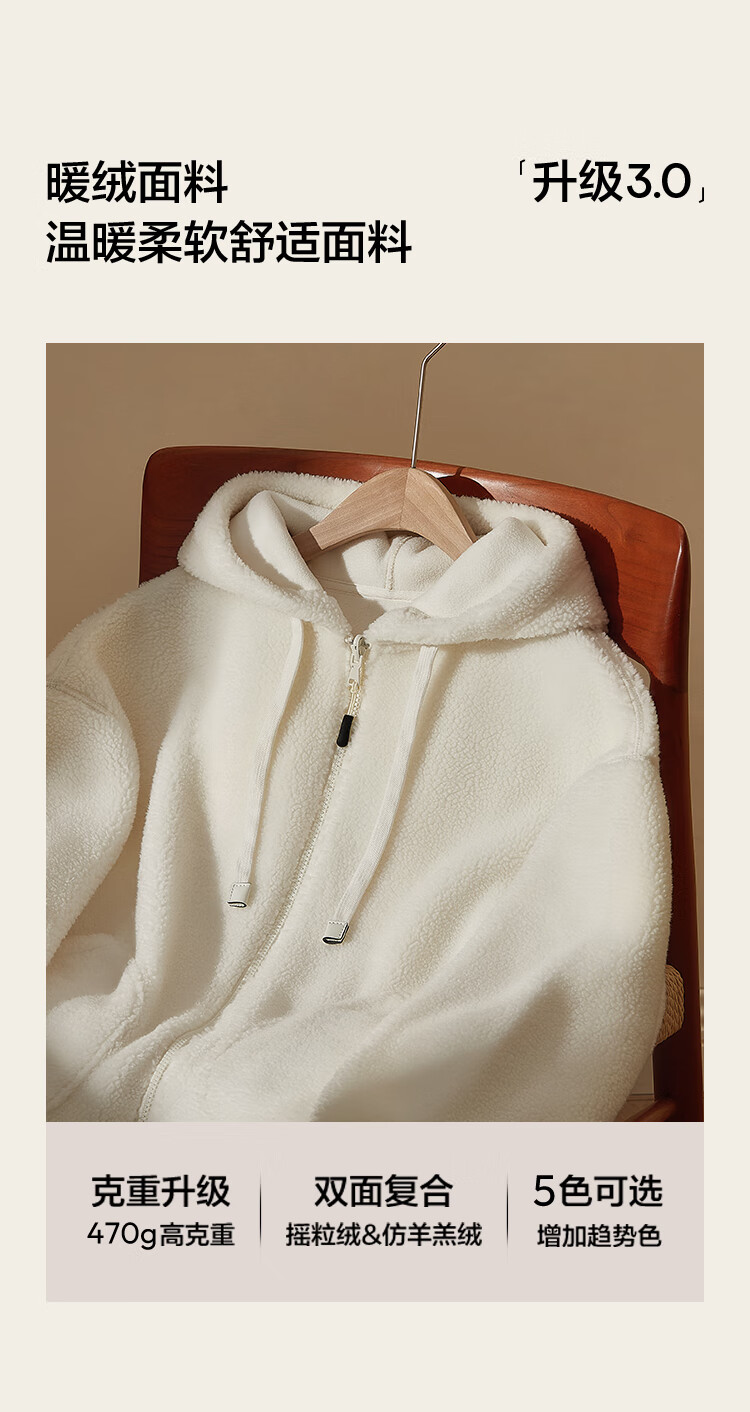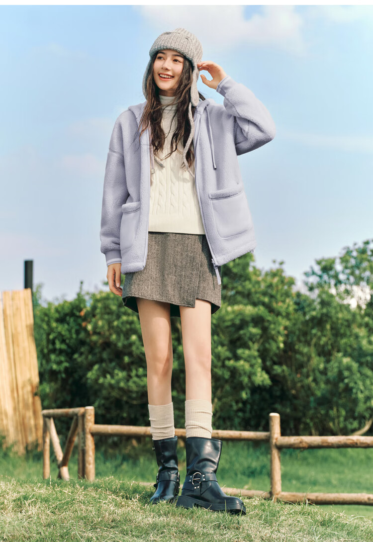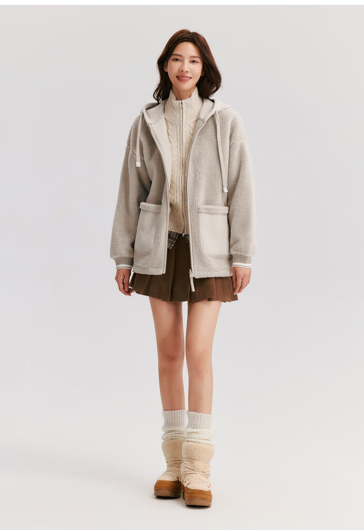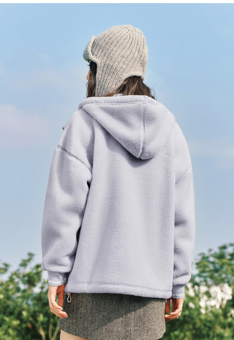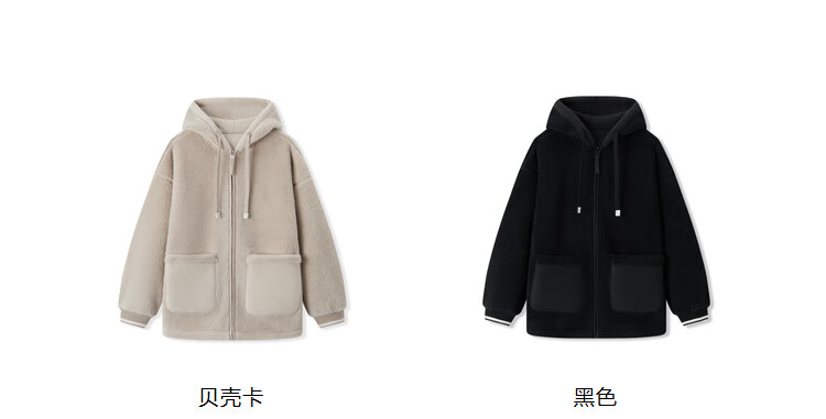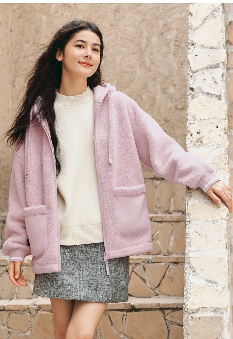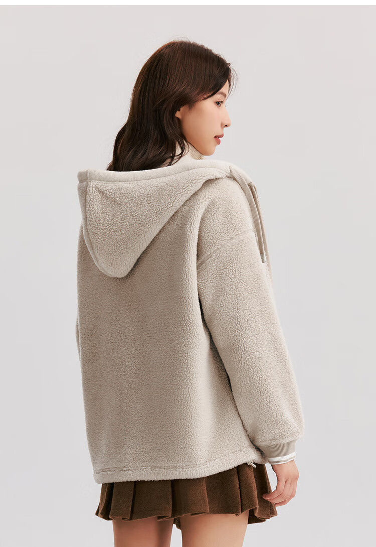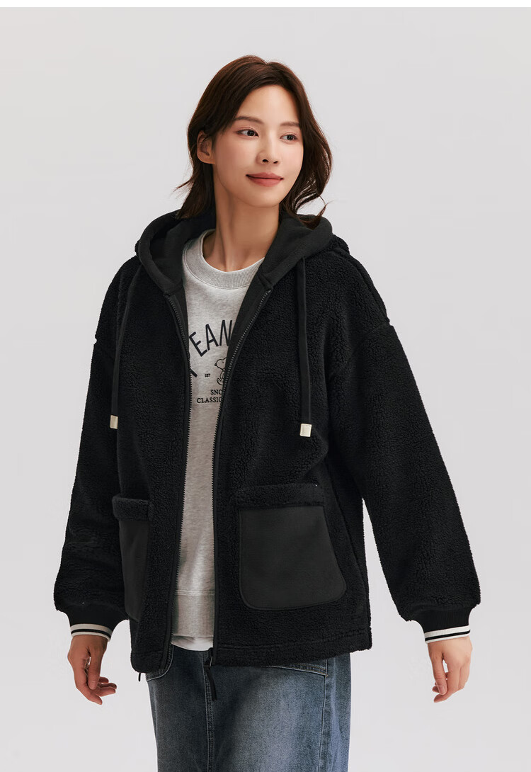 森马(Semir)森马外套女仿羊羔毛摇粒绒双面穿连帽重磅夹克24新款109724108002