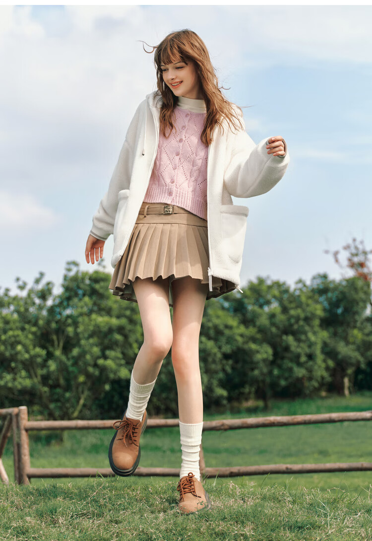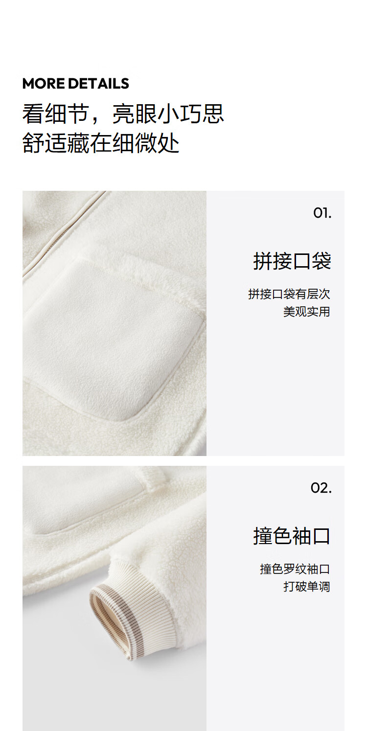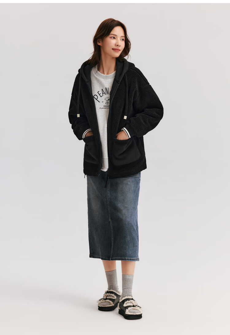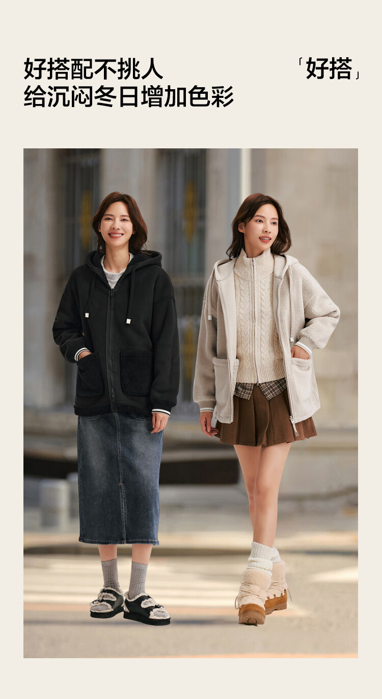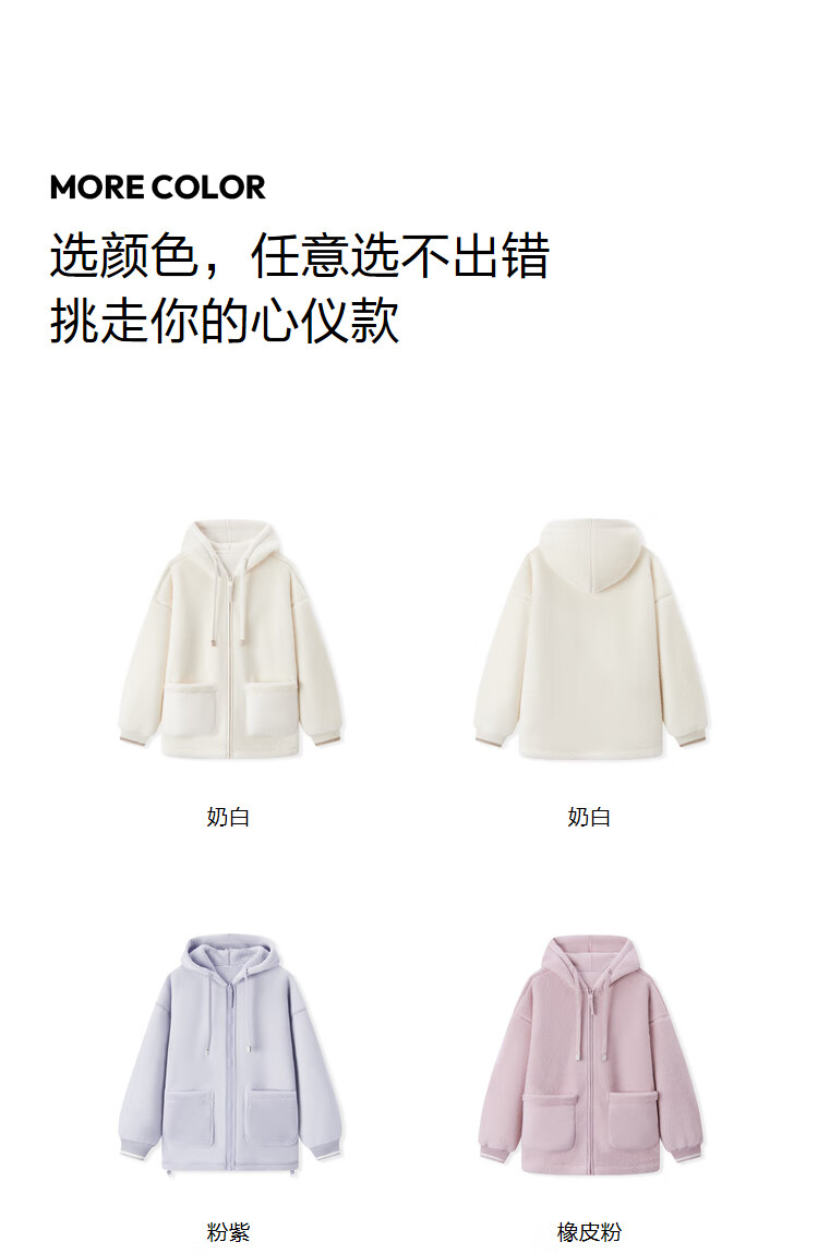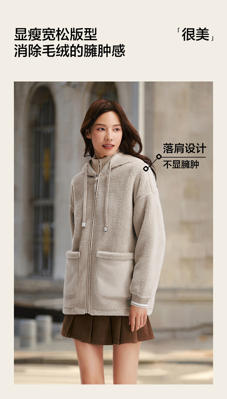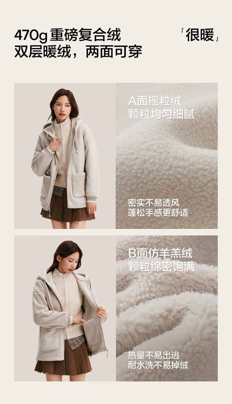 森马(Semir)森马外套女仿羊羔毛摇粒绒双面穿连帽重磅夹克24新款109724108002