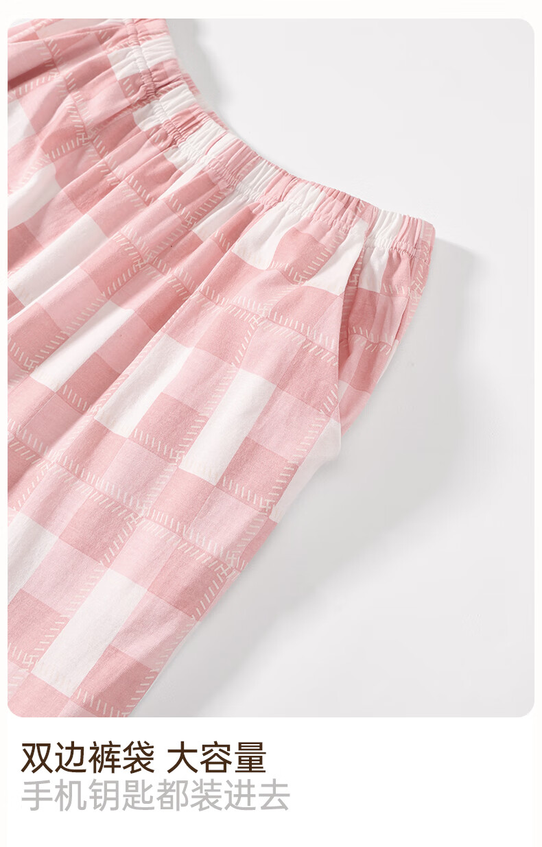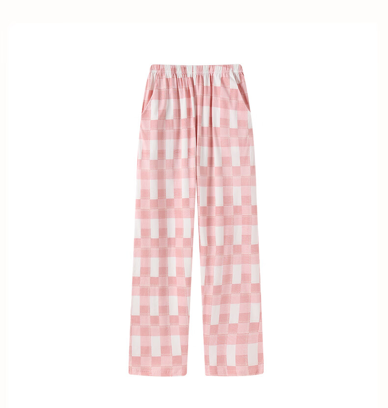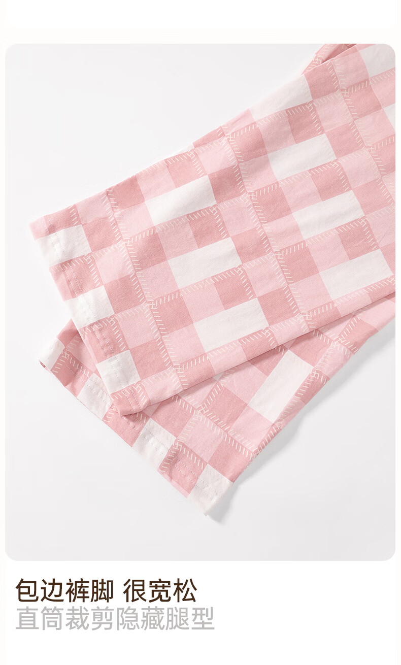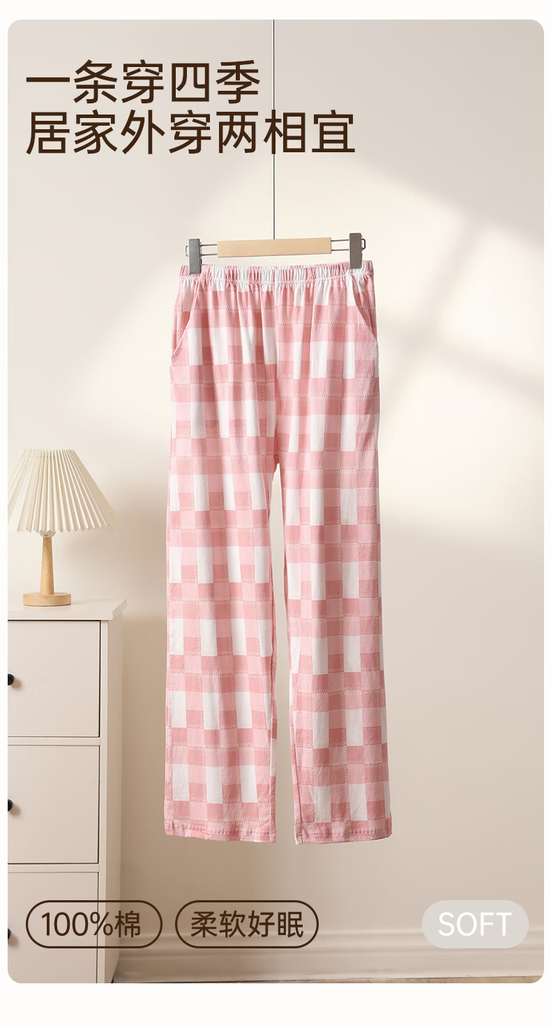 玛伦萨纯棉睡裤女2025新款春秋季长裤大码女士家居裤可外穿休闲裤 粉格 M