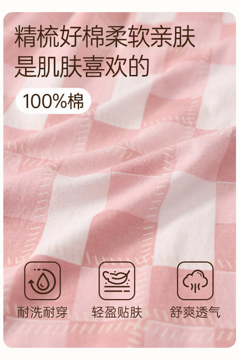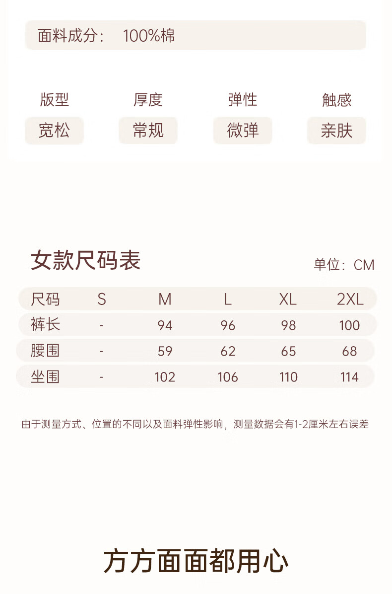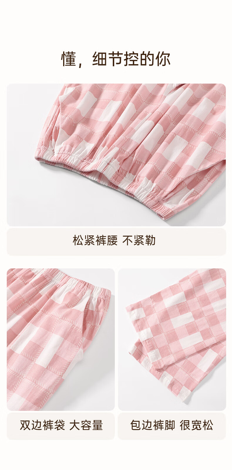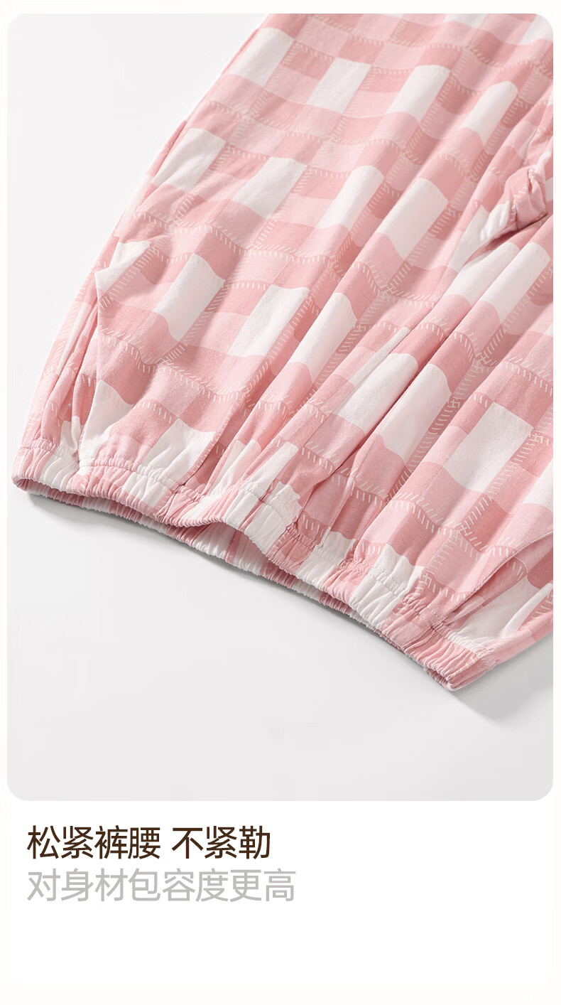 玛伦萨纯棉睡裤女2025新款春秋季长裤大码女士家居裤可外穿休闲裤 粉格 M