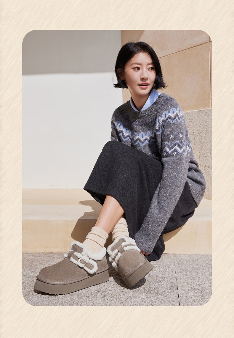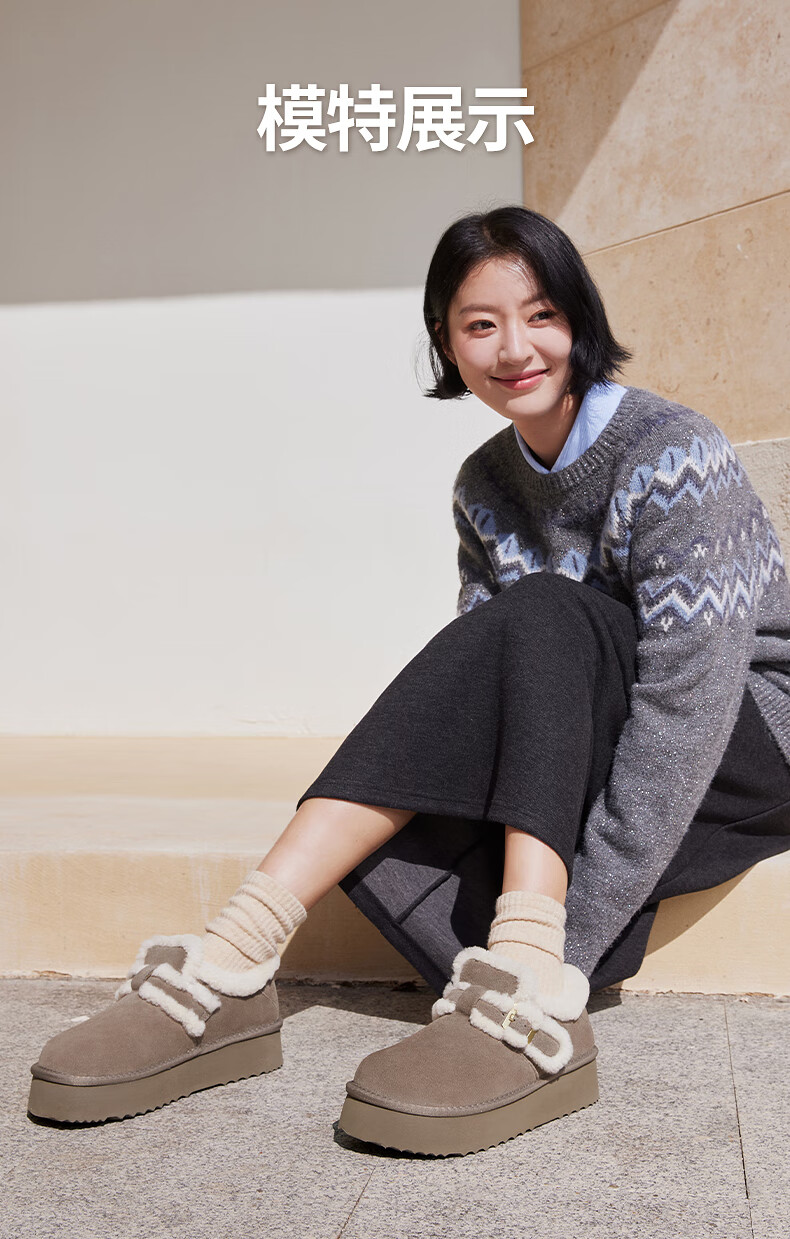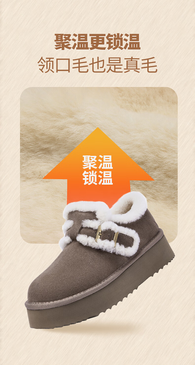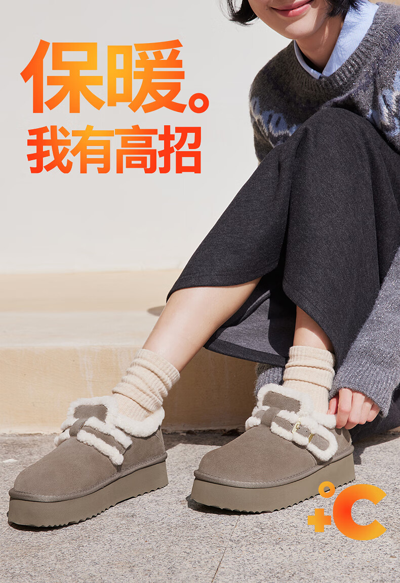热风(Hotwind)【商场同款】厚底雪地靴女2025年冬季新款加绒保暖棉鞋百搭短筒靴 02棕色 35