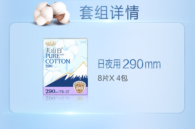 淘淘氧棉天山白纯棉消毒级日夜用卫生巾290mm8片*4 京东自营