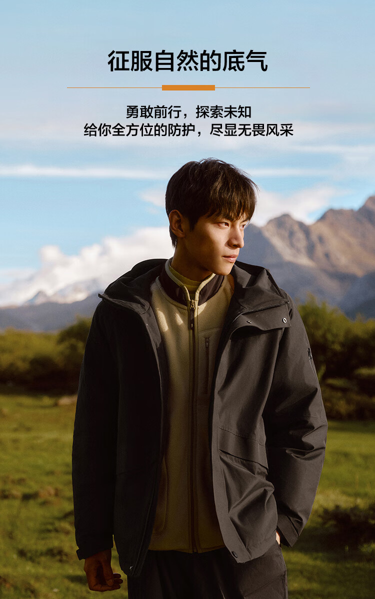 森马羽绒服男中长款冬防雨防污防油防风宽松连帽外套109724113128