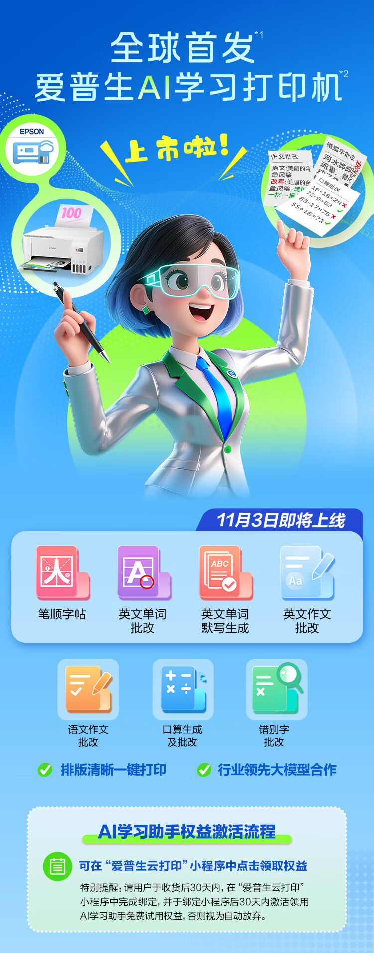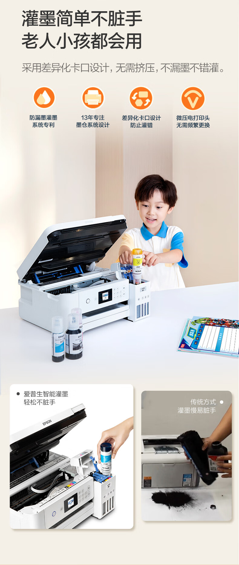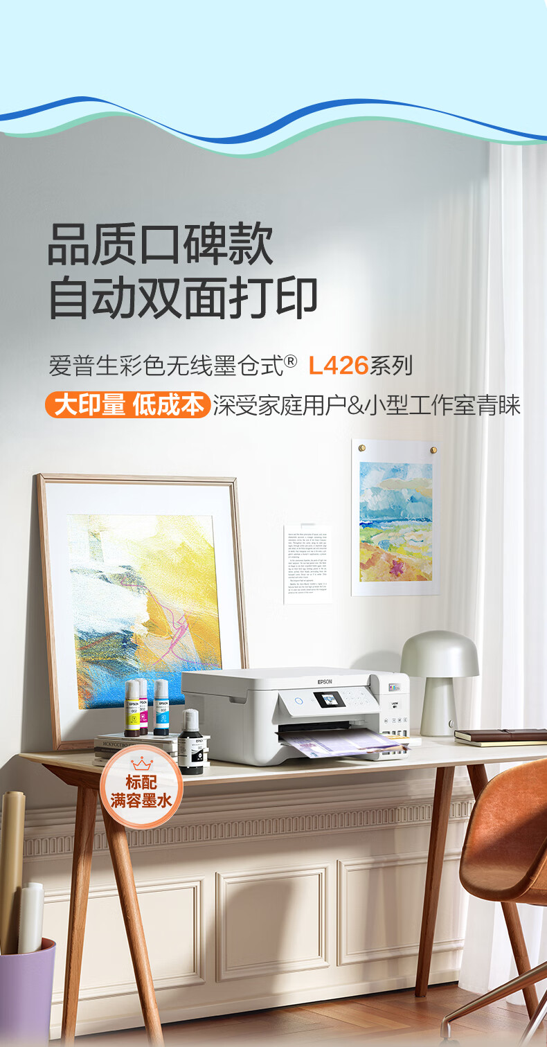 爱普生(EPSON)L4266墨仓式彩色无线多功能一体机家用/办公打印(打印复印扫描 wifi 自动双面 AI学习打印机)