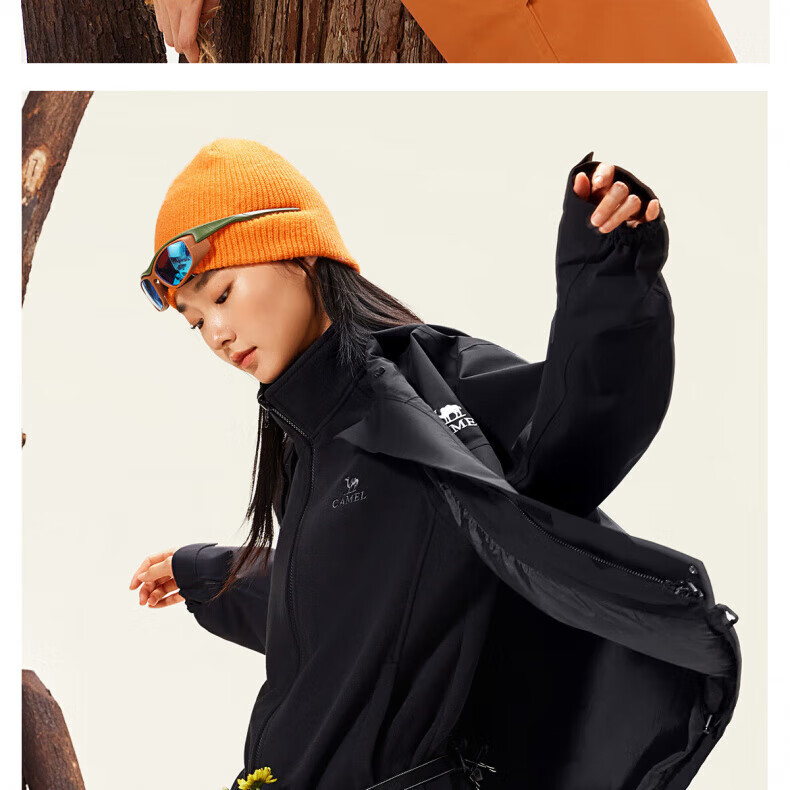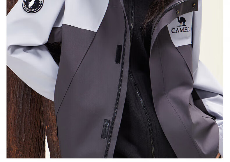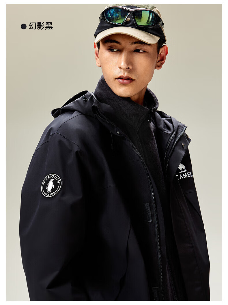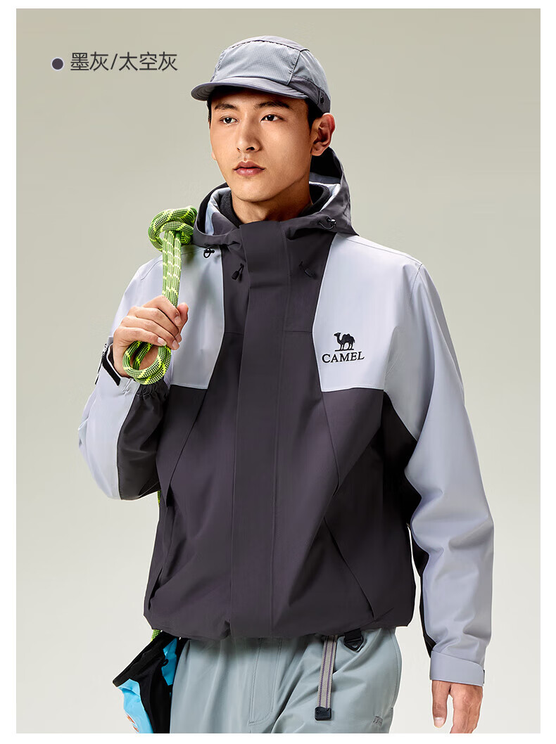 骆驼(CAMEL)蛟龙冲锋衣王俊凯同款男女防水防风户外运动外登山进藏服 幻影黑 男女同款,三合一730B L