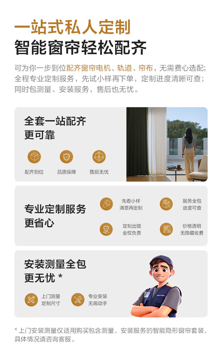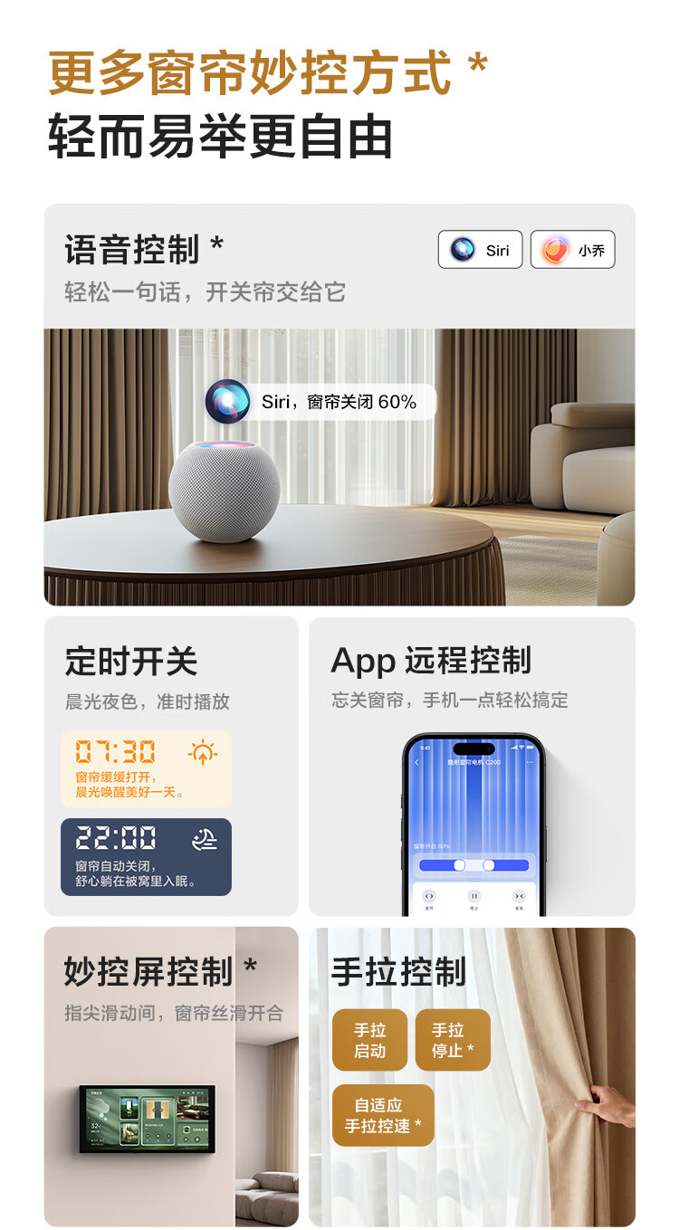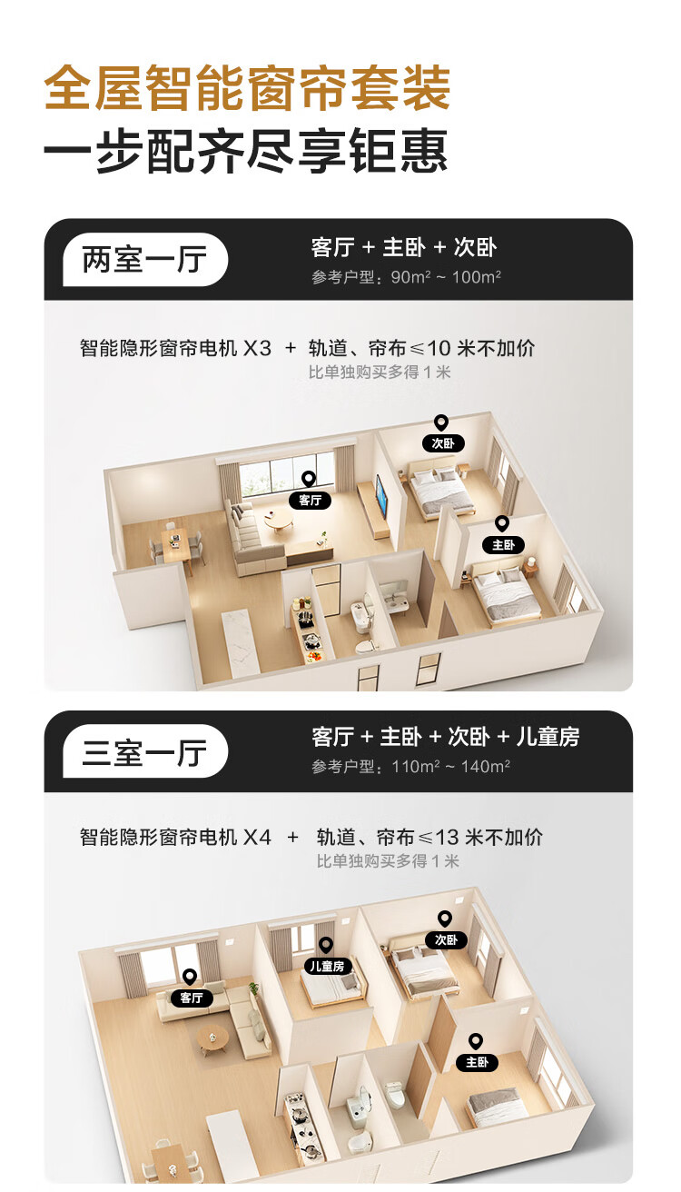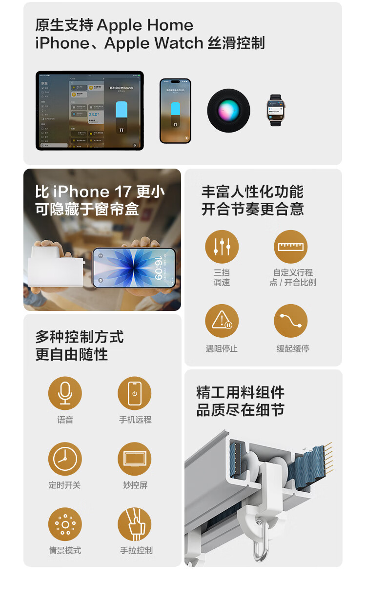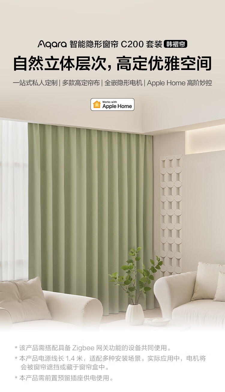 Aqara智能窗帘C200成品帘韩褶帘套装电动窗帘包测量安装已接入HomeKit 三室一厅套装