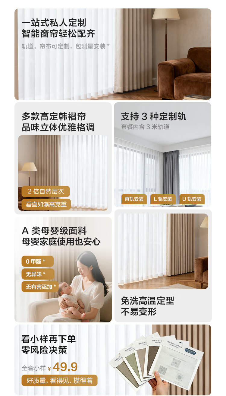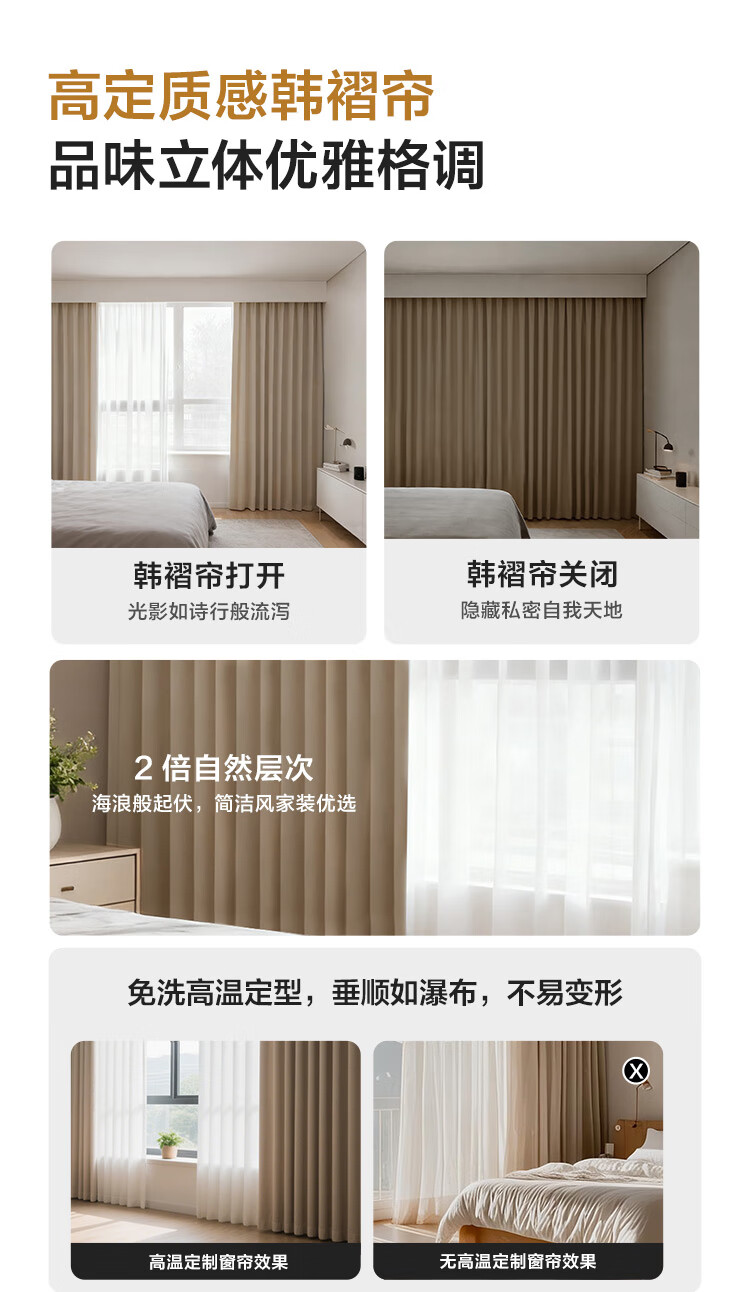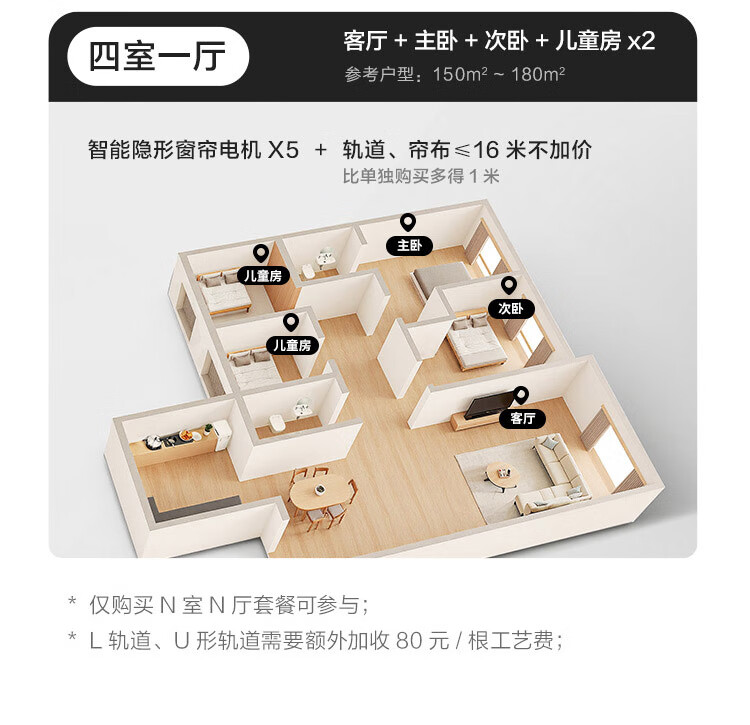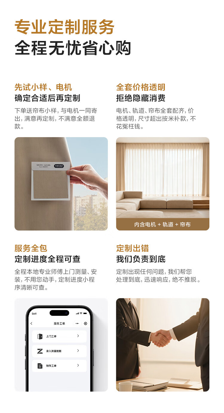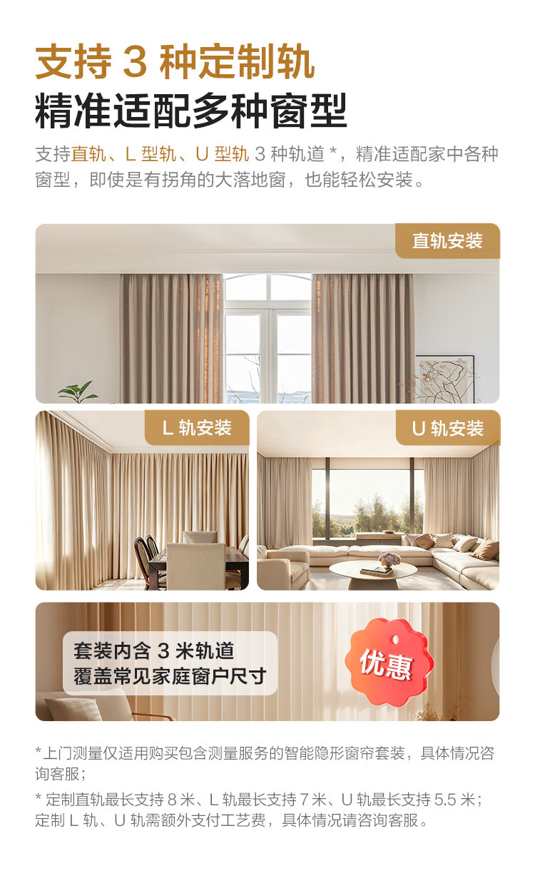 Aqara智能窗帘C200成品帘韩褶帘套装电动窗帘包测量安装已接入HomeKit 三室一厅套装