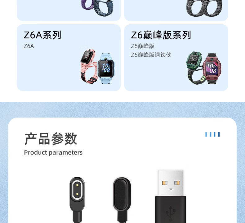 RAXTPC适用小天才充电线电话手表充电线Z11/Z10/Z9/Z8/Z6P/Z7/Z7S/Z7A/Z6S底座磁吸快充1米