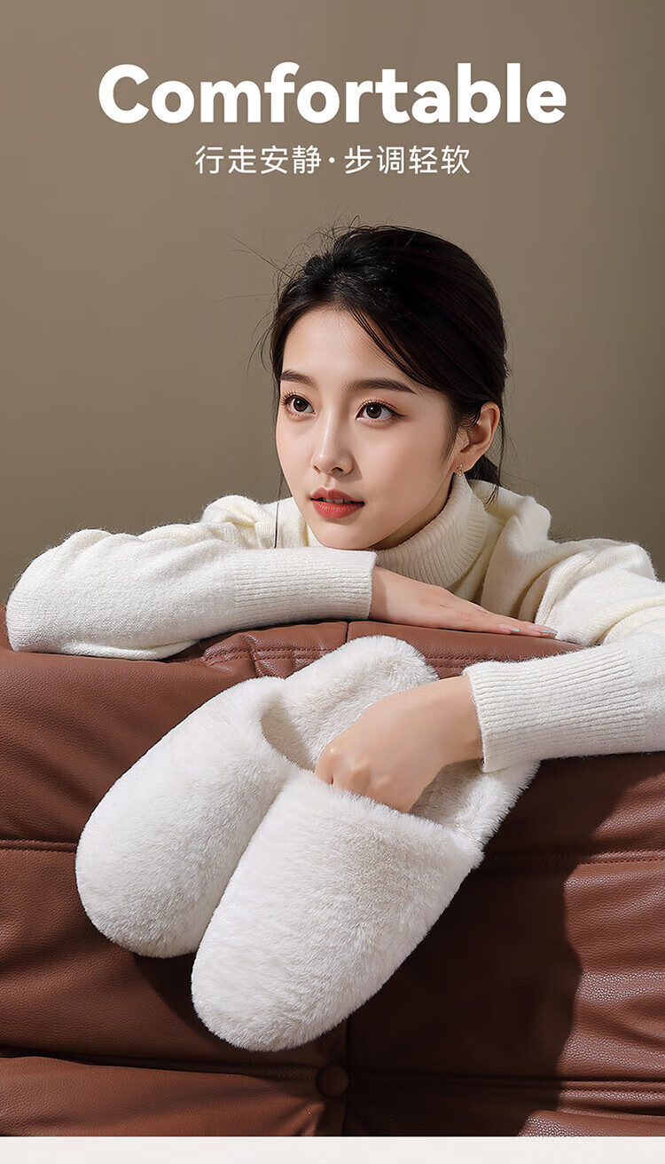 DEATKN德国棉拖鞋女士秋冬季2025新款家居室内可爱毛绒厚底防滑保暖月子 白色云朵【升级款】 38 -39【适合37-38脚穿】