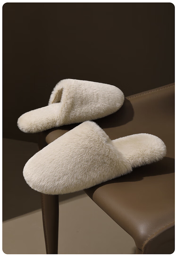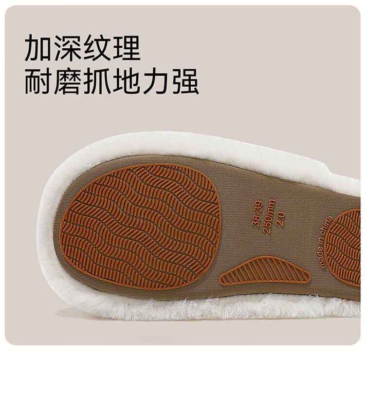 DEATKN德国褶皱棉拖鞋女士新款秋冬季室内家居家用保暖冬天防水PU皮面 麦芽白 36-37 【适合35-36脚】