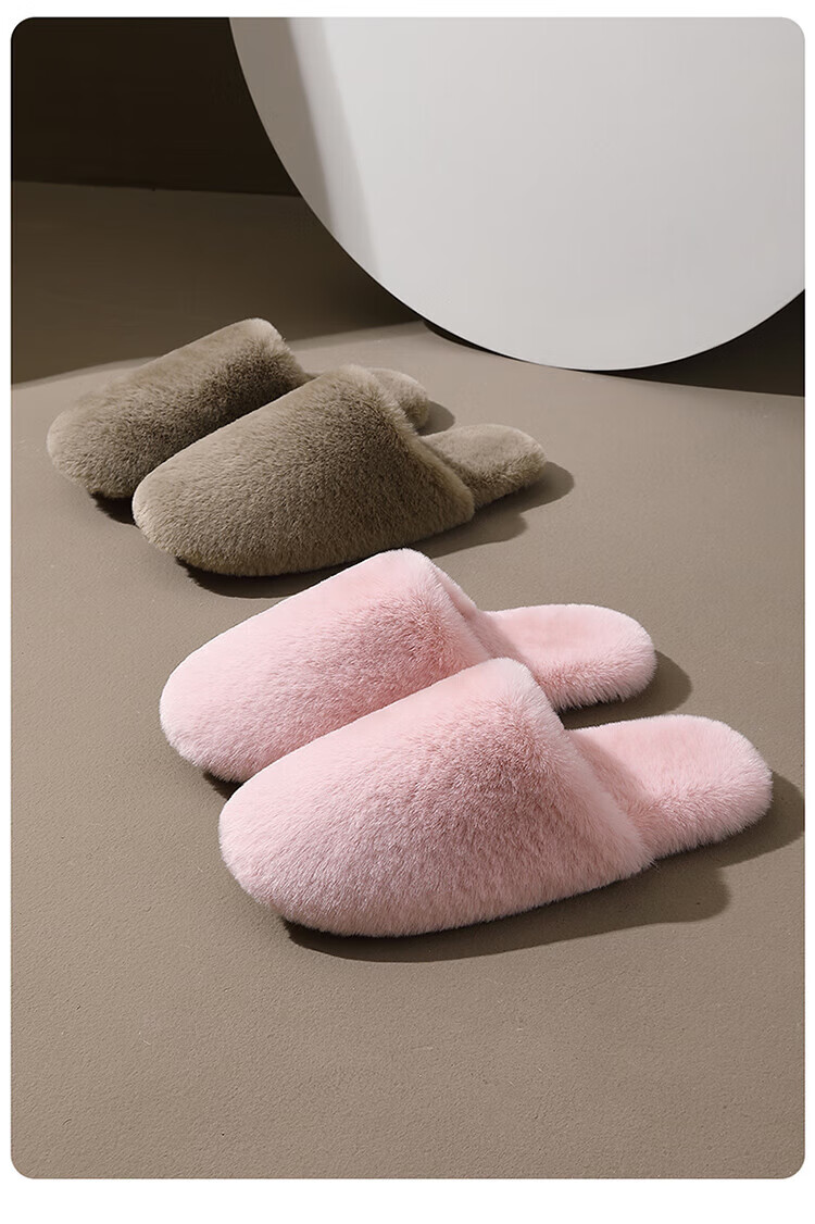 DEATKN德国毛毛拖鞋女款家用秋冬季2025新款室内家居防滑保暖包头棉拖鞋 粉色【2.0|加绒防滑款】 36-37 【内长24cm】