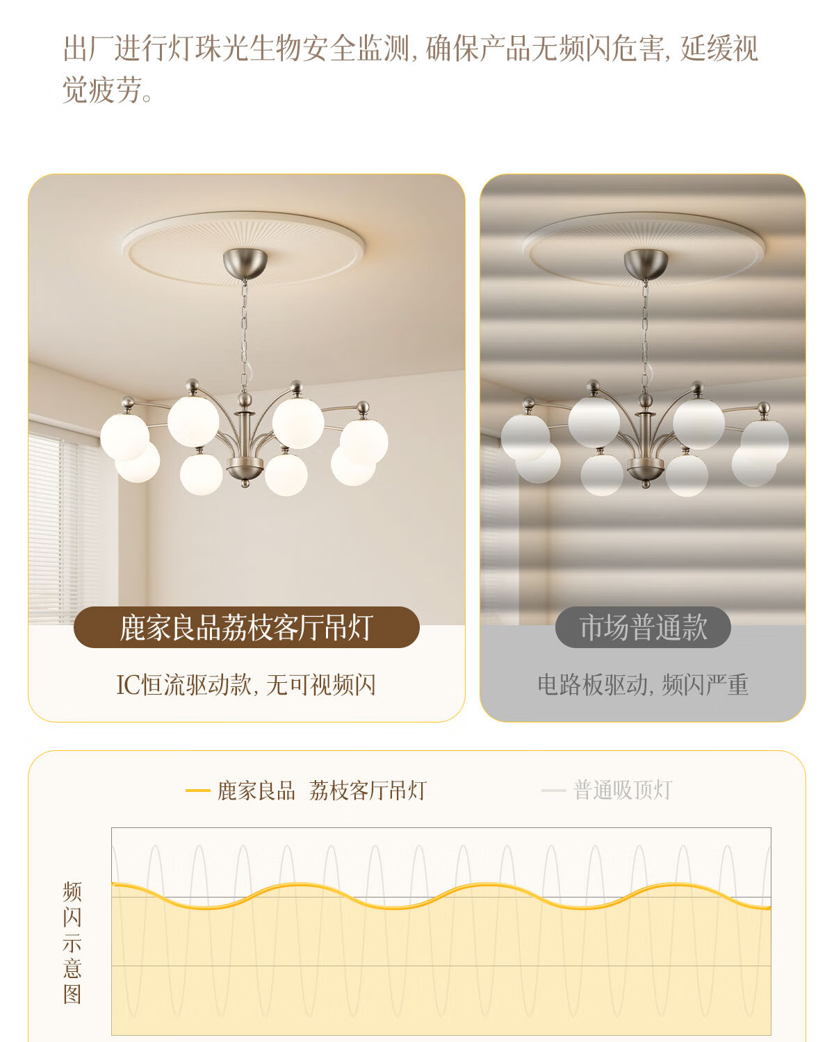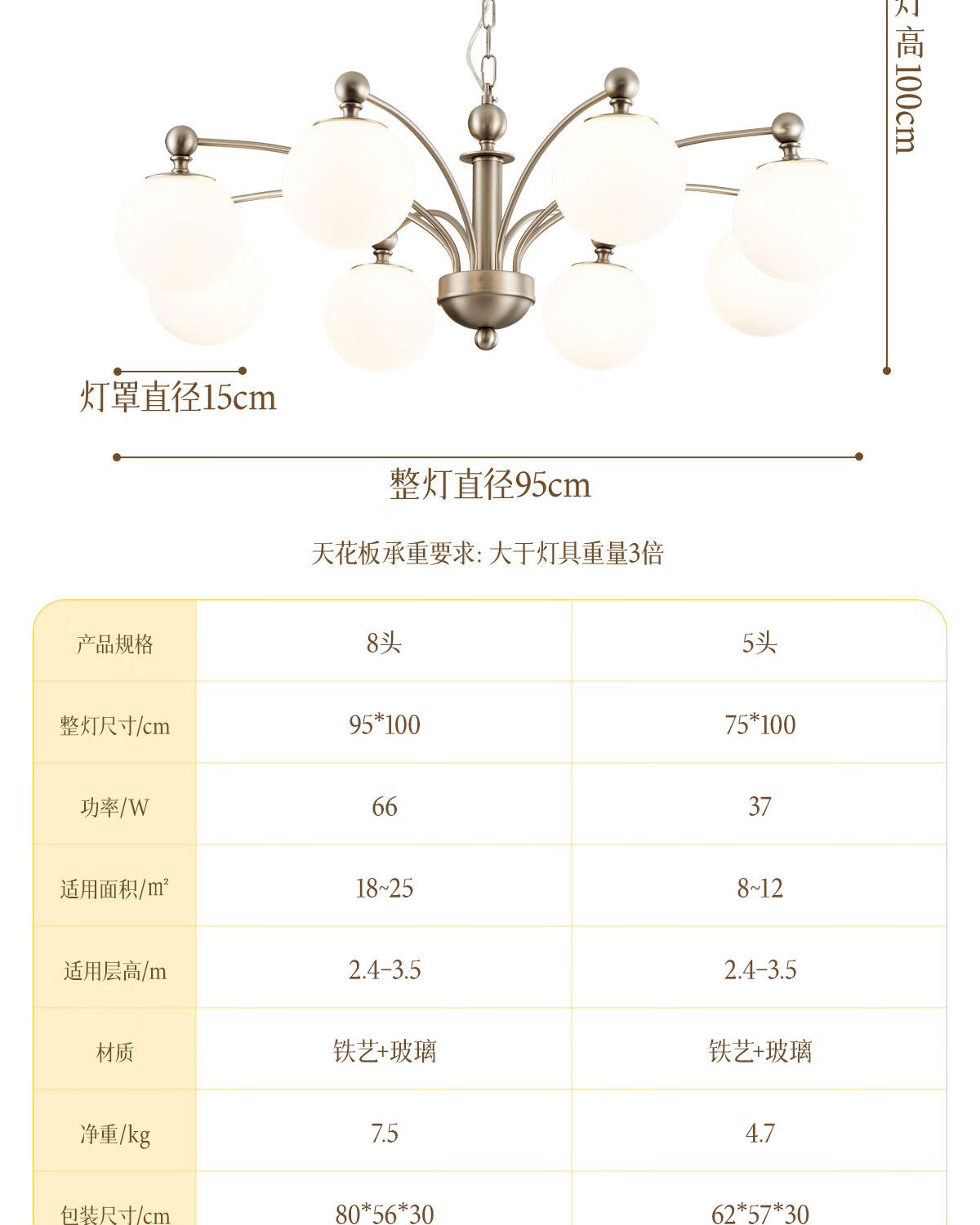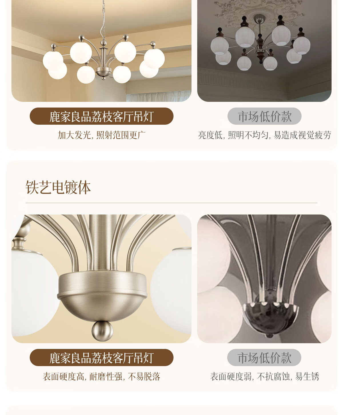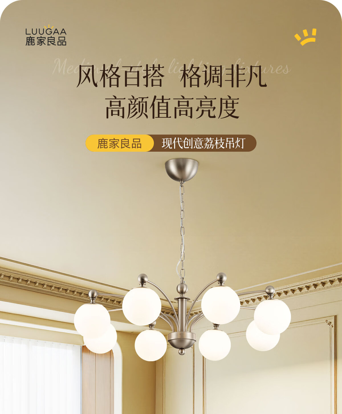 鹿家良品(LUUGAA)荔枝吊灯2025新款中古风主灯法式客厅吊灯卧室灯复古包豪斯大厅灯 【荐】全光谱8头95cm三色光66W