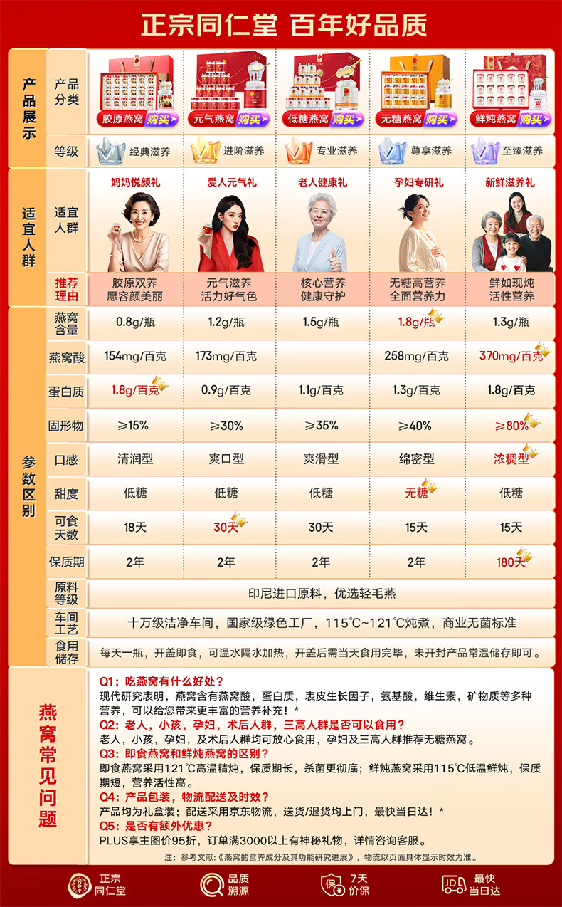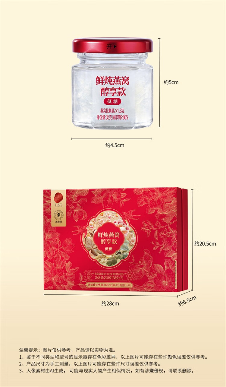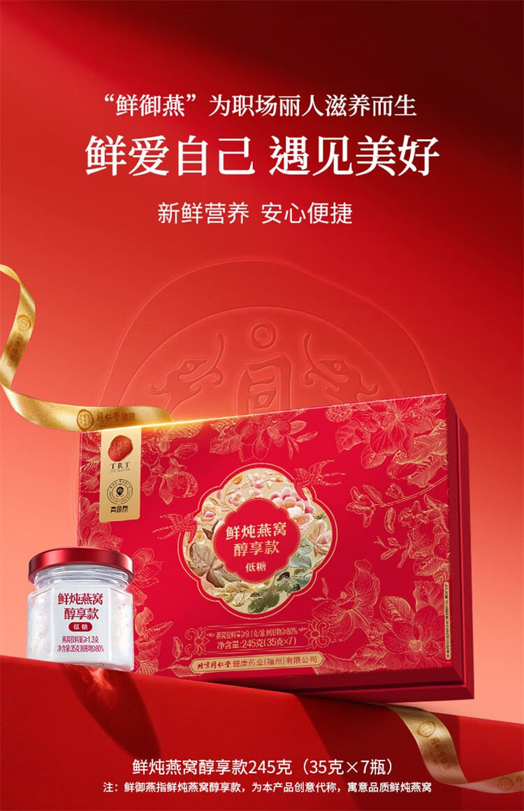 同仁堂北京同仁堂鲜炖燕窝即食长辈孕妇补品气血营养品礼盒礼品35g*7瓶