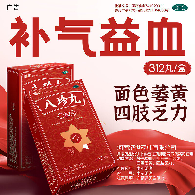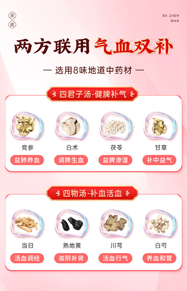 恩威八珍丸312丸补气血女补气养血补血补气女人贫血气血两虚调理京东自营八珍颗粒汤补铁补血改善贫血失眠