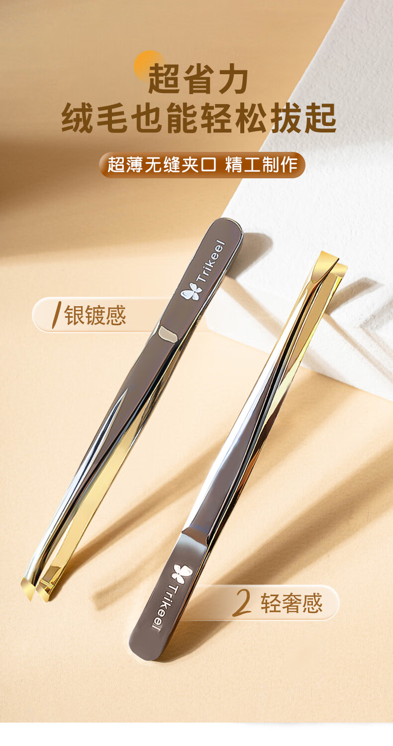 AILUKI日本眉夹小镊子拔眉毛夹子拔毛钳不锈钢拔胡子修眉套装高精工具 轻奢银眉毛夹【平口】