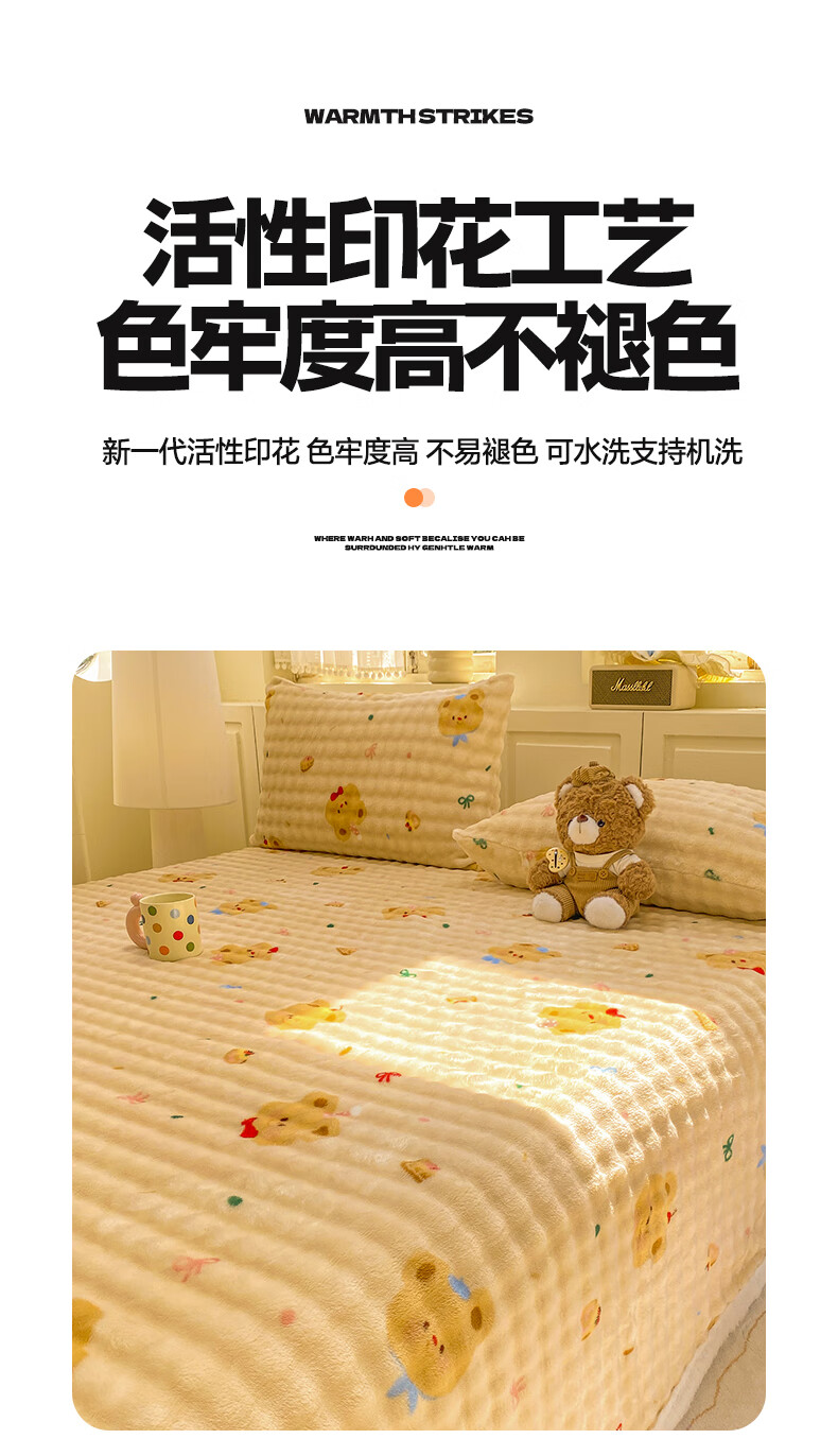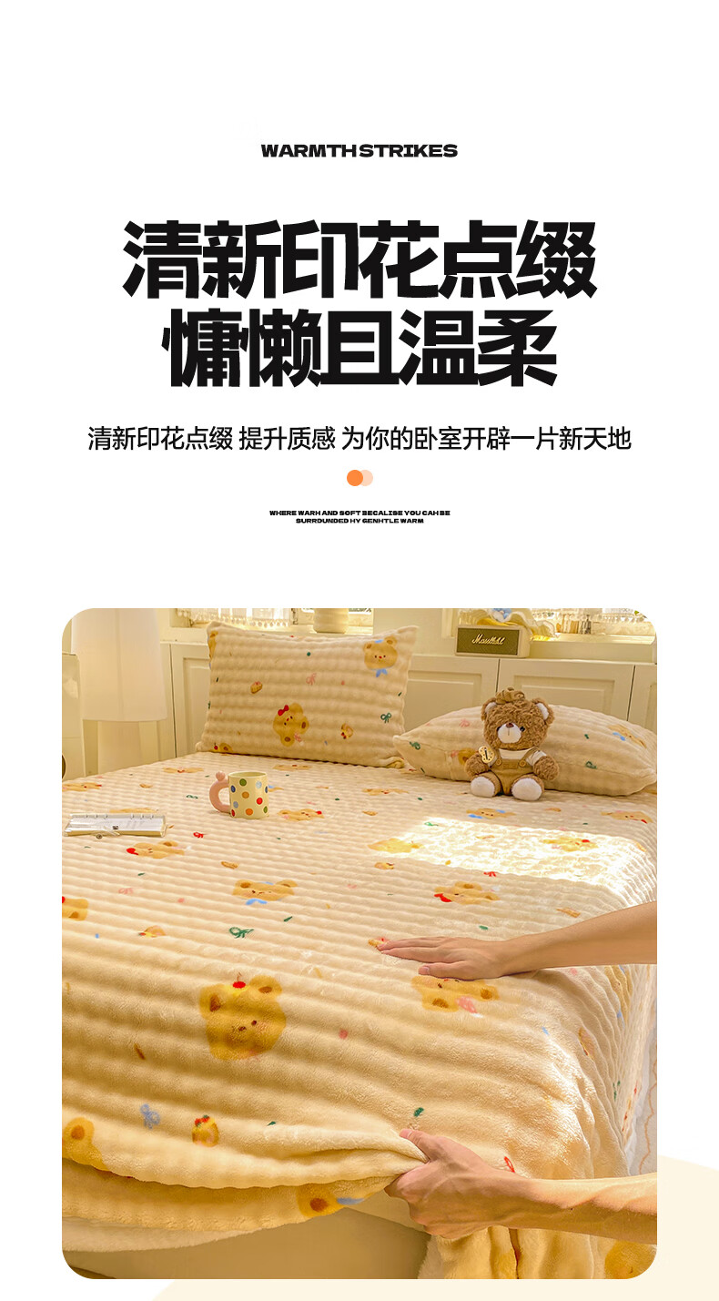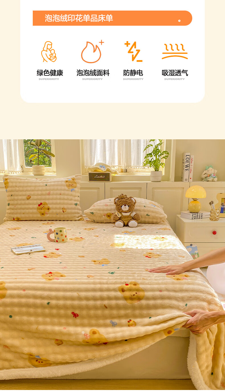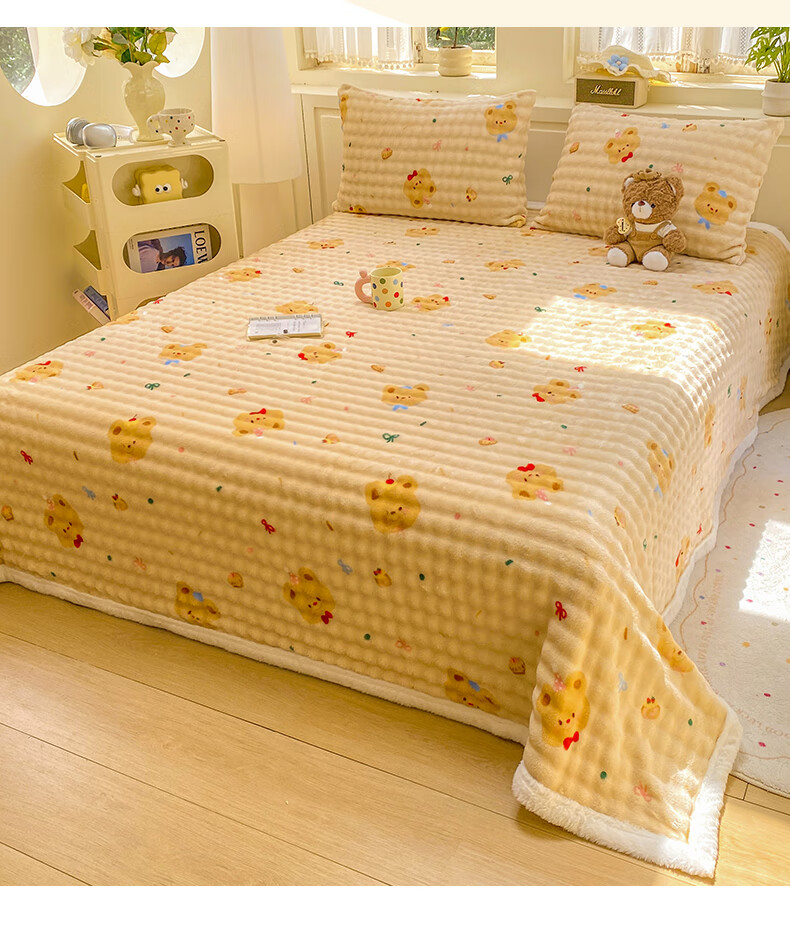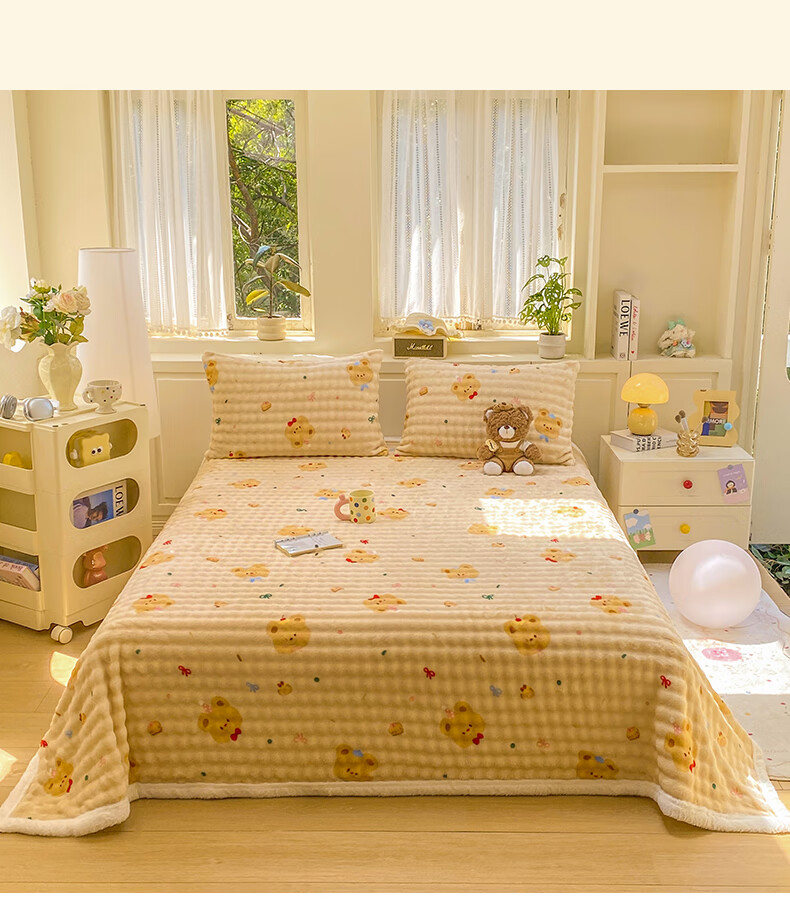 苏萱冬季卡通牛奶绒床单单件2025新款珊瑚绒被单兔毛绒单人铺盖毛绒毯 泡芙小熊 床单单件230x250cm