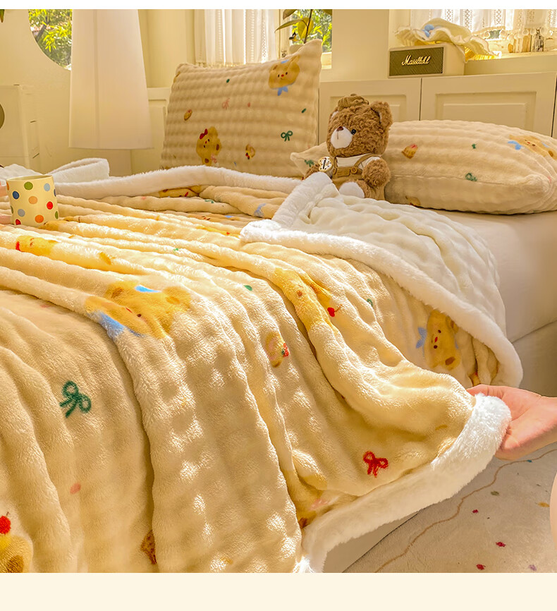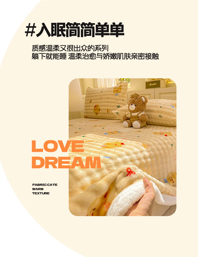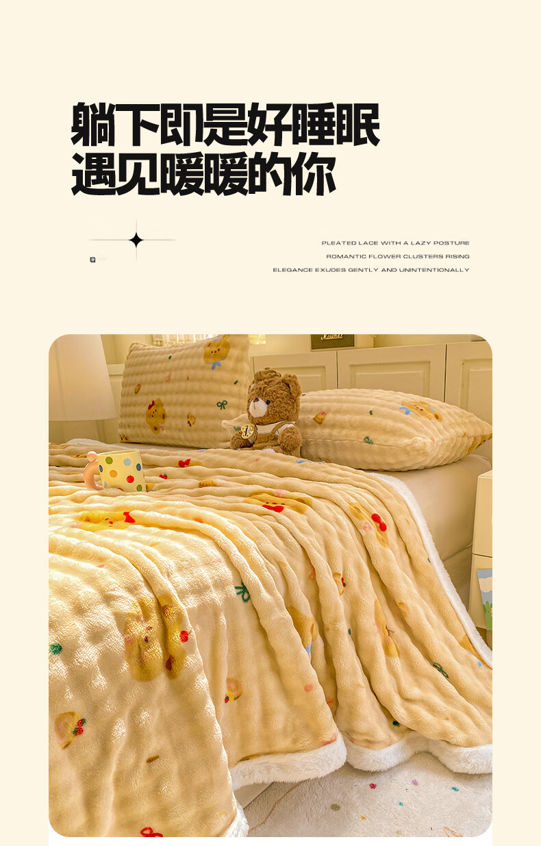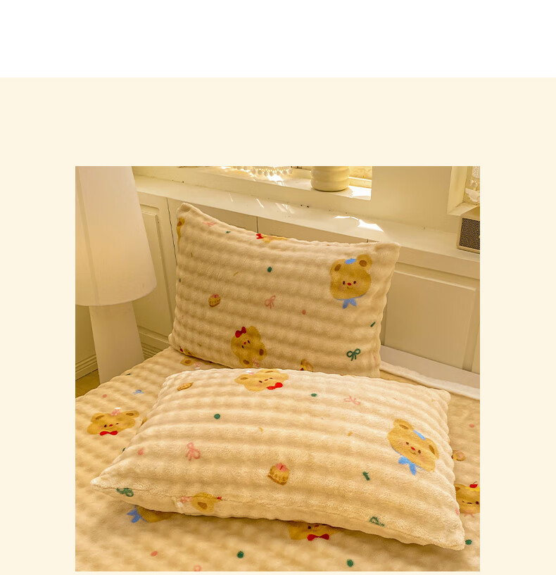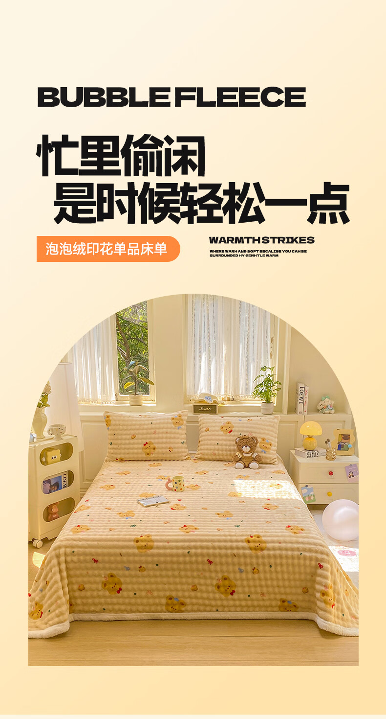 苏萱冬季卡通牛奶绒床单单件2025新款珊瑚绒被单兔毛绒单人铺盖毛绒毯 泡芙小熊 床单单件230x250cm