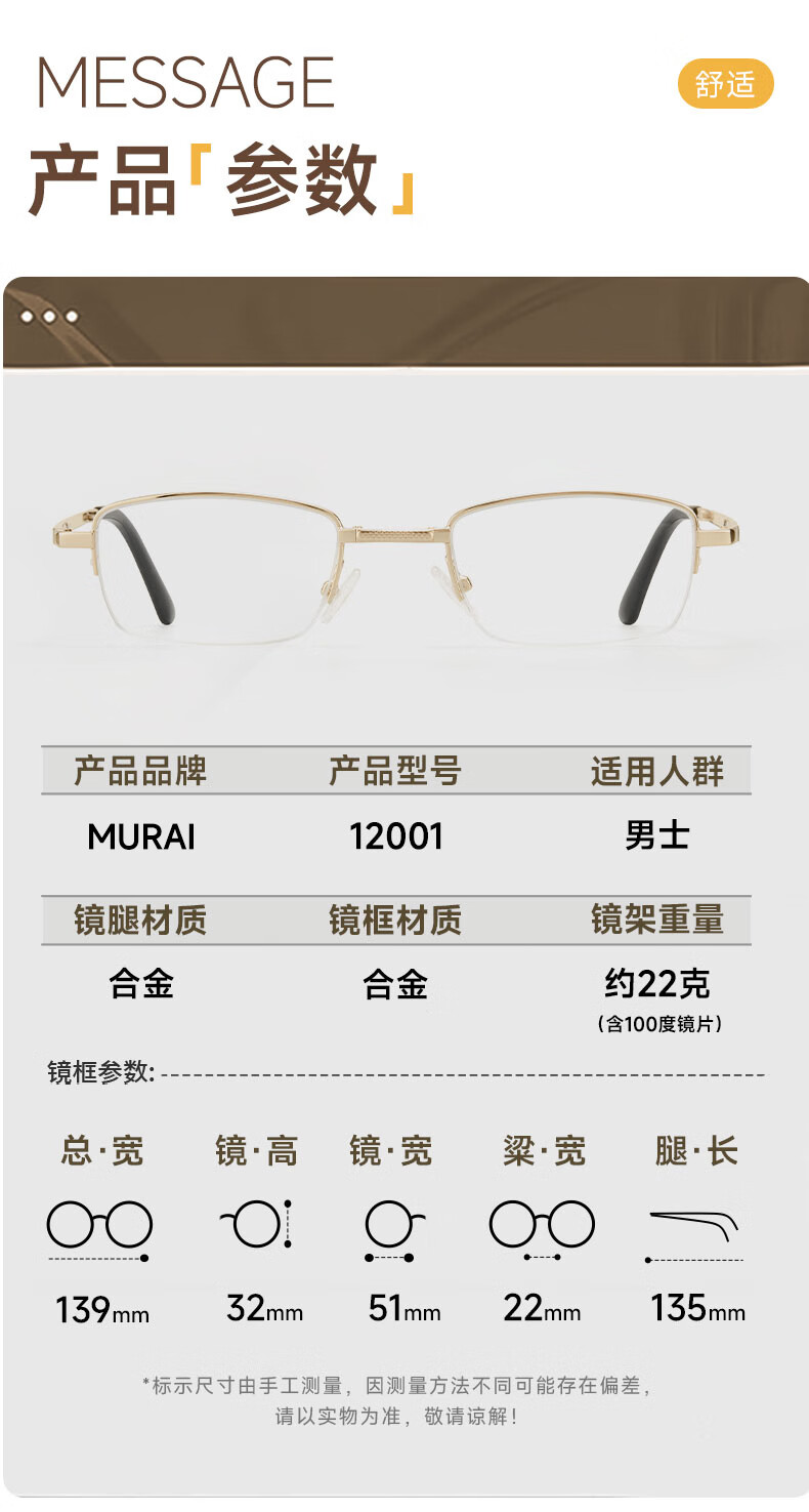 MURAI日本品牌老花镜男高清老人防蓝光折叠老花眼镜12001R