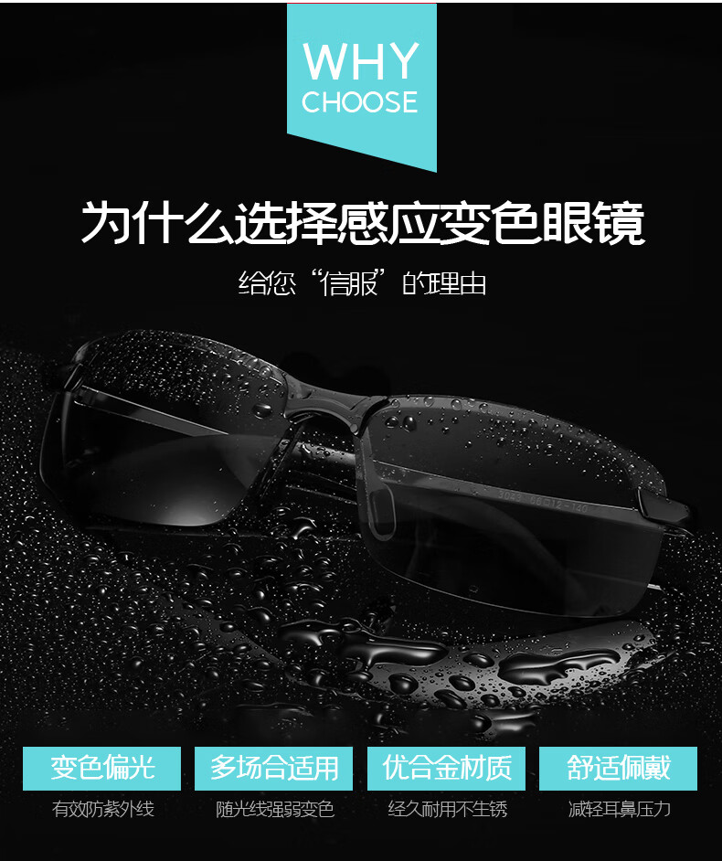 Jardin d'amour偏光变色太阳镜男开车钓鱼驾驶遮阳镜防紫外线墨镜JA3043