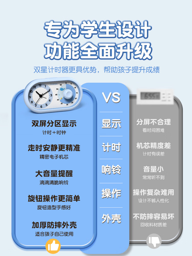 Timess可视化计时器儿童学生起床自律神器厨房定时器时间管理器办公室静音闹钟计时器开学季礼物