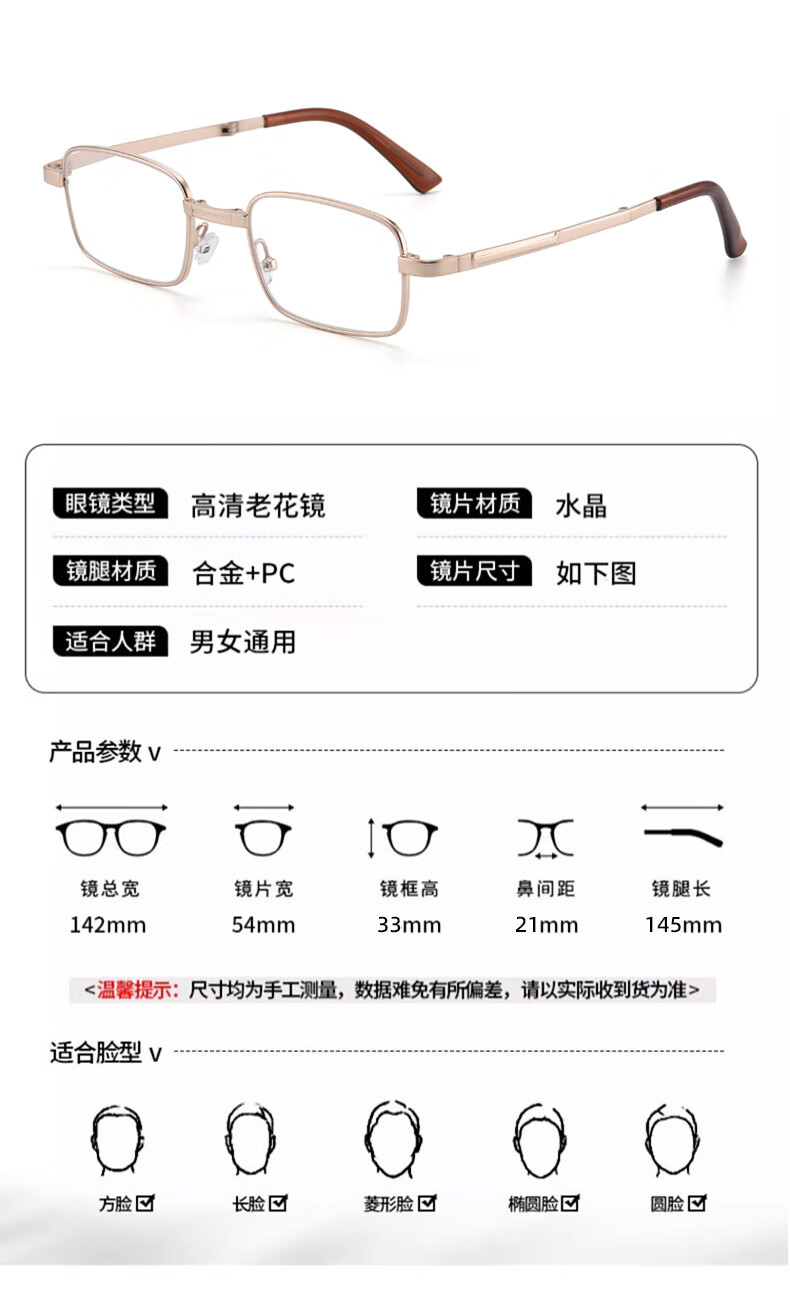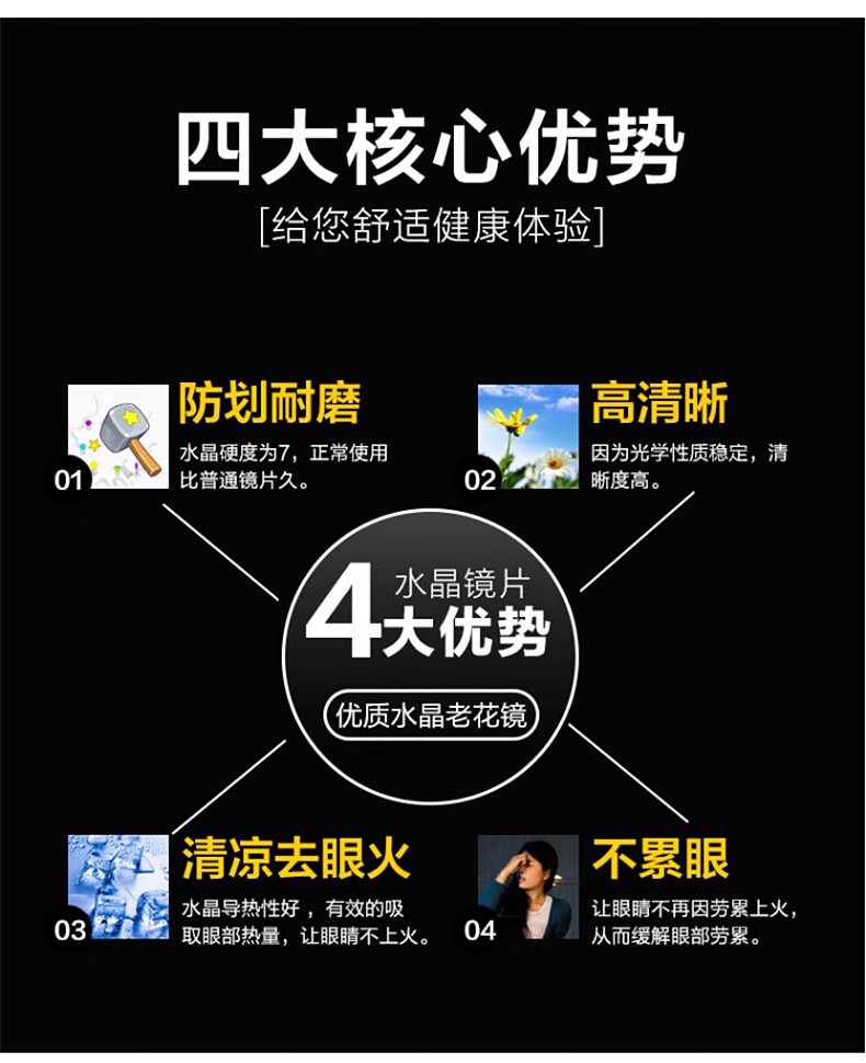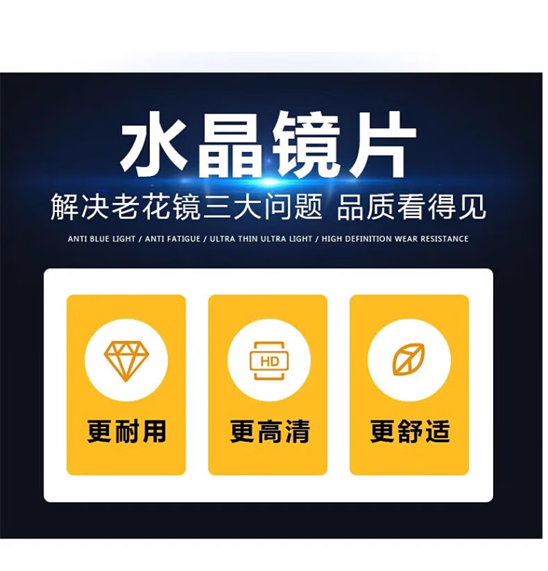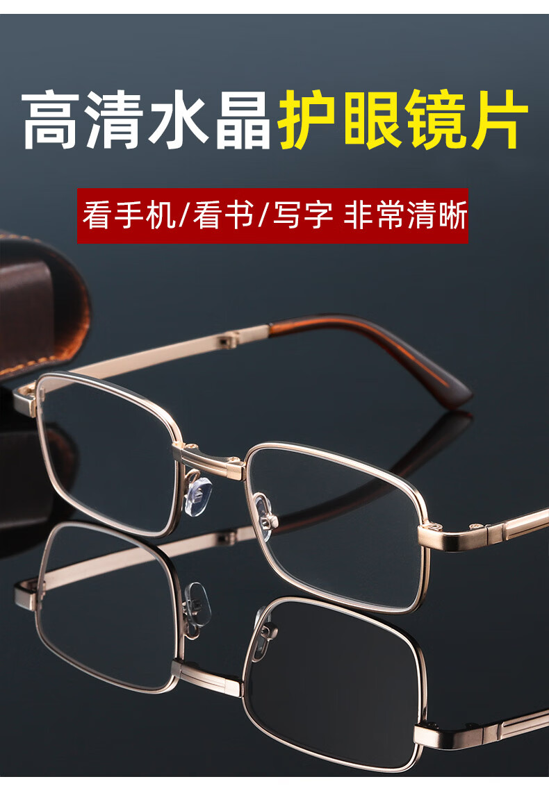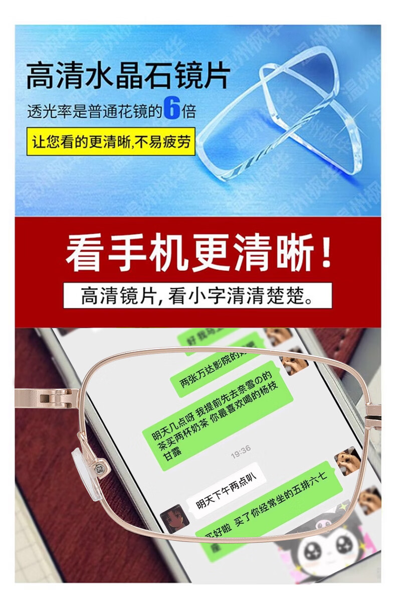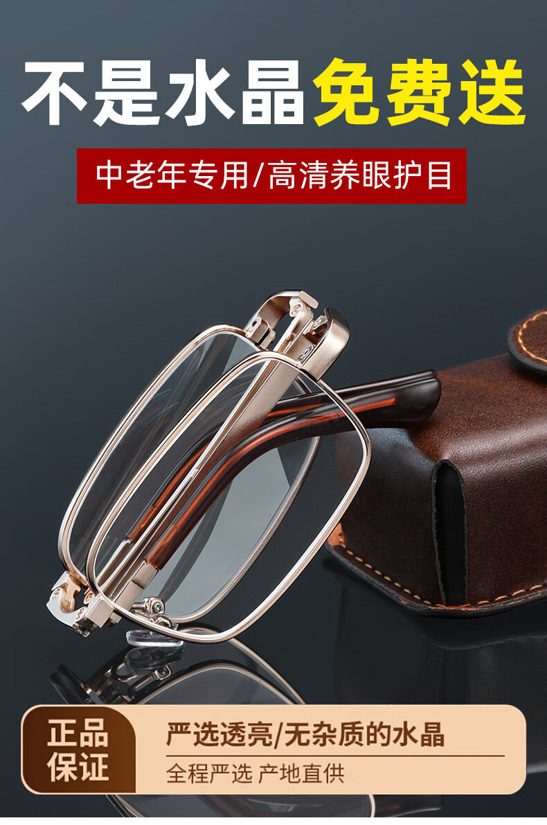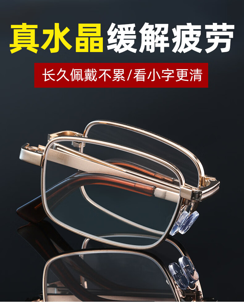 GOGOSOON智能变焦折叠便携天然水晶石老花眼镜男中老年高清水晶石头女开学
