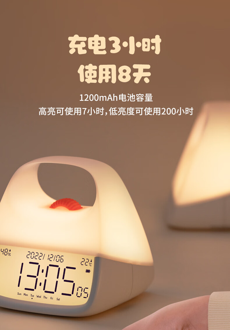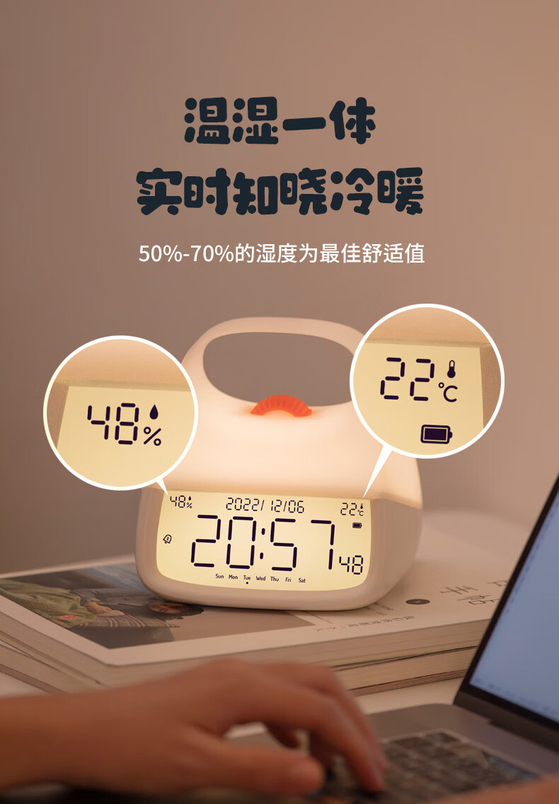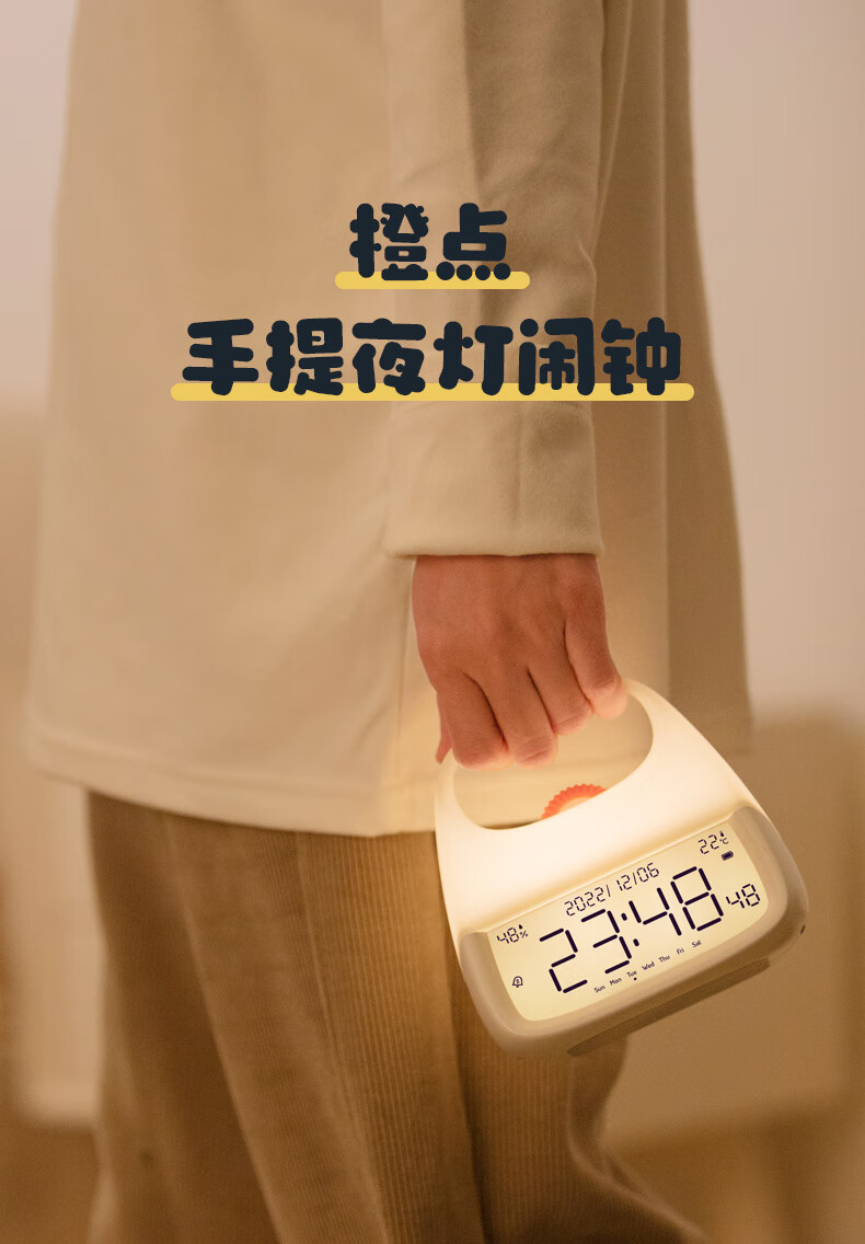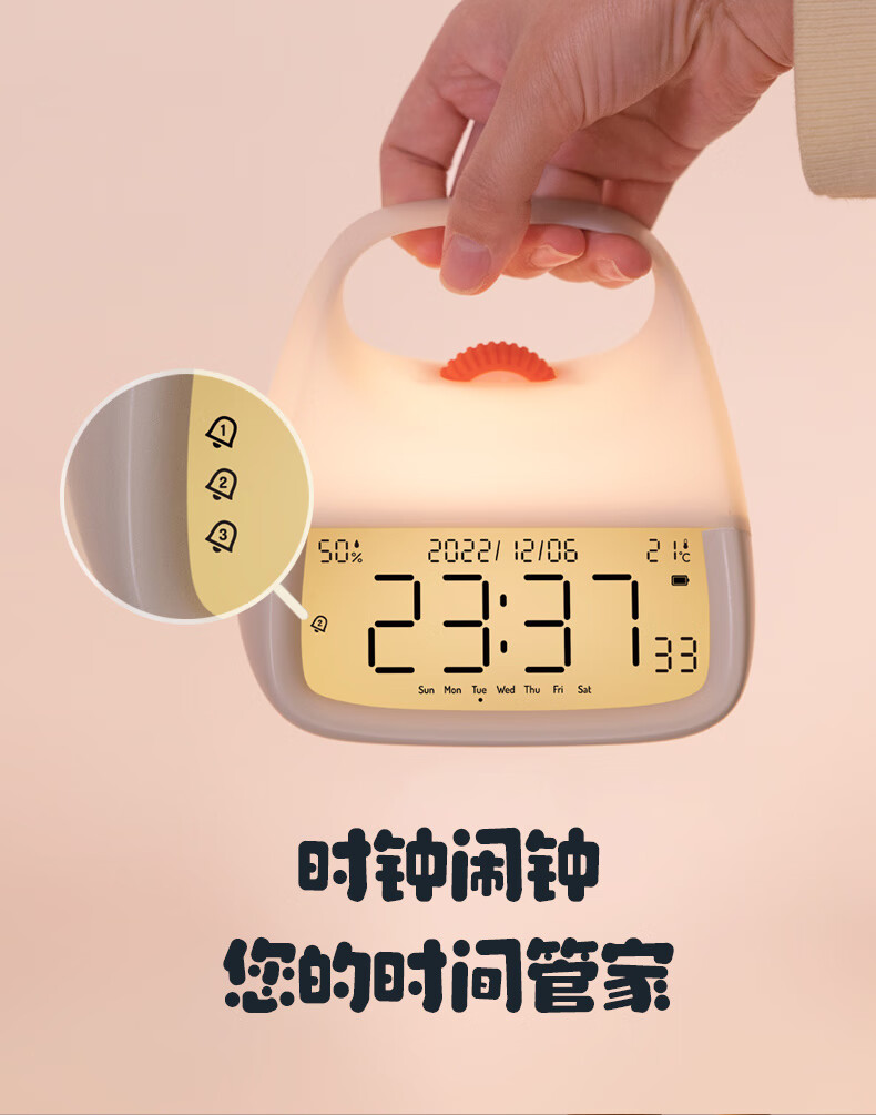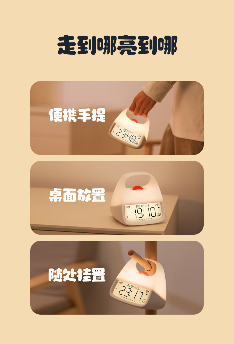 半点创意手提夜灯闹钟创意卧室床头时钟带温度湿度多功能睡眠起夜灯喂奶灯