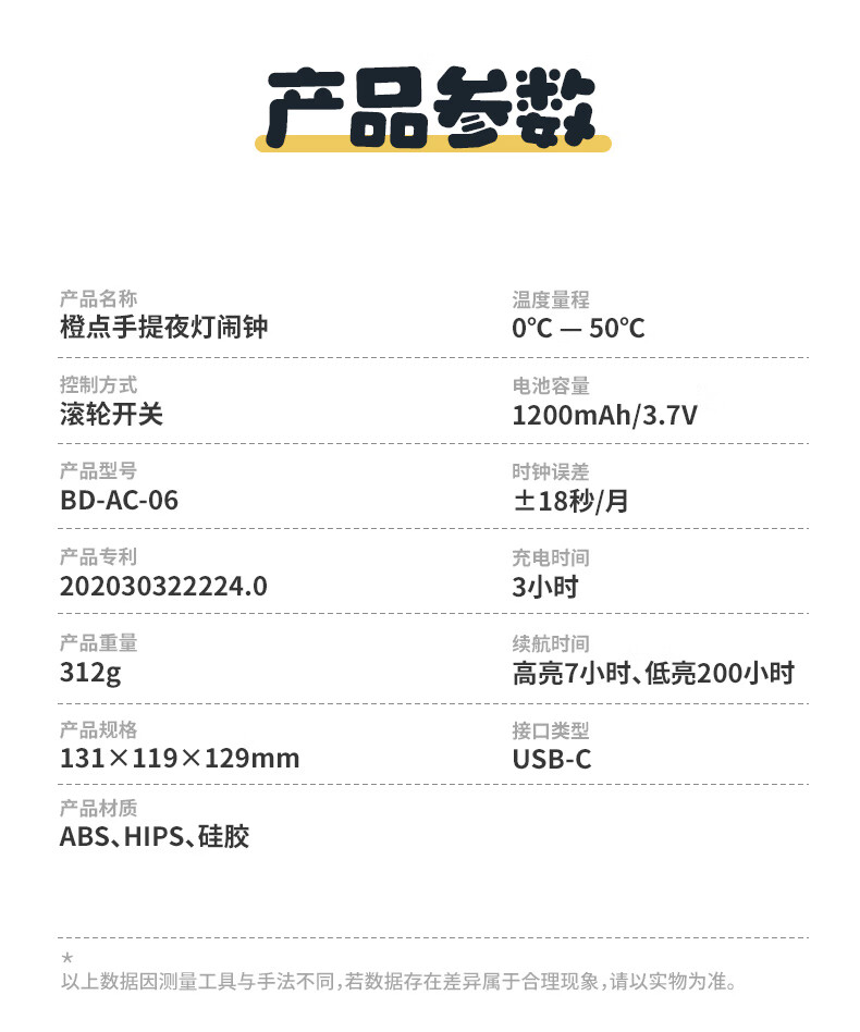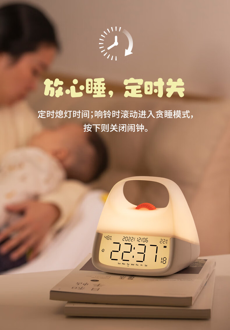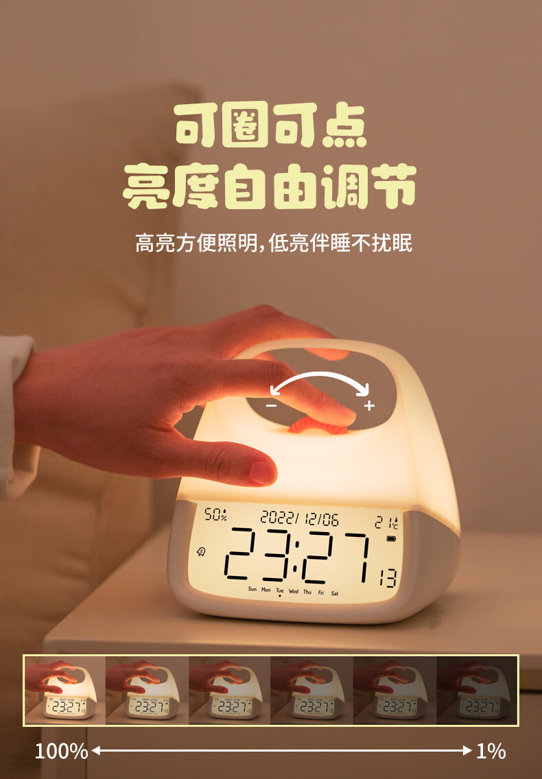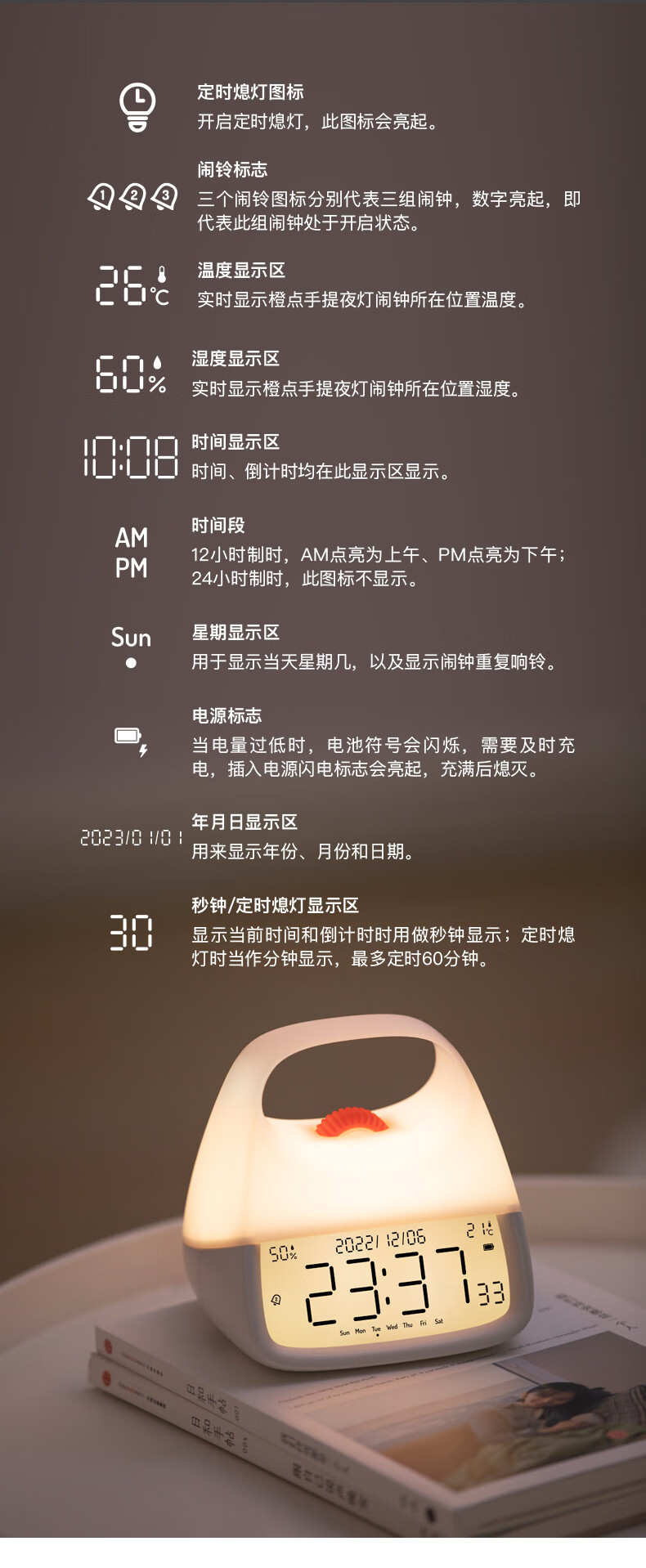 半点创意手提夜灯闹钟创意卧室床头时钟带温度湿度多功能睡眠起夜灯喂奶灯