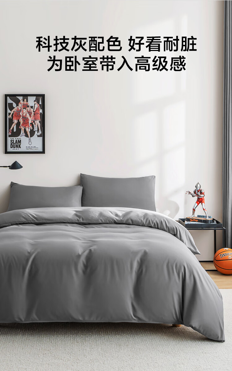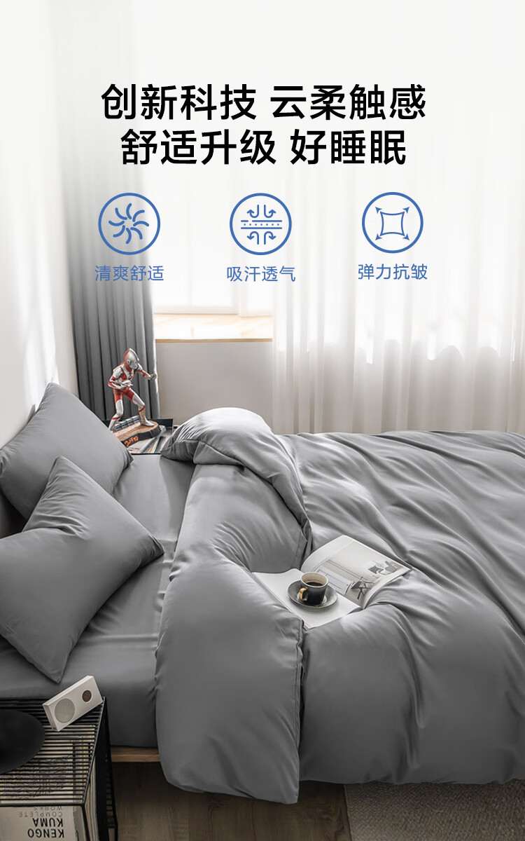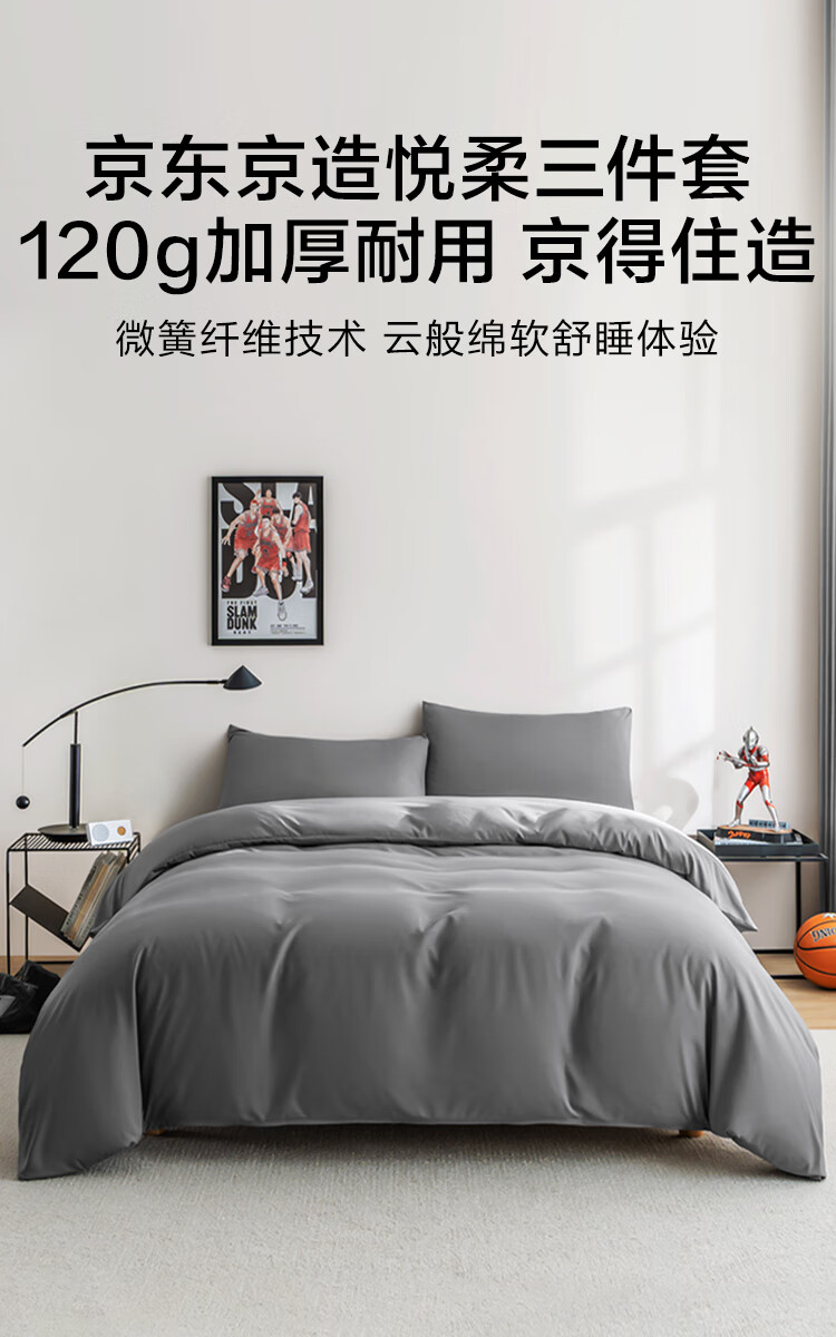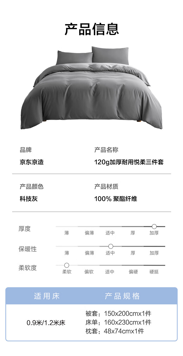 京东京造悦柔三件套 120g加厚磨毛 A类床单被套单人宿舍学生0.9/1.2m床科技灰