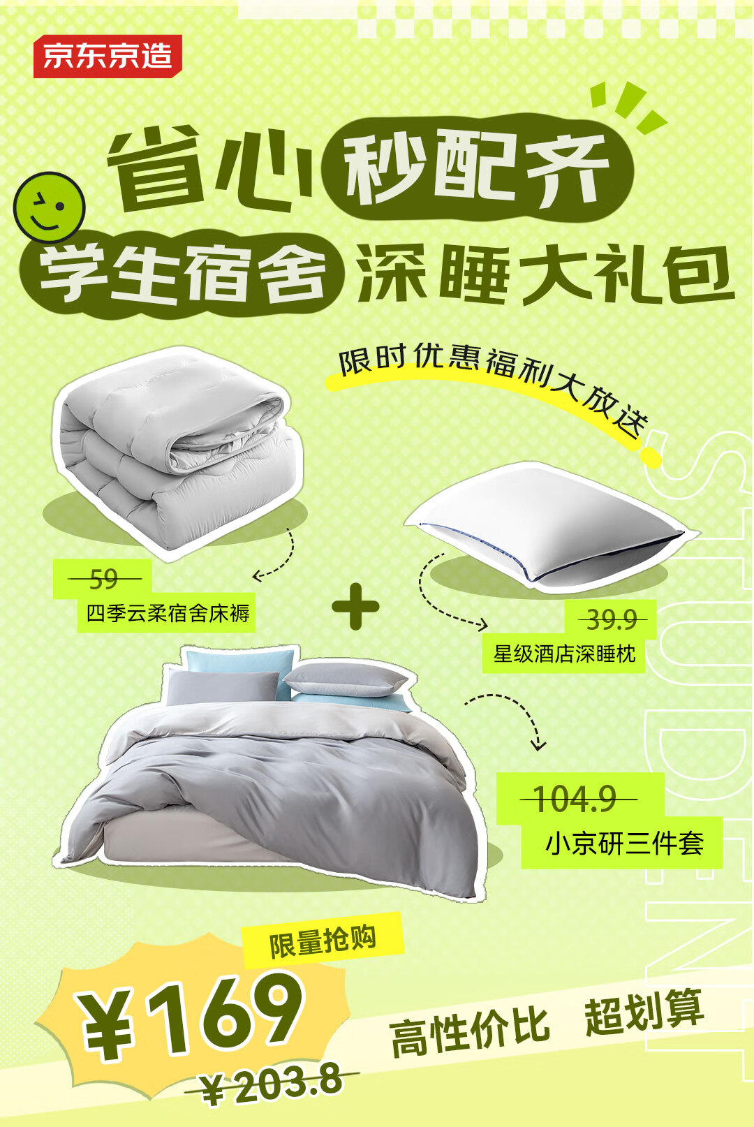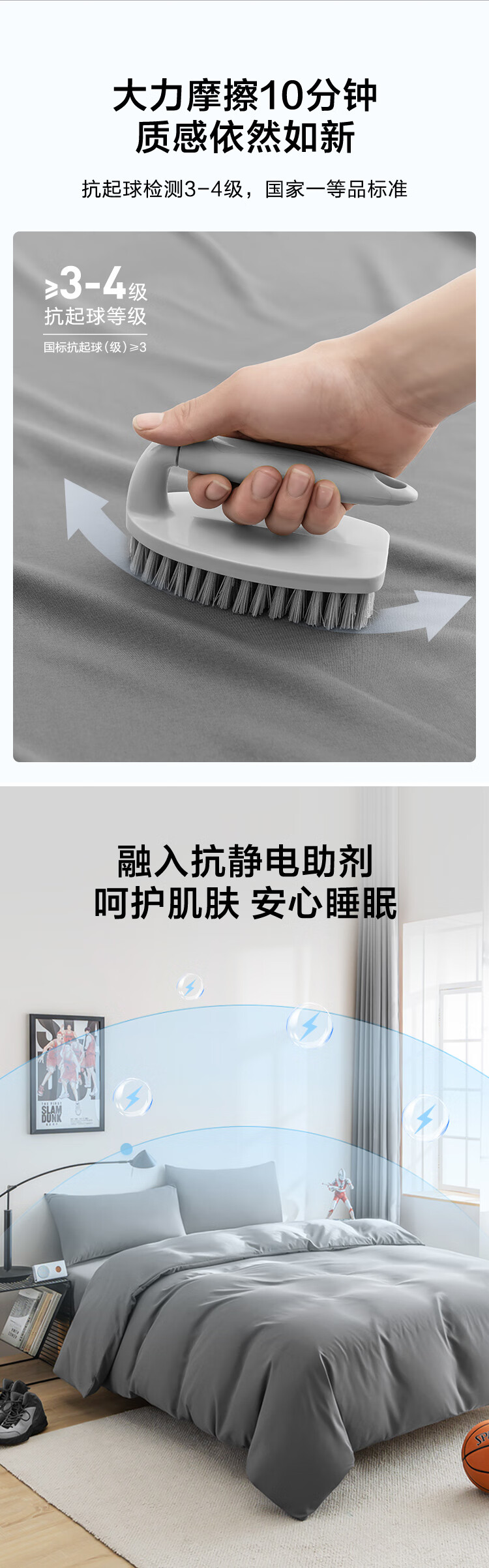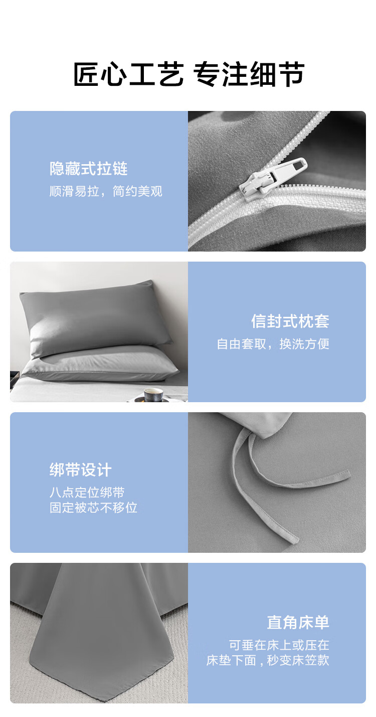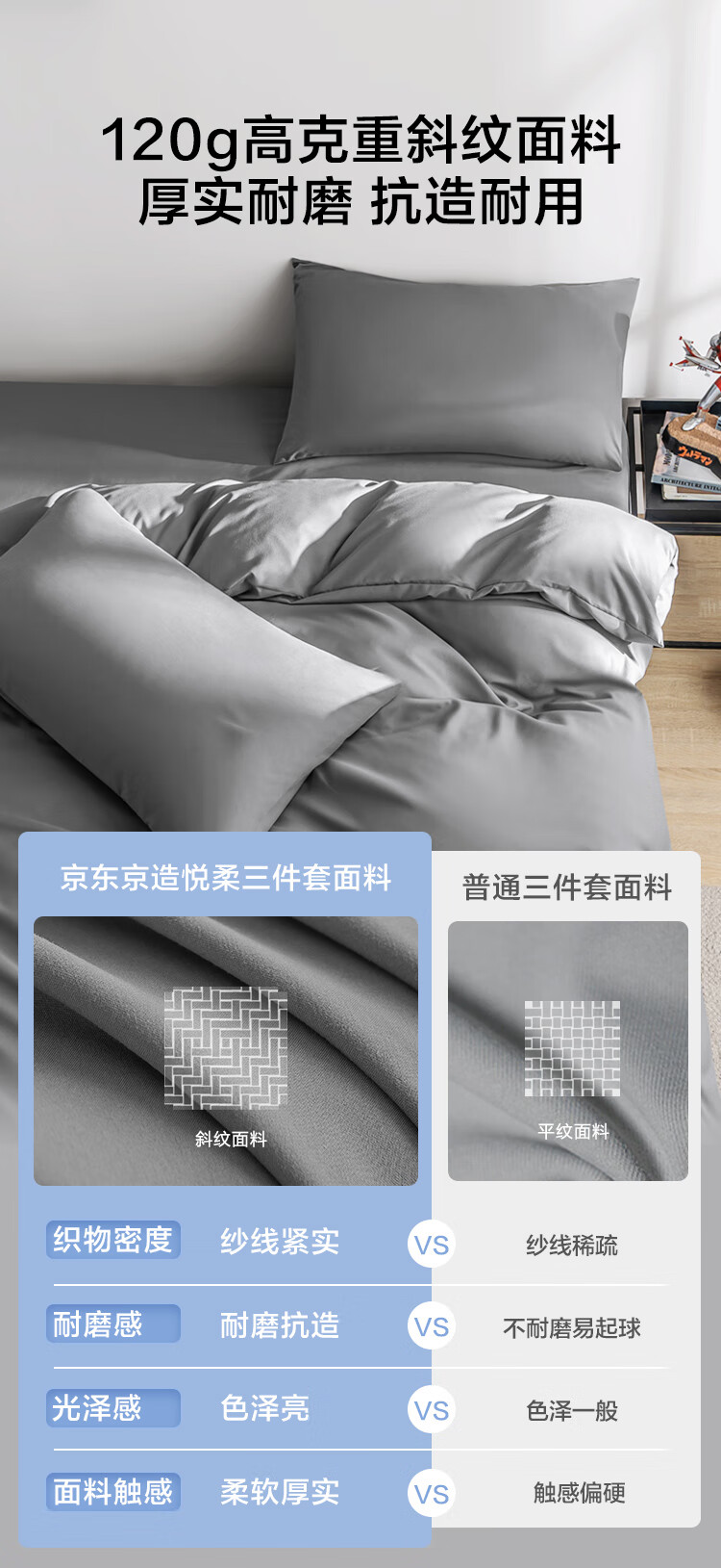 京东京造悦柔三件套 120g加厚磨毛 A类床单被套单人宿舍学生0.9/1.2m床科技灰