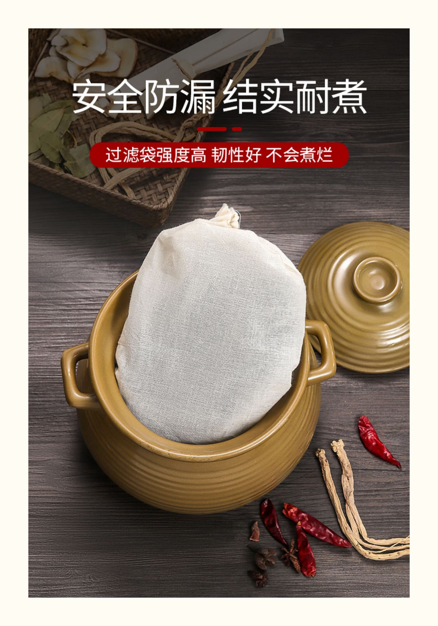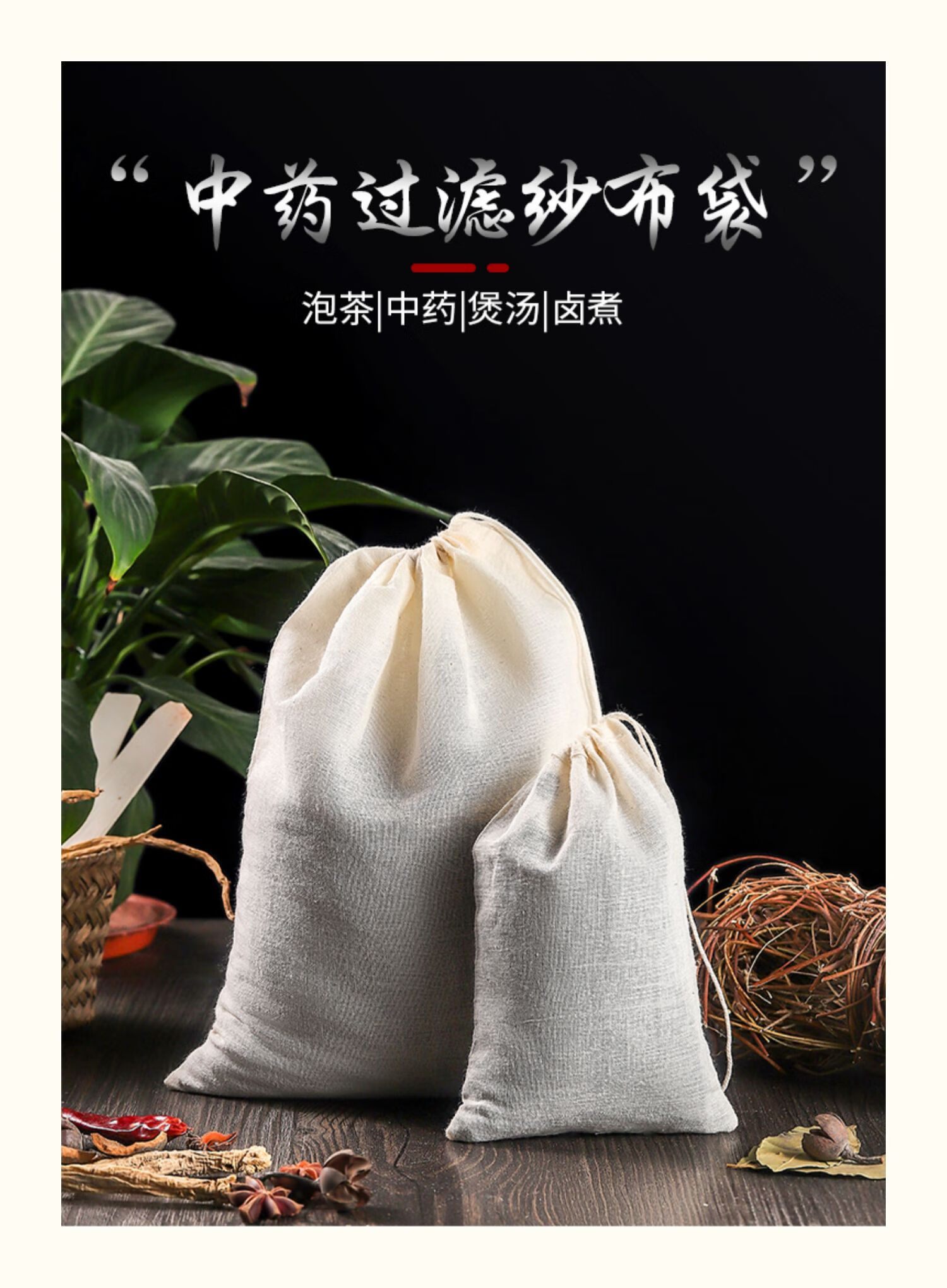 梦庭(MENGTING)棉纱布袋香料中药煎药袋家用卤肉煲汤佐料袋15*20cm10只装