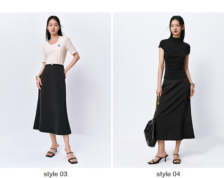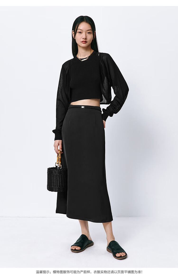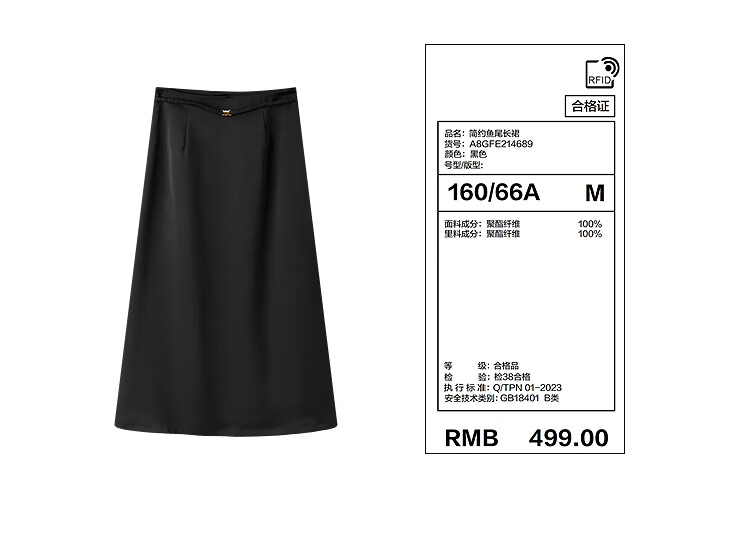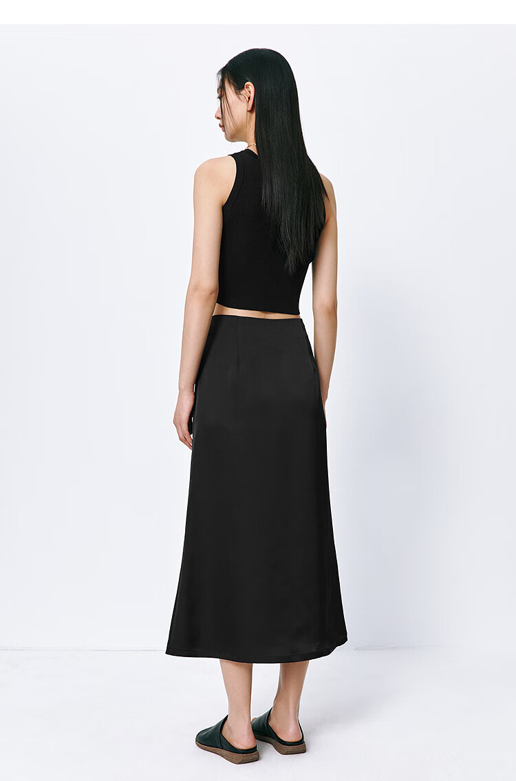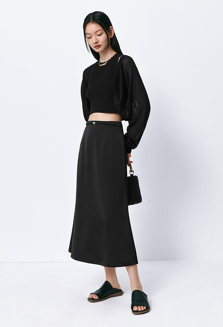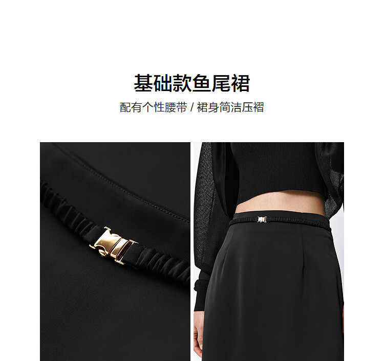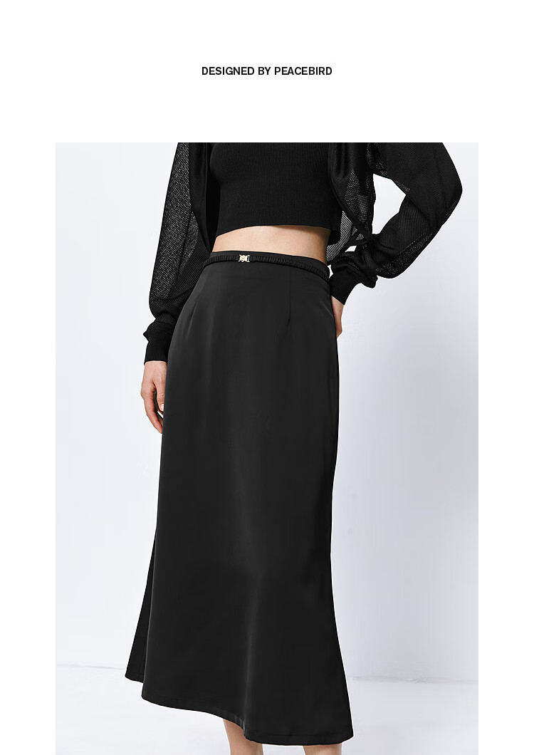 太平鸟女装长款高级半身裙夏女气质鱼尾裙时尚优雅半身裙简约通勤 黑色 S