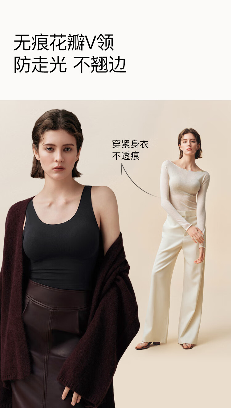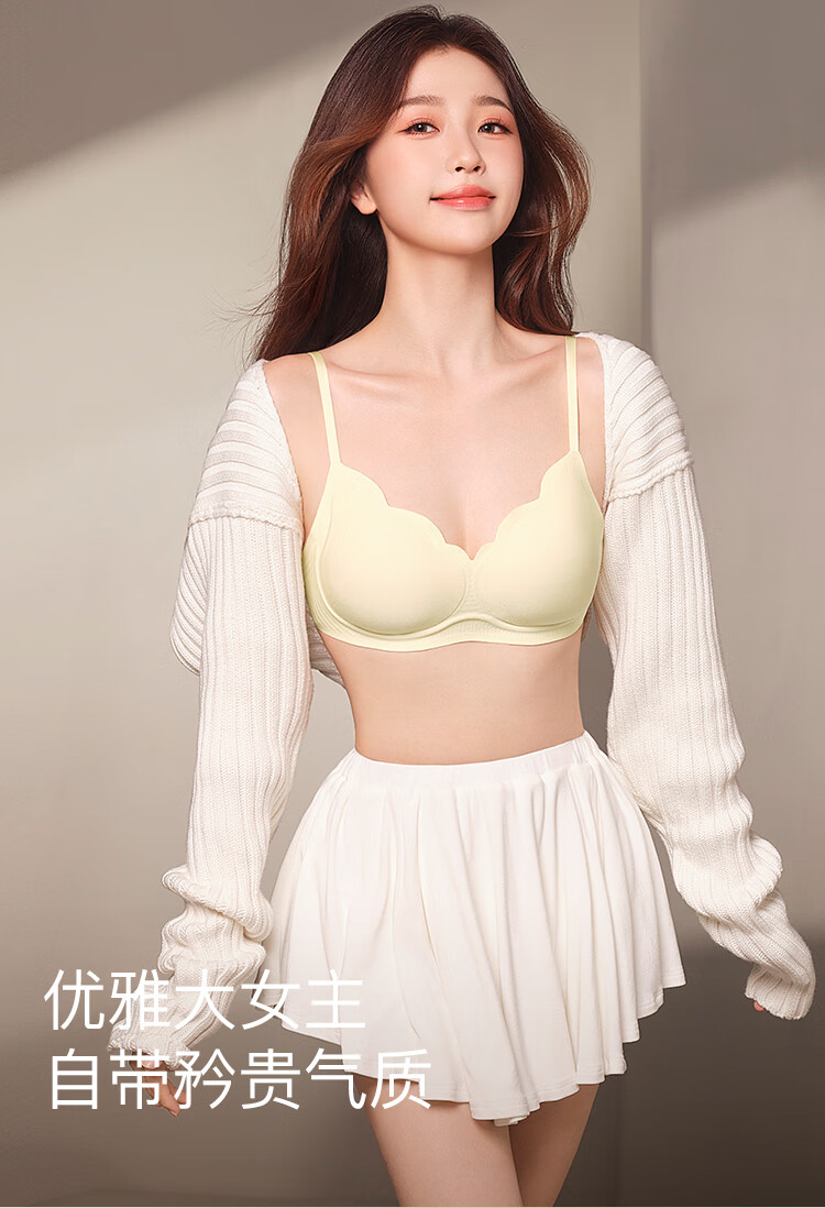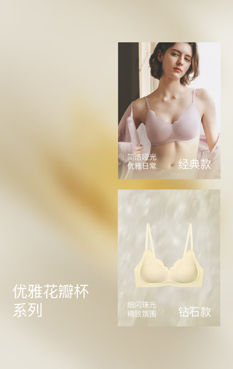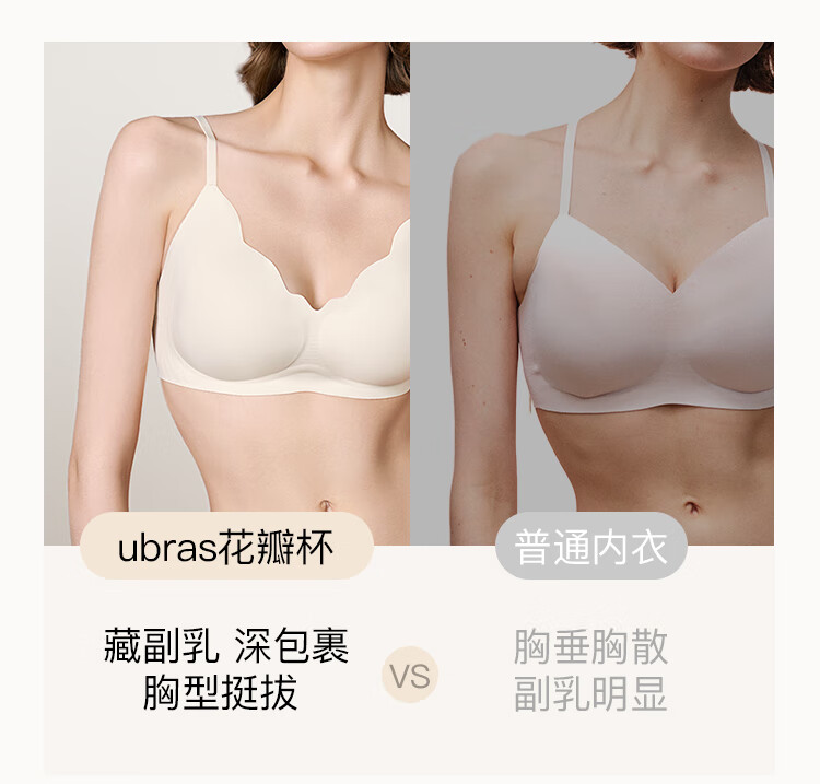 ubras花瓣杯软支撑文胸罩细肩带女士内衣女无钢圈聚拢桃粉沙-背心L