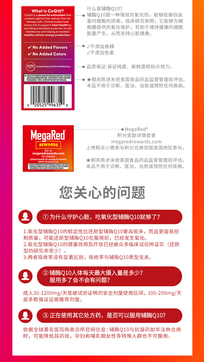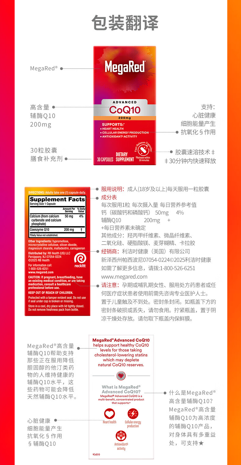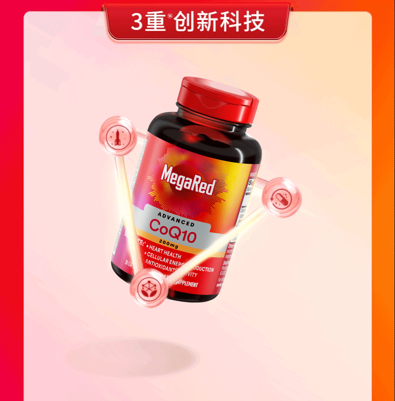 MegaRed脉拓辅酶q10胶囊高含量美国原装进口心脏coq10官方自营200mg30粒