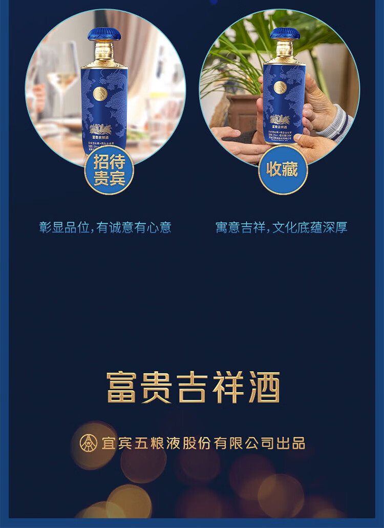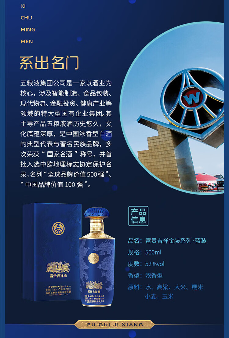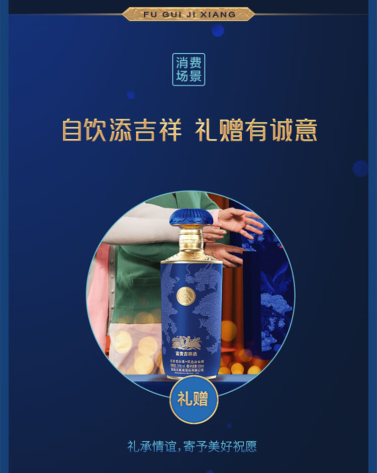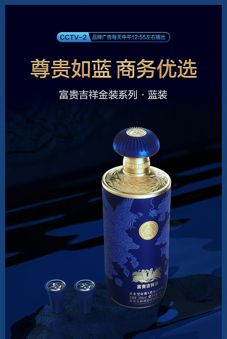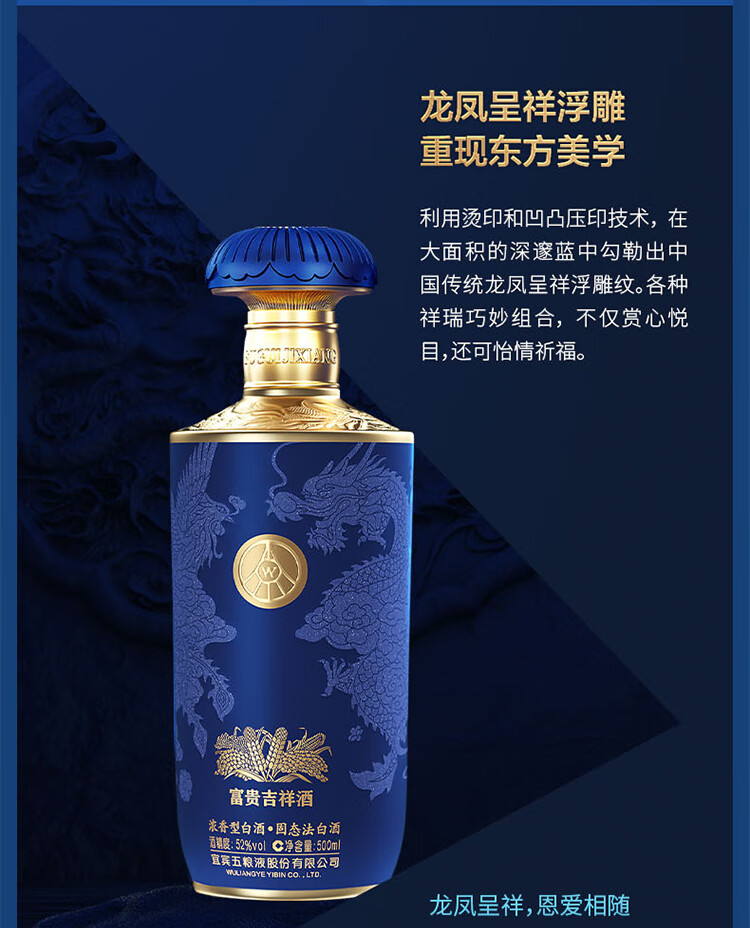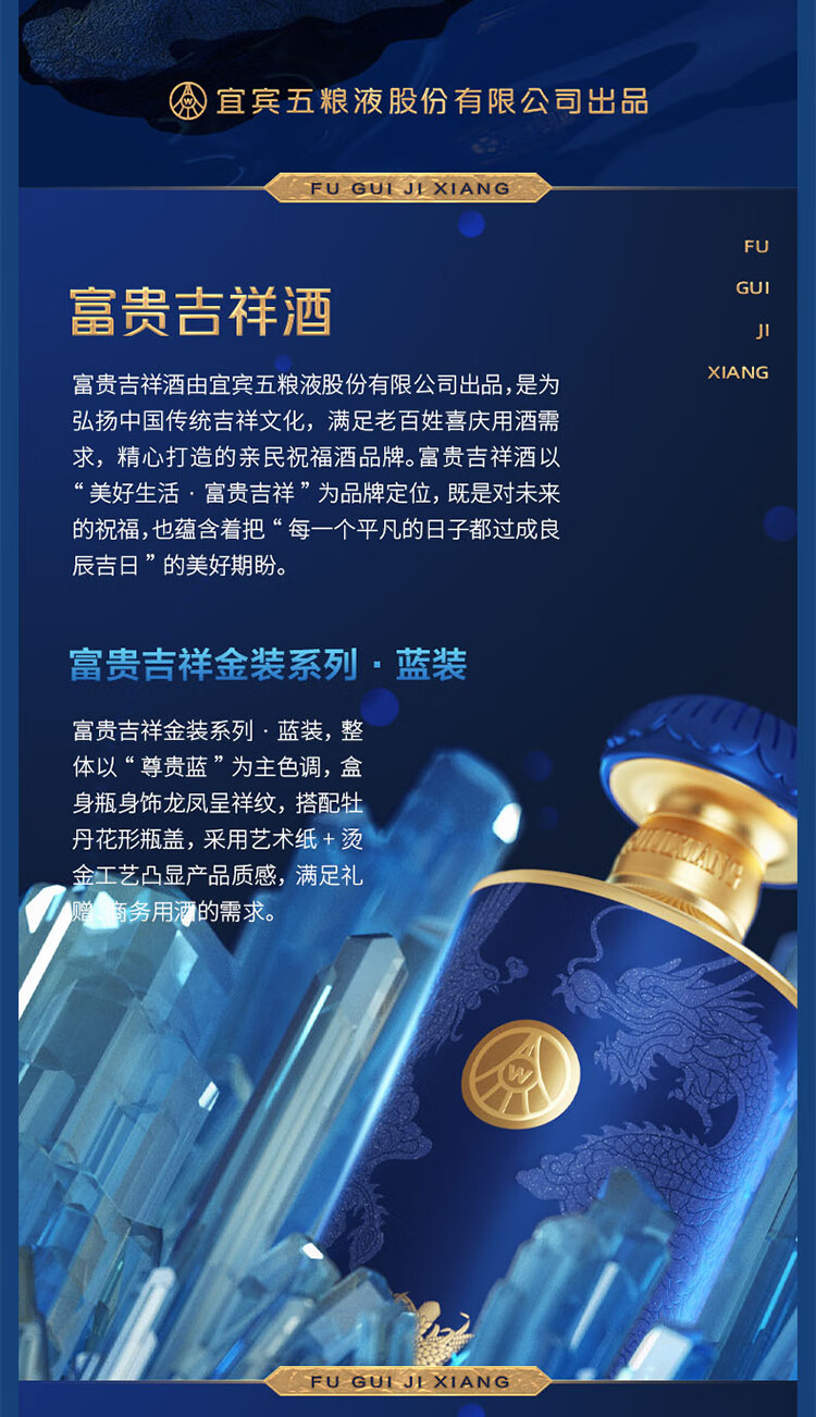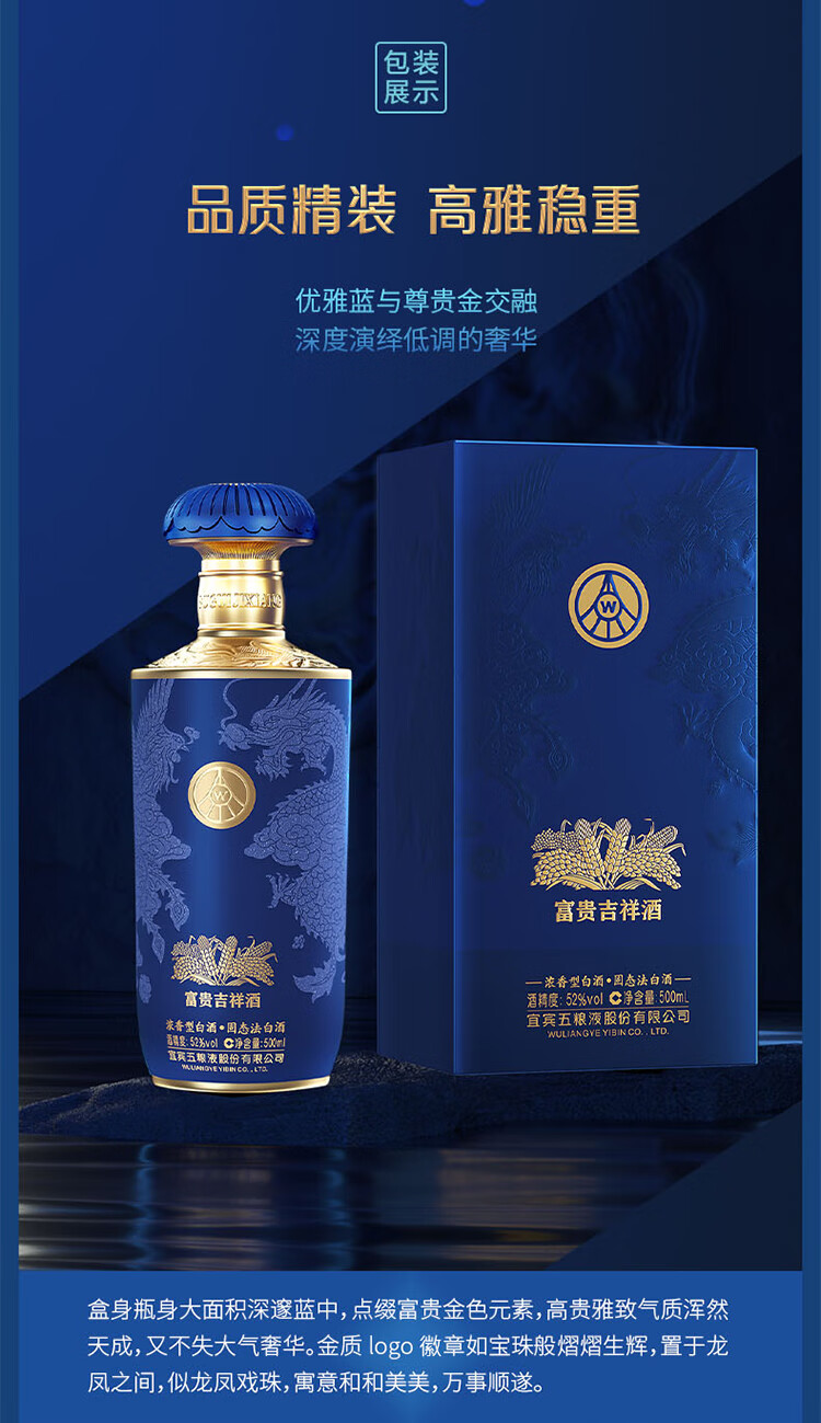 五粮液股份 中秋礼品 富贵吉祥蓝装 52度500ml*2瓶浓香型纯粮食白酒礼盒