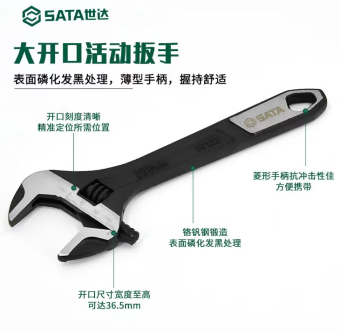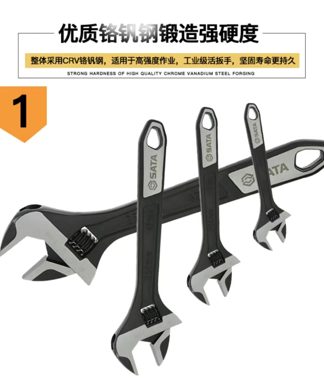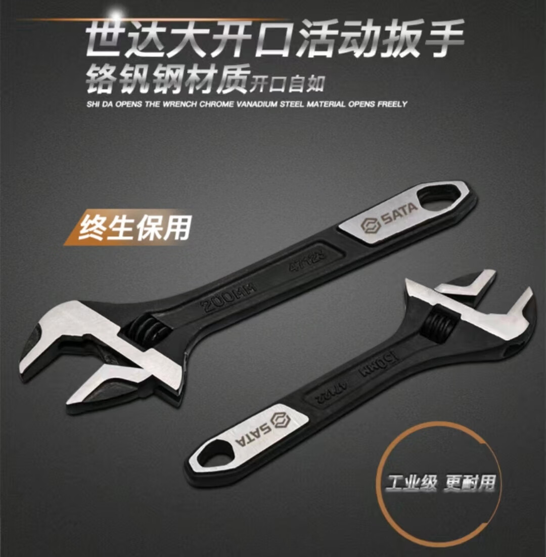 世达(SATA)工业级铬钒钢大开口活动扳手 6" 47122