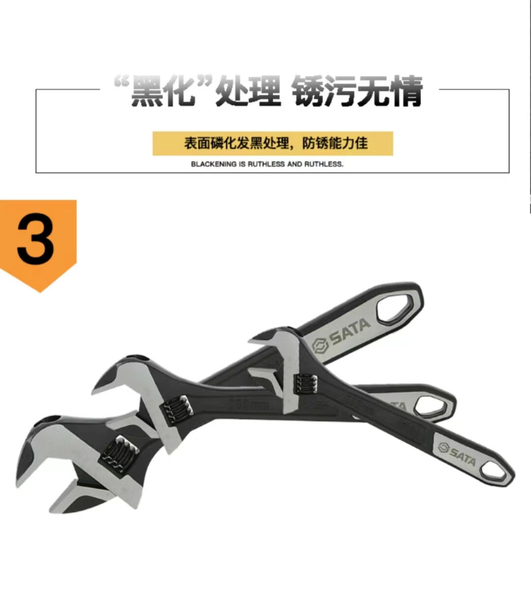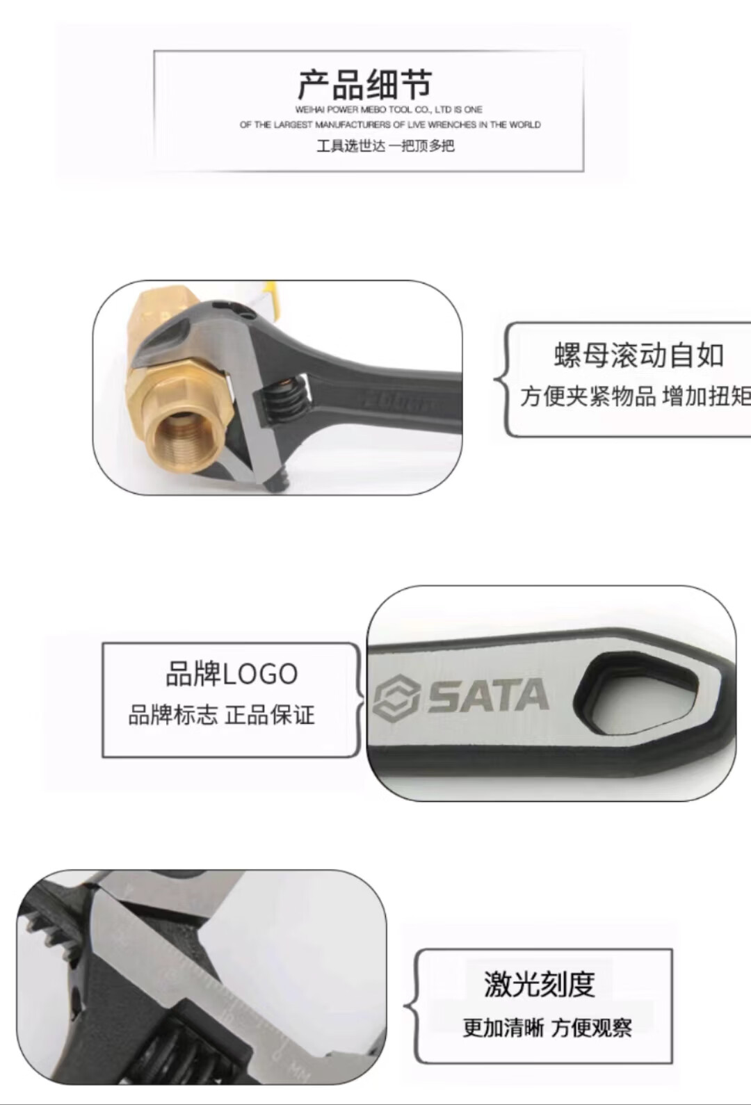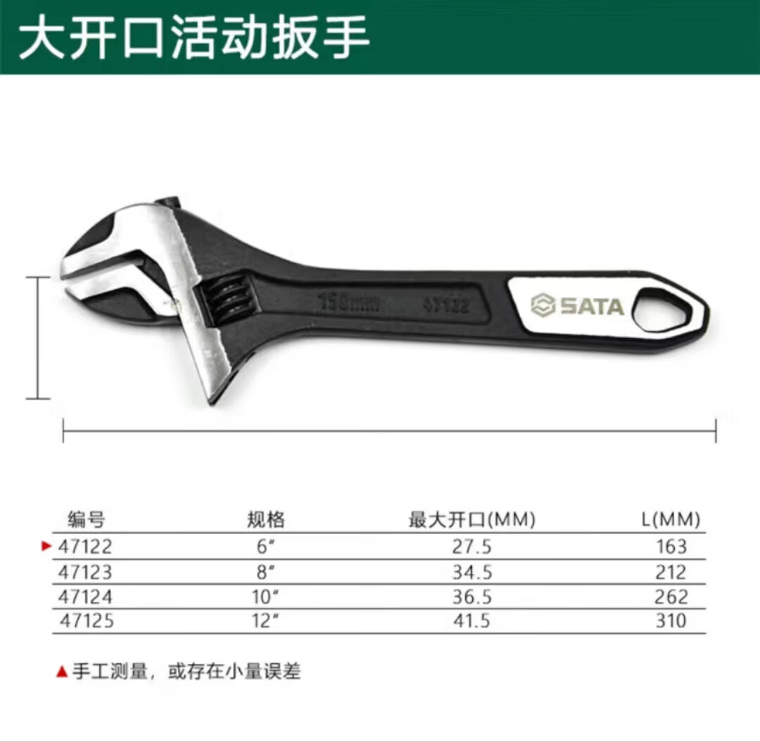世达(SATA)工业级铬钒钢大开口活动扳手 6" 47122