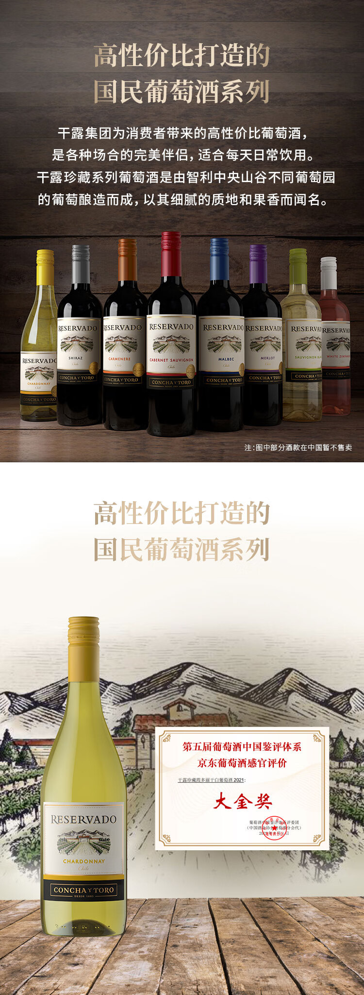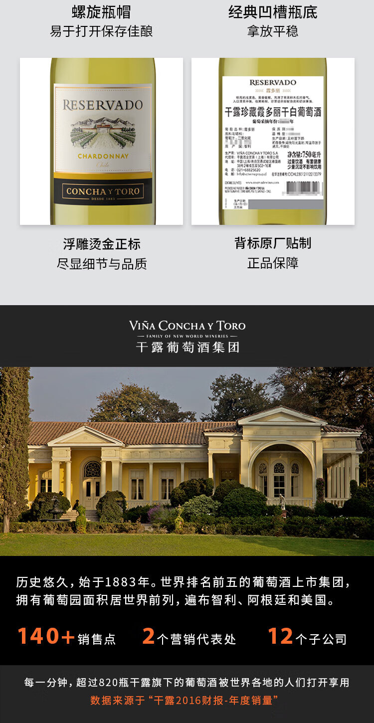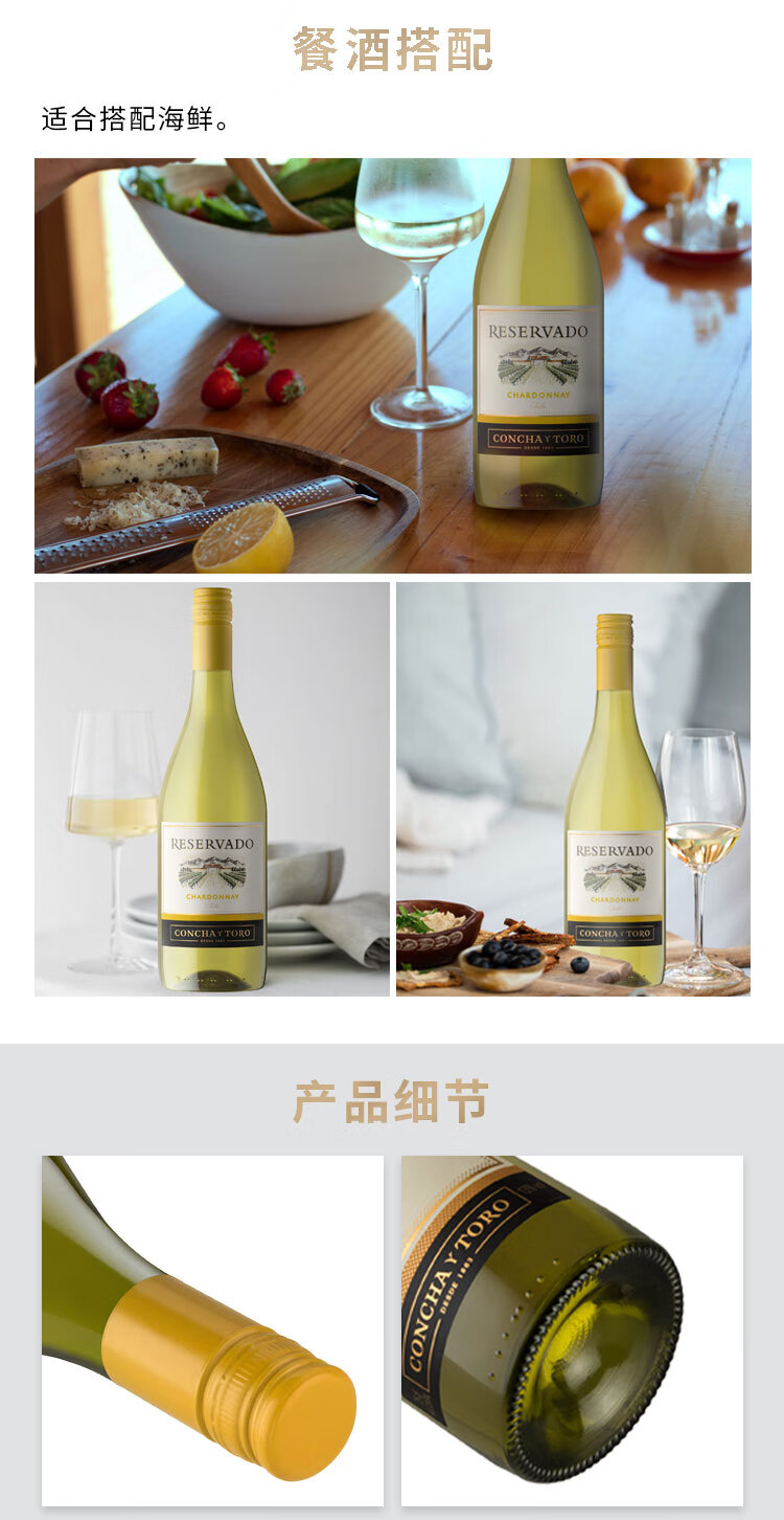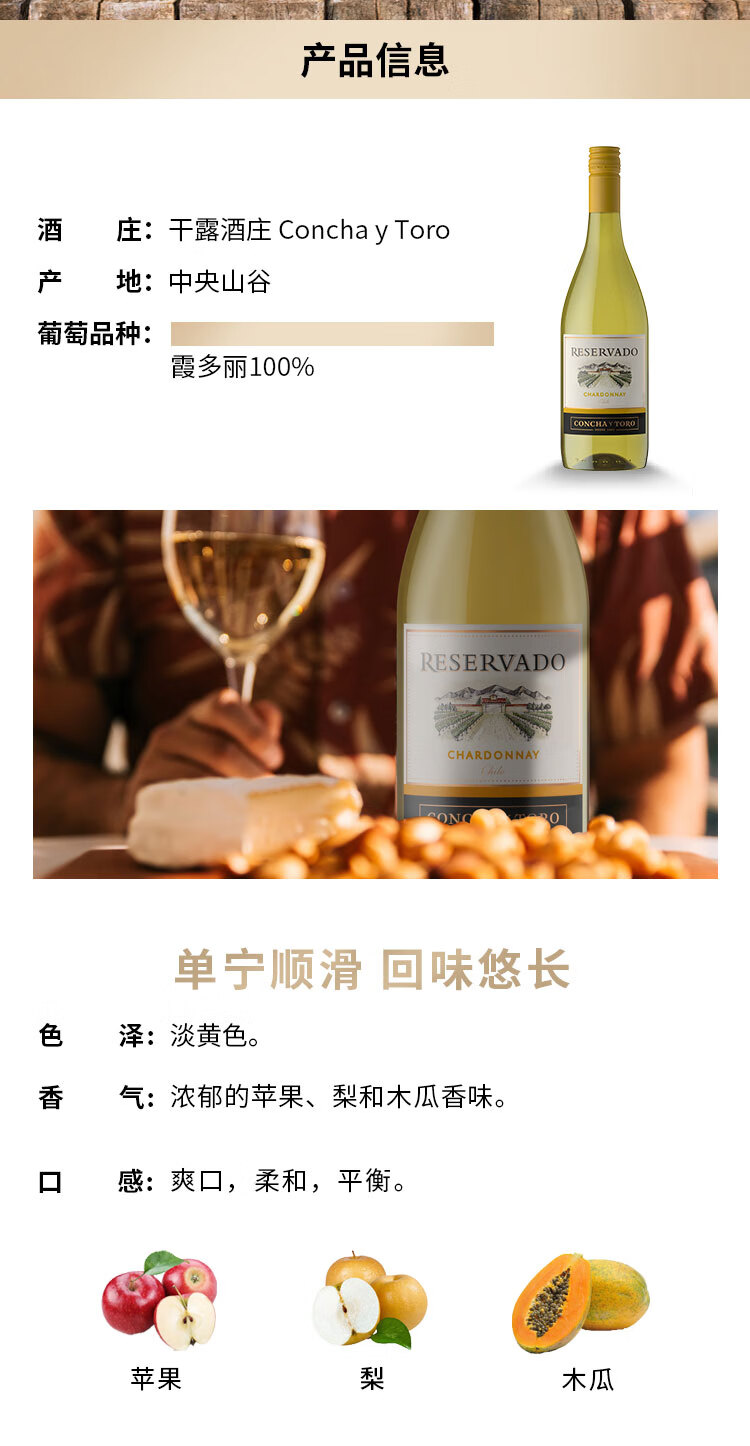 Concha y Toro干露珍藏霞多丽干白葡萄酒750ml整箱 智利原瓶进口红酒 中秋礼品