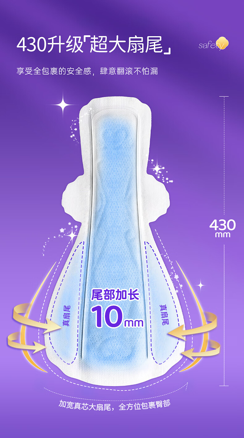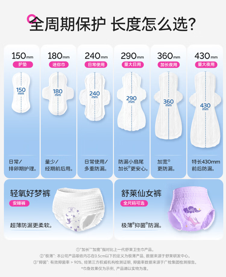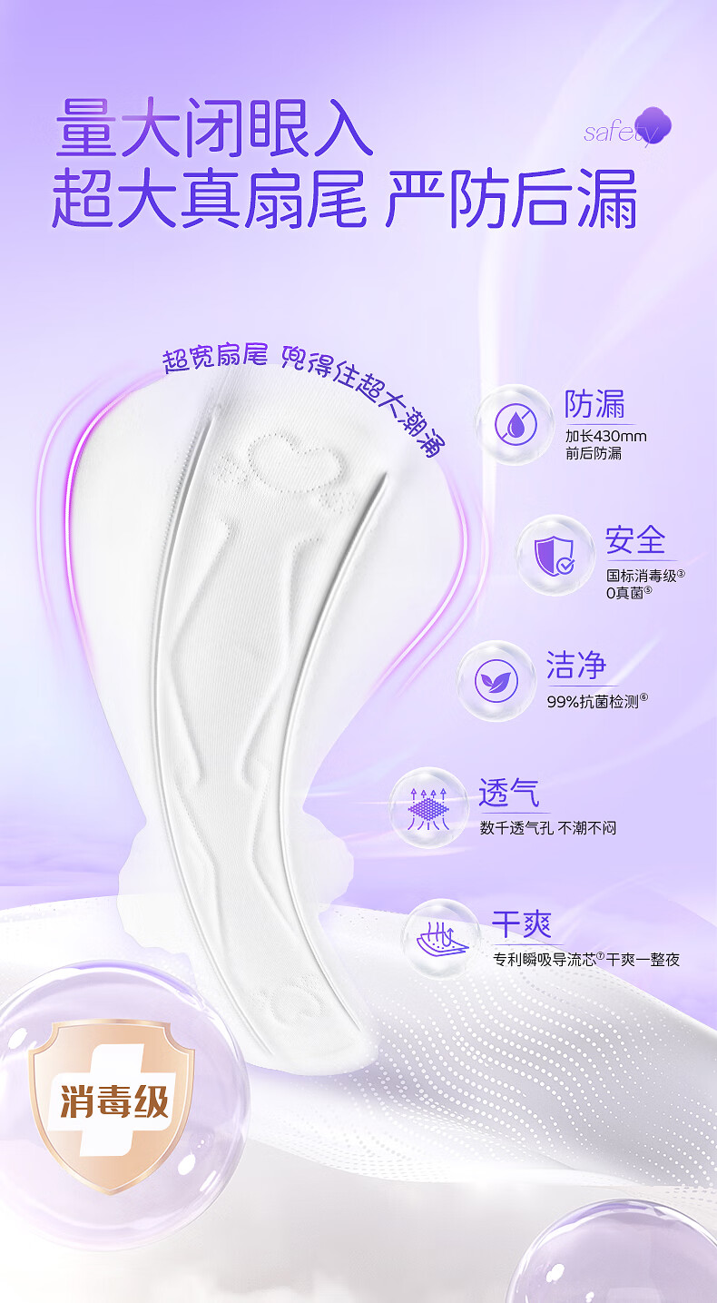 舒莱卫生巾超长夜用430mm消毒级透气瞬吸医护级姨妈巾20片京东自营