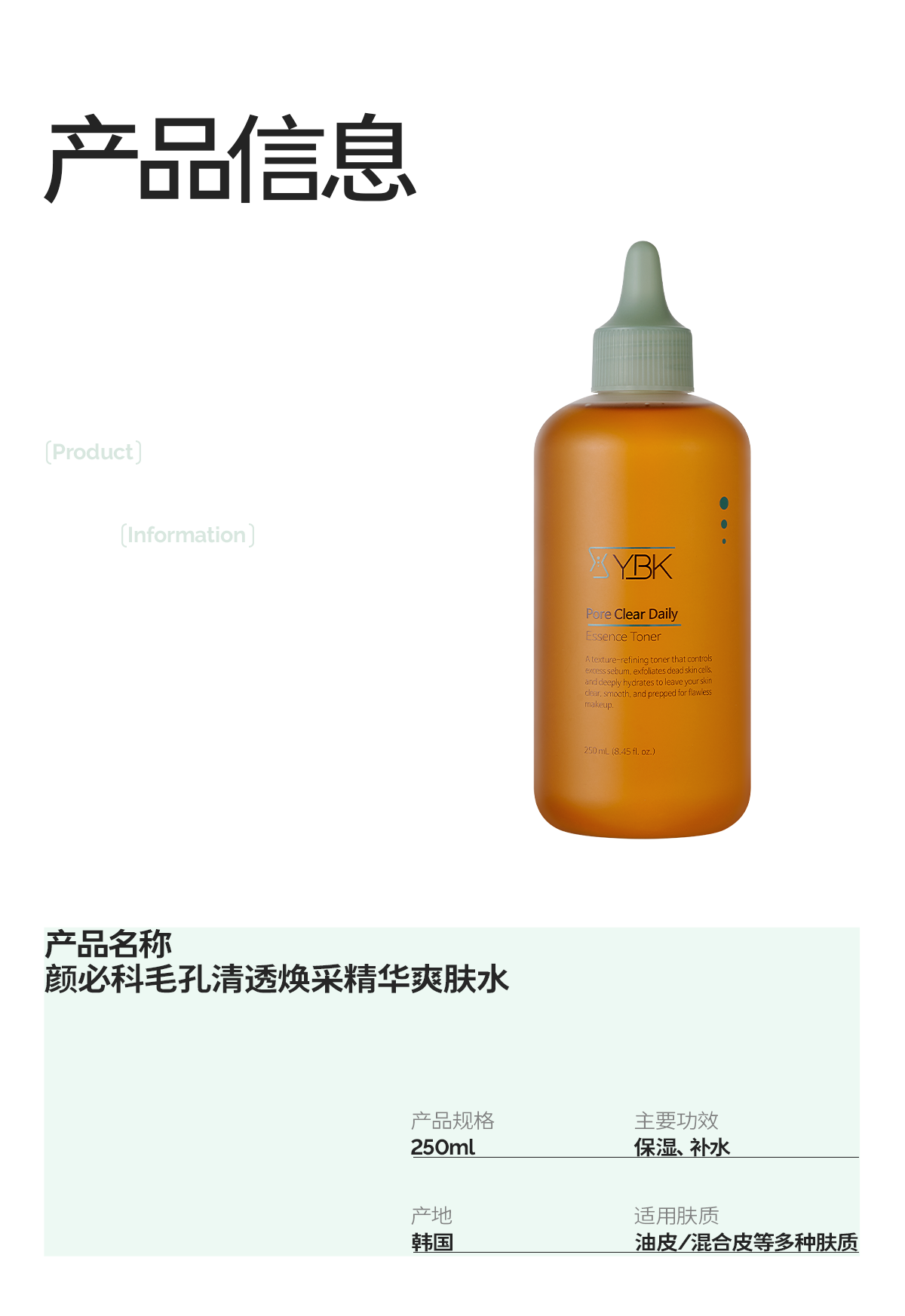 YBK颜必科爽肤水精华补水保湿化妆水毛孔清透焕采男女护肤