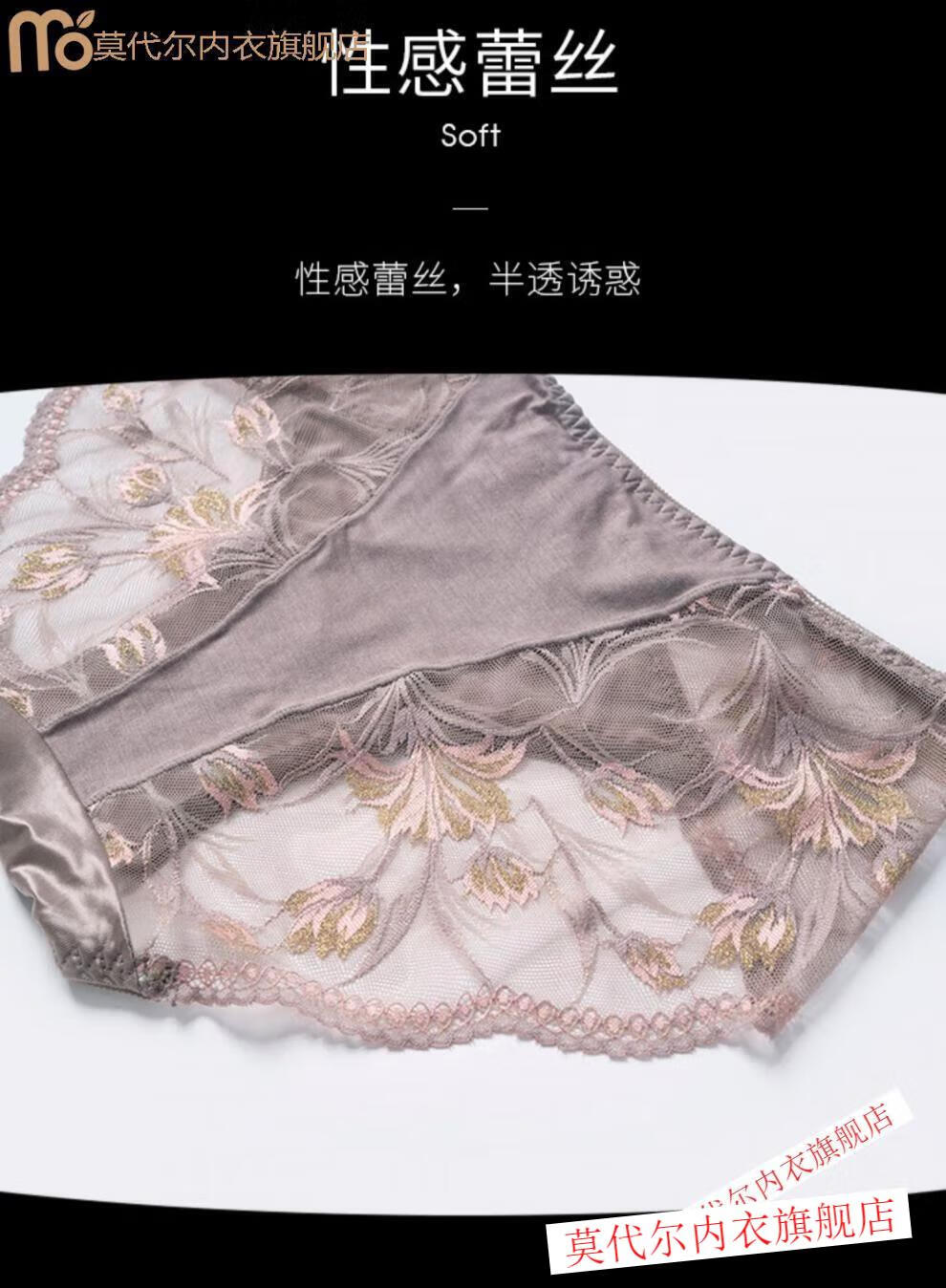 莫代尔女式内裤女蕾丝性感纯少女棉裆透气新款夏季清爽薄款女士三角短裤 蓝色+粉色+黑色 3条 均码 90-130斤