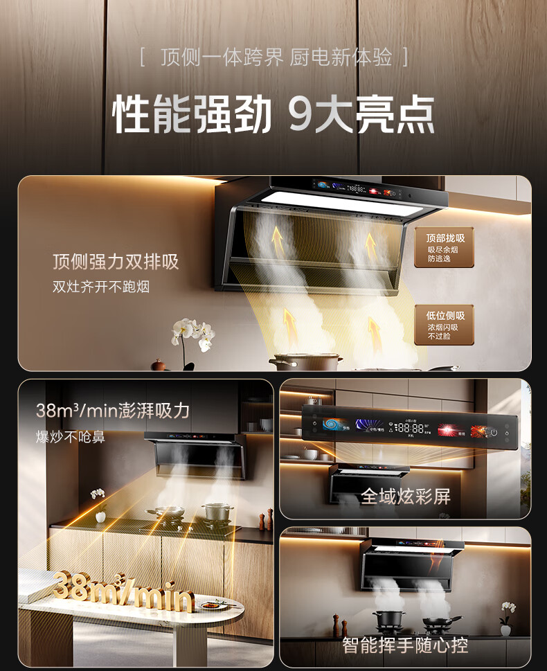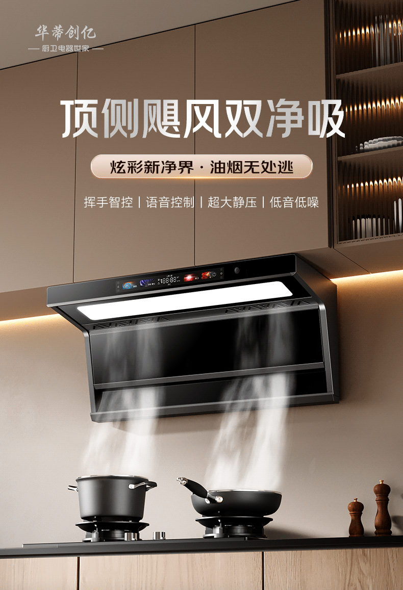 华蒂创亿【免费上门安装】抽油烟机家用大吸力静音一级能效吸油烟机灶具套装顶侧双吸自清洁小尺寸挥手智控 高配款-90大屏大灯+32m³挥手智控+自动清洗